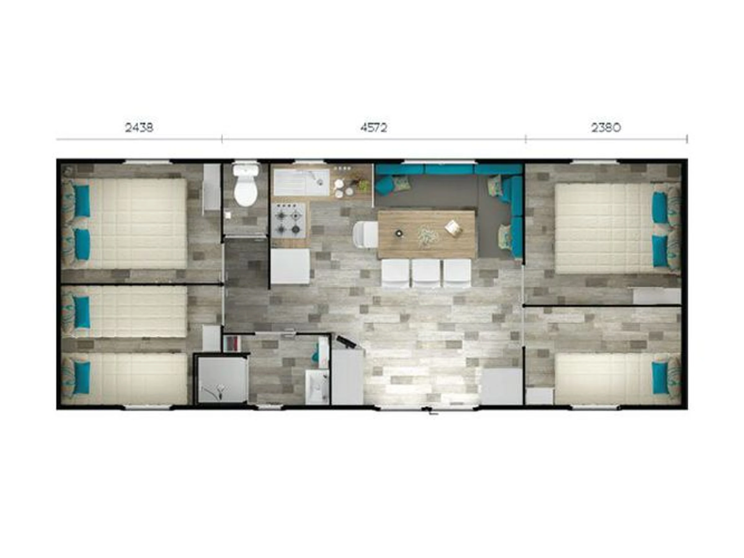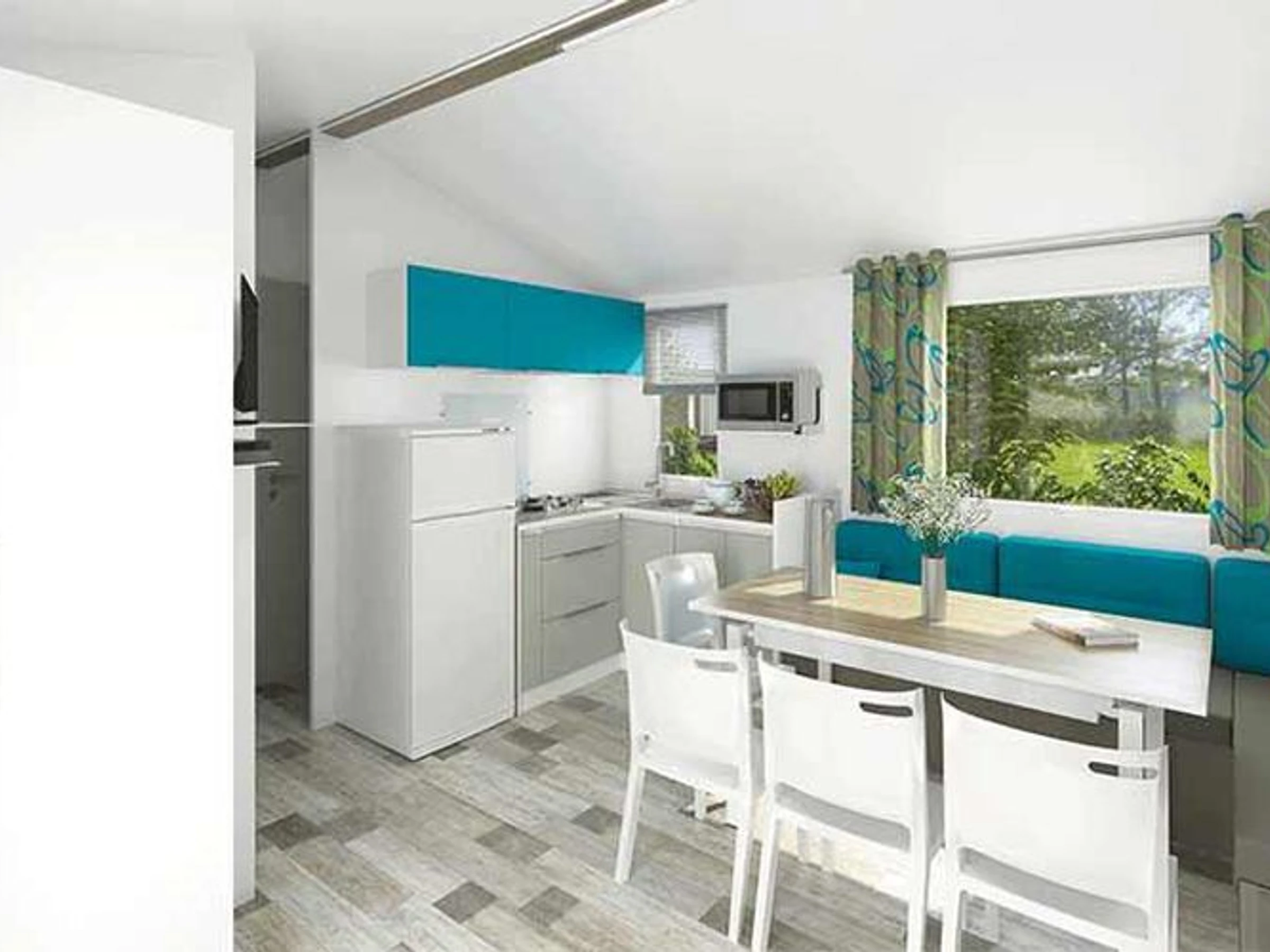 38 m² großes Mobilheim für 8 Personen:
