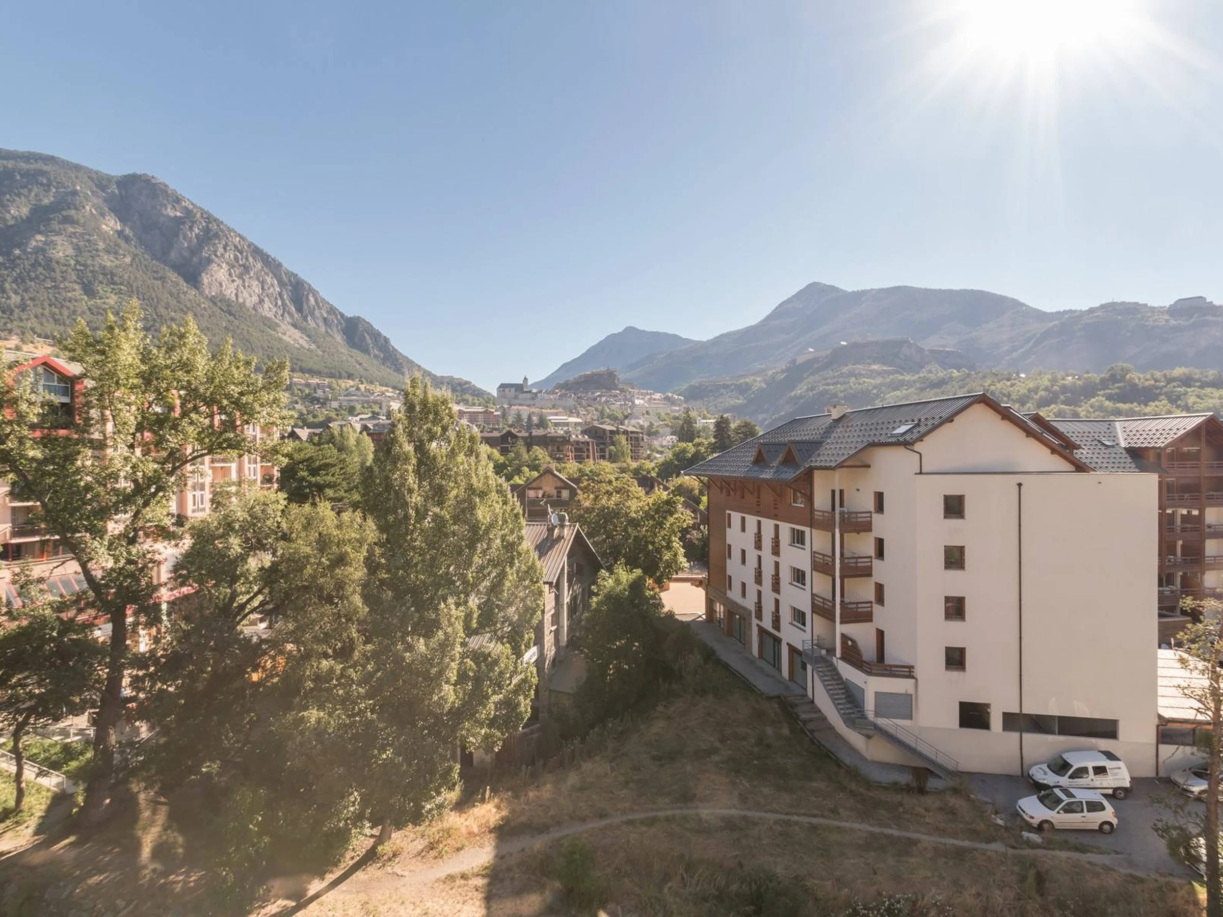 Grosser Balkon nach Osten mit Panoramablick auf die Altstadt und die Berge.