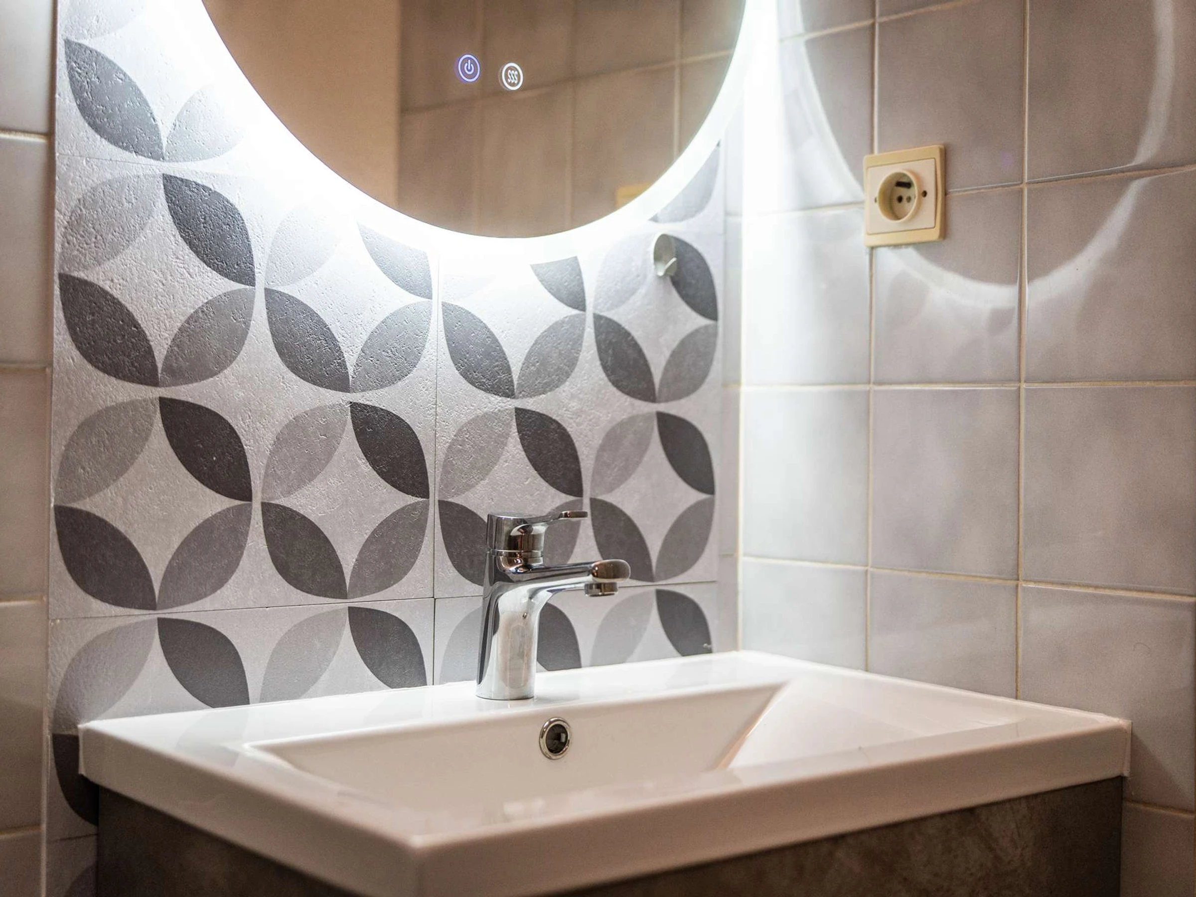 • Ein komfortables Badezimmer (Dusche) mit WC,