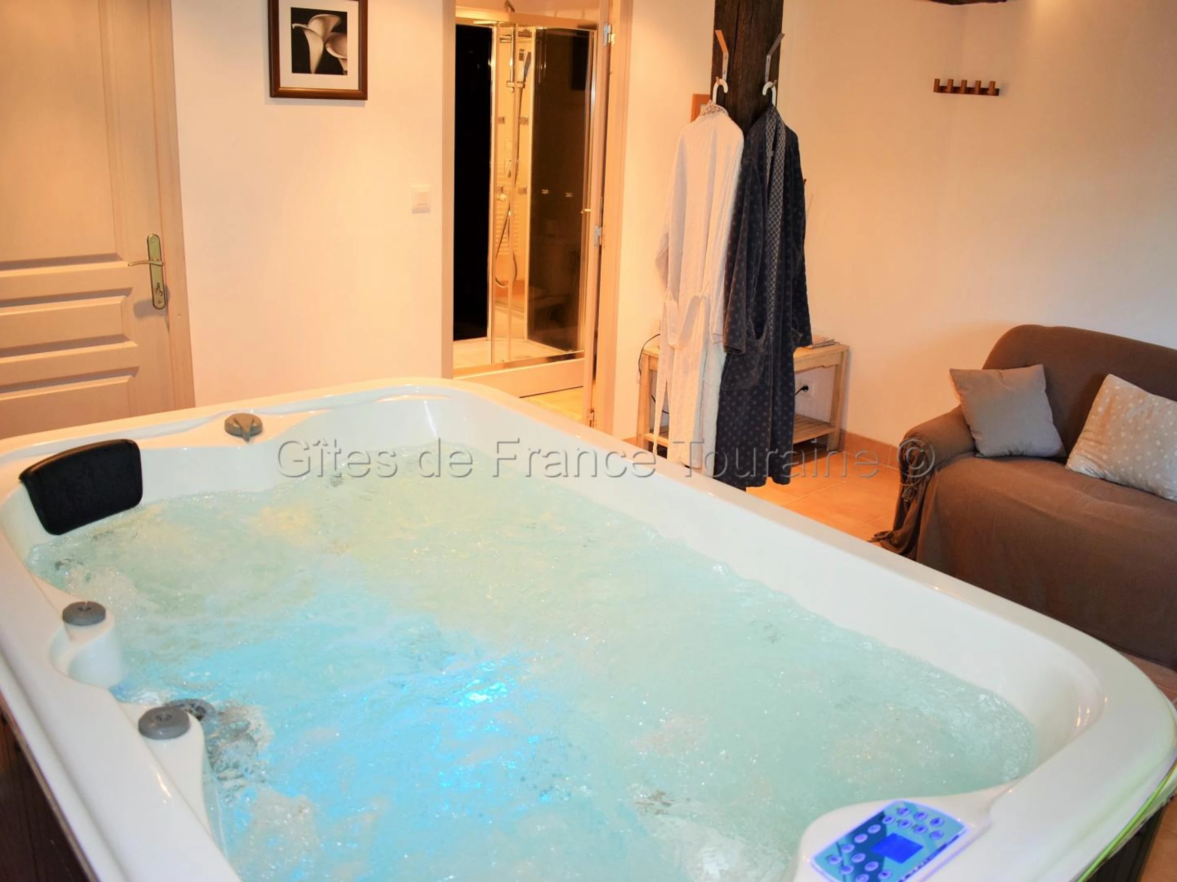 Für einen rundum erholsamen Aufenthalt in der südlichen Touraine konzipiert: Ein Wellnessbereich mit privatem Spa (kostenloser Zugang, Wasserwechsel zwischen den Familien), zwei Badezimmer mit Hydromassageduschen und Bettwäsche inklusive! Erdgeschoss: Wohnzimmer/Lounge/voll ausgestattete Küche (Sofa etc.), 1. Schlafzimmer (Doppelbett), 2. Schlafzimmer (zwei Einzelbetten), Badezimmer, WC. Untergeschoss (von außen zugänglich): Wellnessbereich (mit Spa), Badezimmer/WC, Waschküche. Elektrische Heizung (bei normaler Nutzung und unter Berücksichtigung der Umweltverträglichkeit inklusive). Privater, umzäunter Garten von 500 m². Abschließbarer Fahrradunterstand. Im Preis inbegriffen: Strom, Wasser, Bettwäsche; Babyausstattung: Reisebett, Babybadewanne, Babyeinsatz, Kinderwagen. Reinigungskaution: 75 € (bei nicht erfolgter Reinigung kann die Kaution einbehalten werden). Nichtraucherunterkunft. Gönnen Sie sich eine Auszeit im Herzen des Loiretals, in einer der schönsten Ecken der südlichen Touraine!