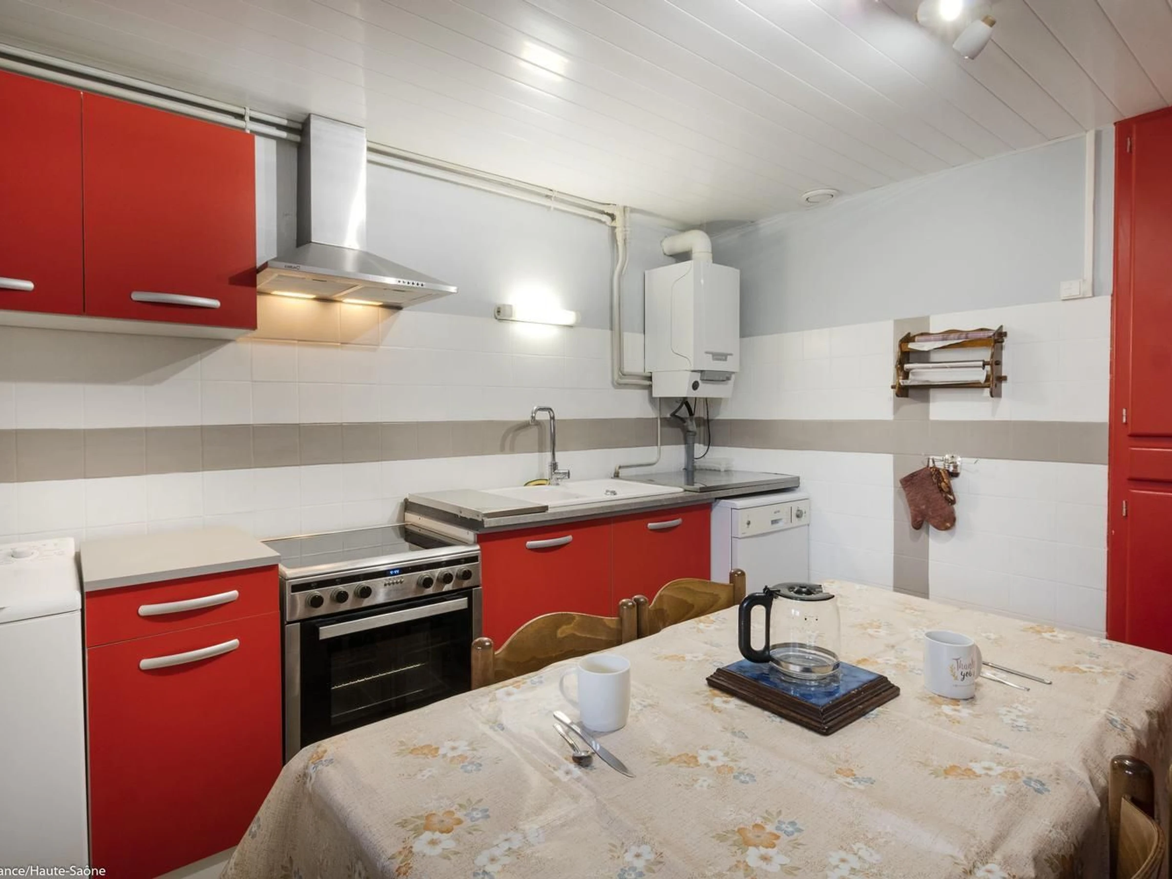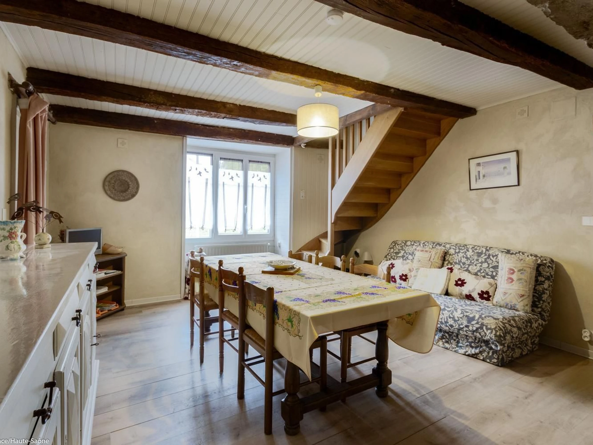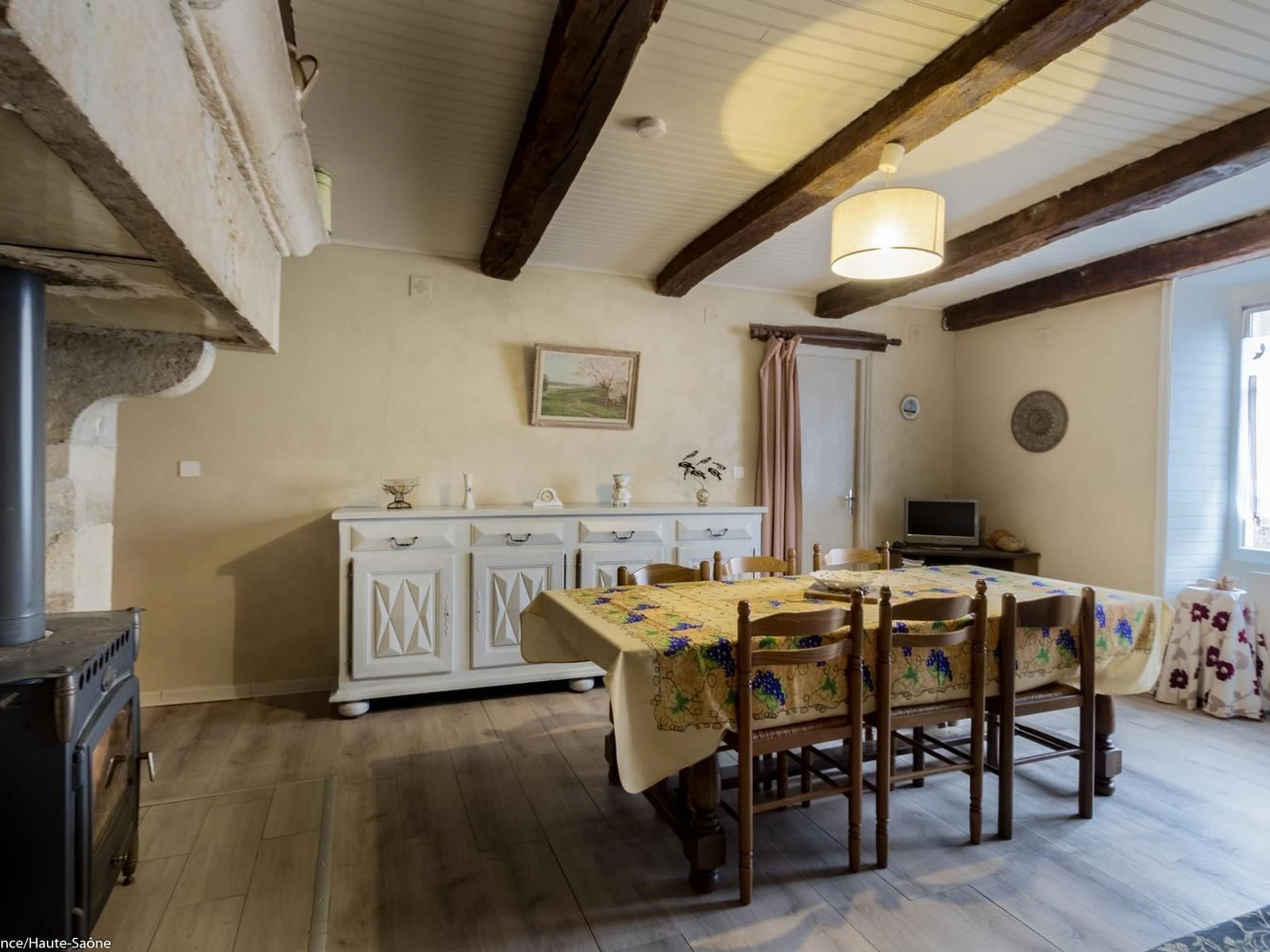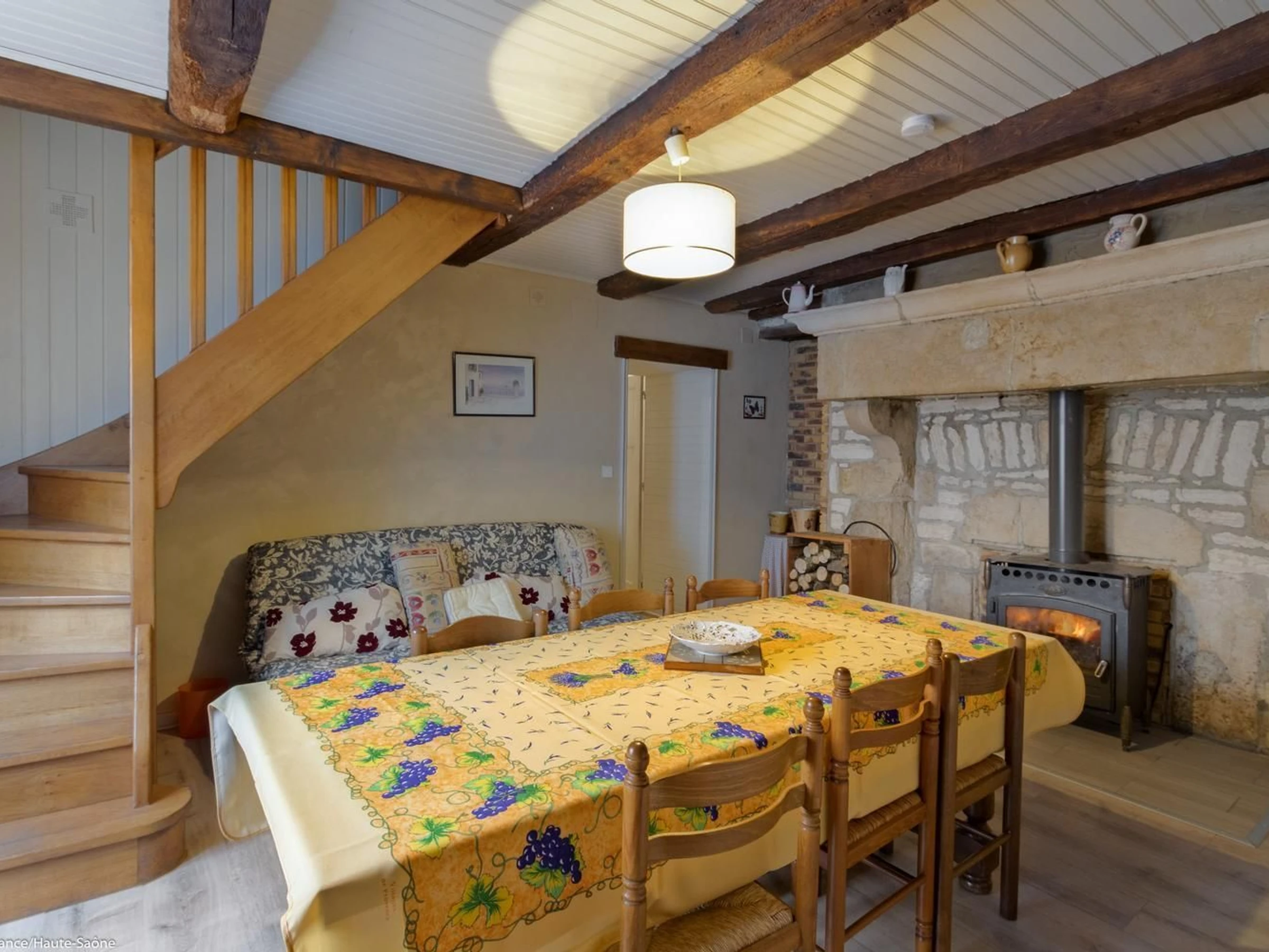 In der Nähe von Ray-sur-Saône, einer kleinen charaktervollen Stadt in der Region Franche-Comté, mit einer Kirche, einer Kapelle, Kalvarienbergen, Waschhäusern ... Schöne Aussichtspunkte und Spazierwege. GEBÜHREN NICHT INBEGRIFFEN. Bettwäsche inklusive und Betten bei der Ankunft gemacht. Handtücher werden auf Anfrage bereitgestellt. In einem kleinen Dorf, an ein altes Bauernhaus (nicht in Gebrauch) angrenzendes Haus mit im Erdgeschoss: Eingangshalle, Wohnzimmer mit Holzofen, Küche/Essbereich, 1 Schlafzimmer (2 Einzelbetten – 1 Einzelbett, 1 Babybett), Duschraum/WC, Duschraum, WC. 1. Stock: 1 Schlafzimmer im Zwischengeschoss (geschlossen, 2 Einzelbetten), 1 Schlafzimmer (1 Doppelbett), 1 Ruheraum (mit Spielen, Fernseher usw.). 1 WC.