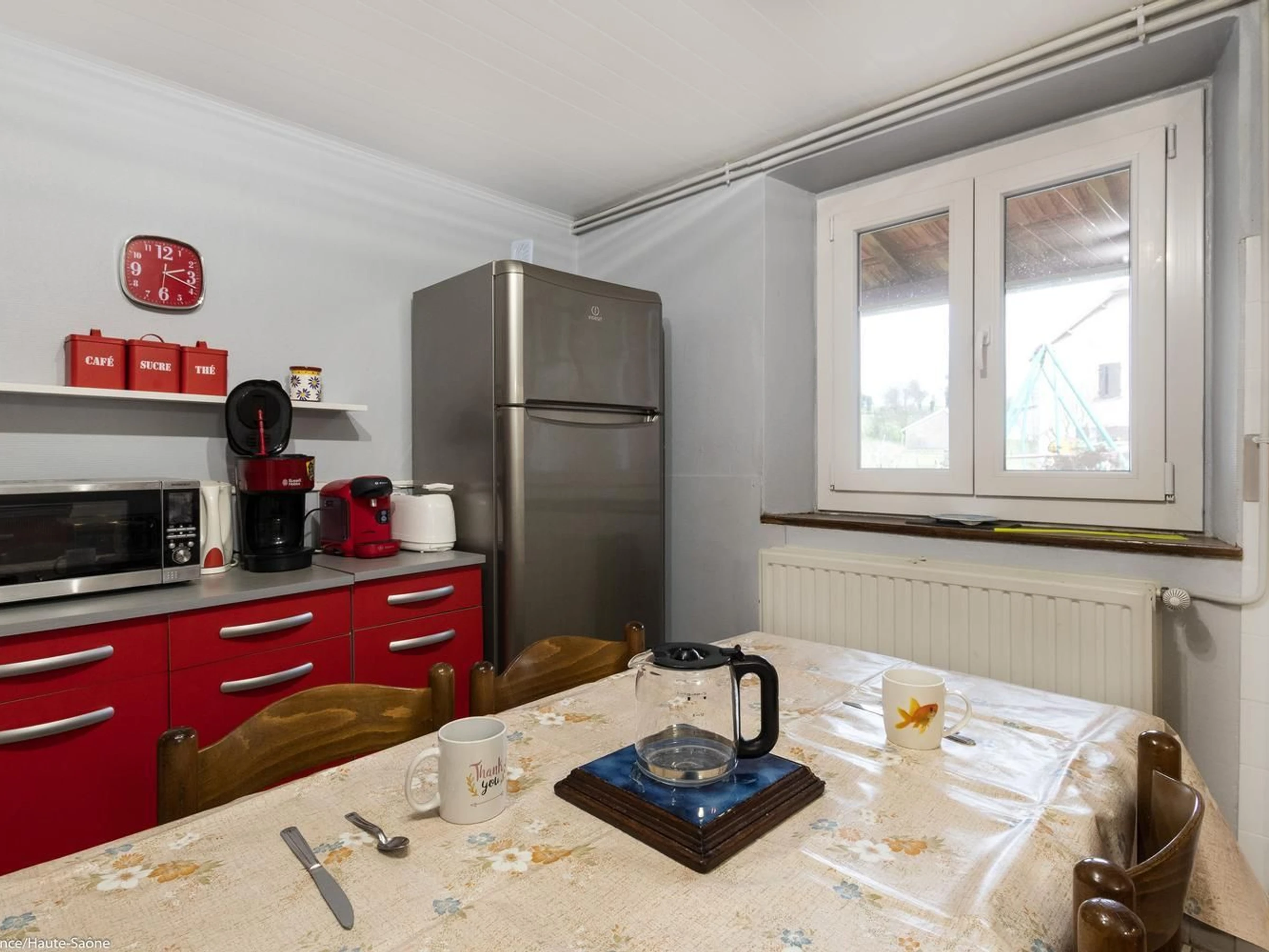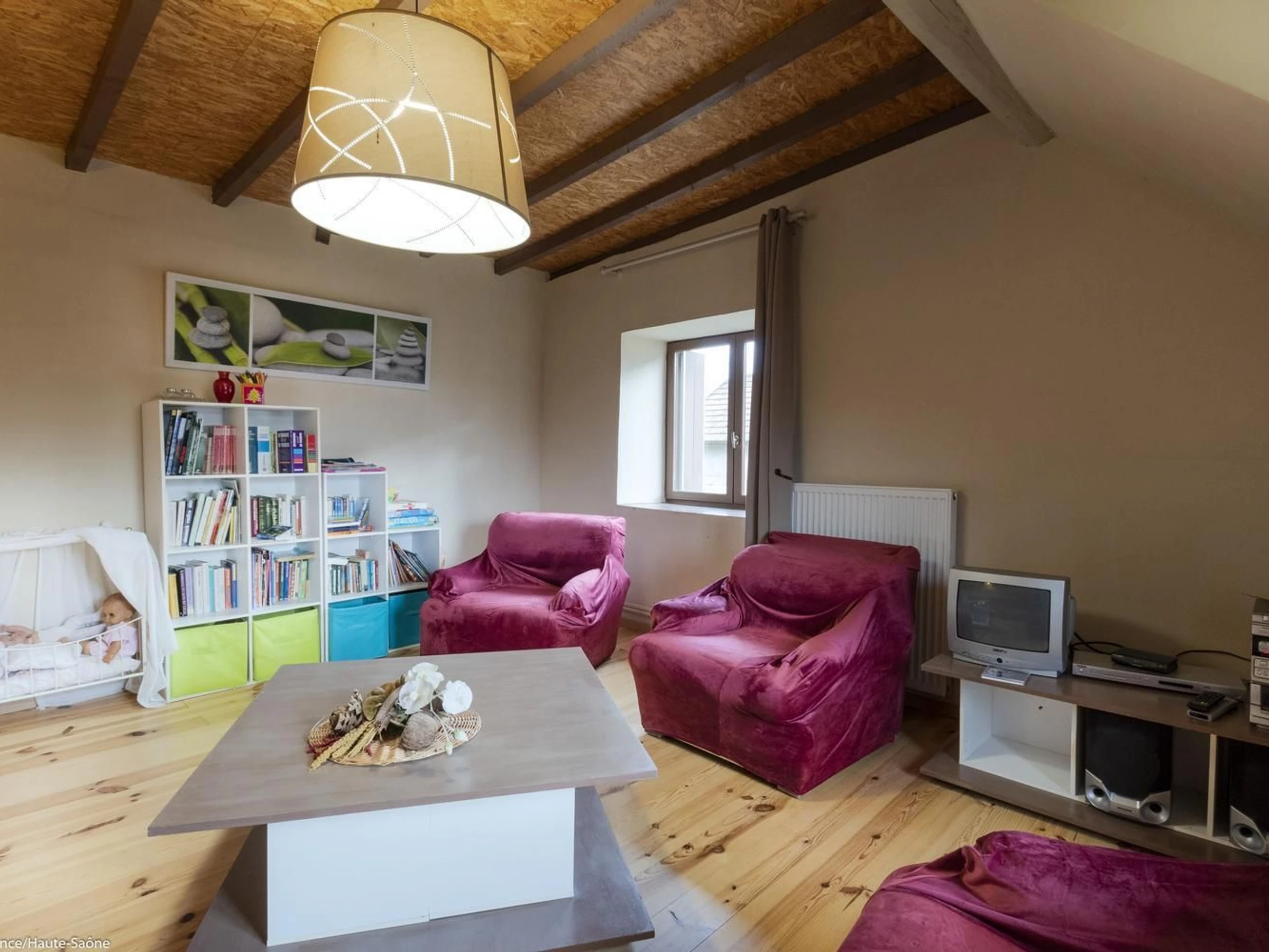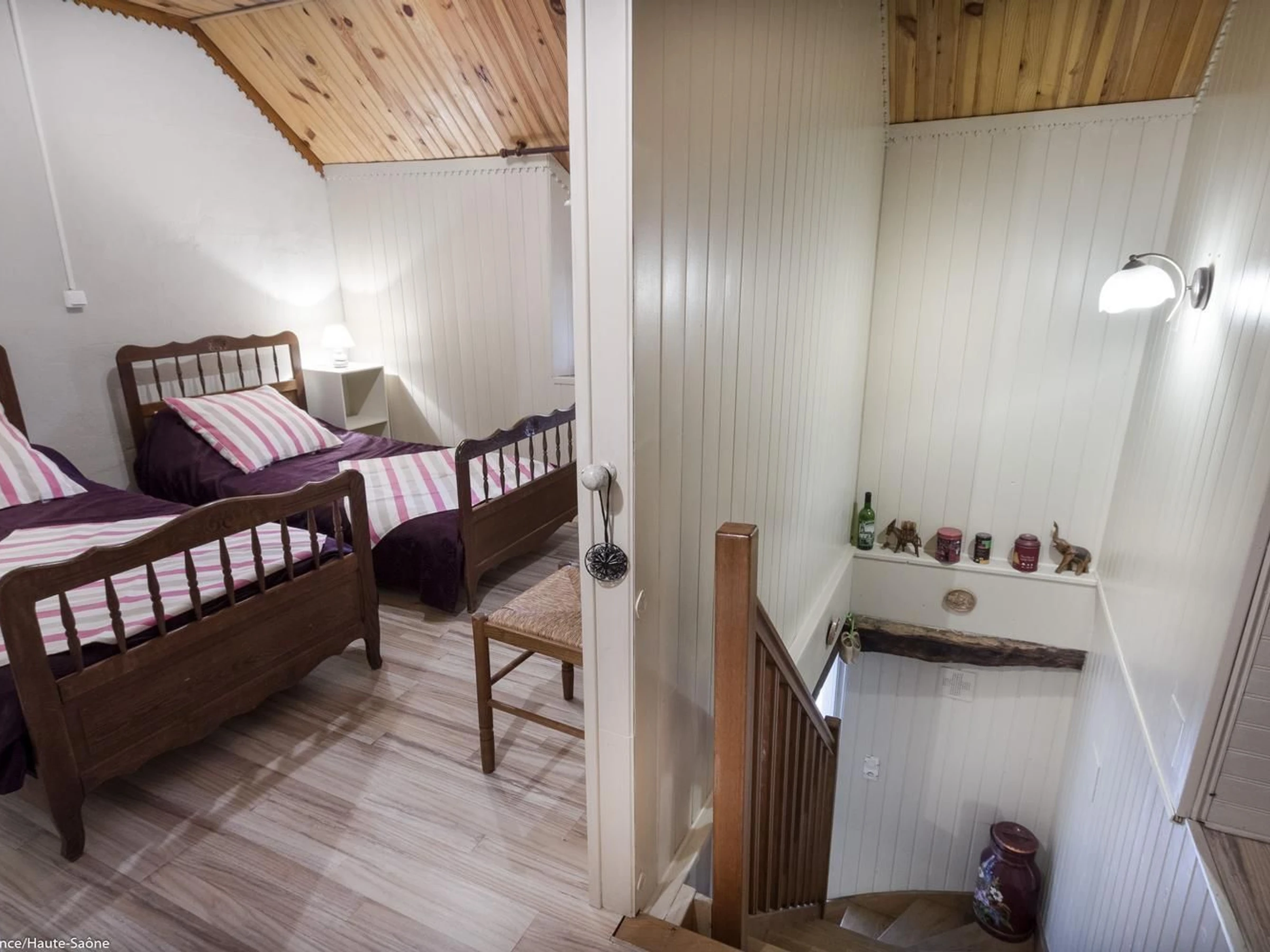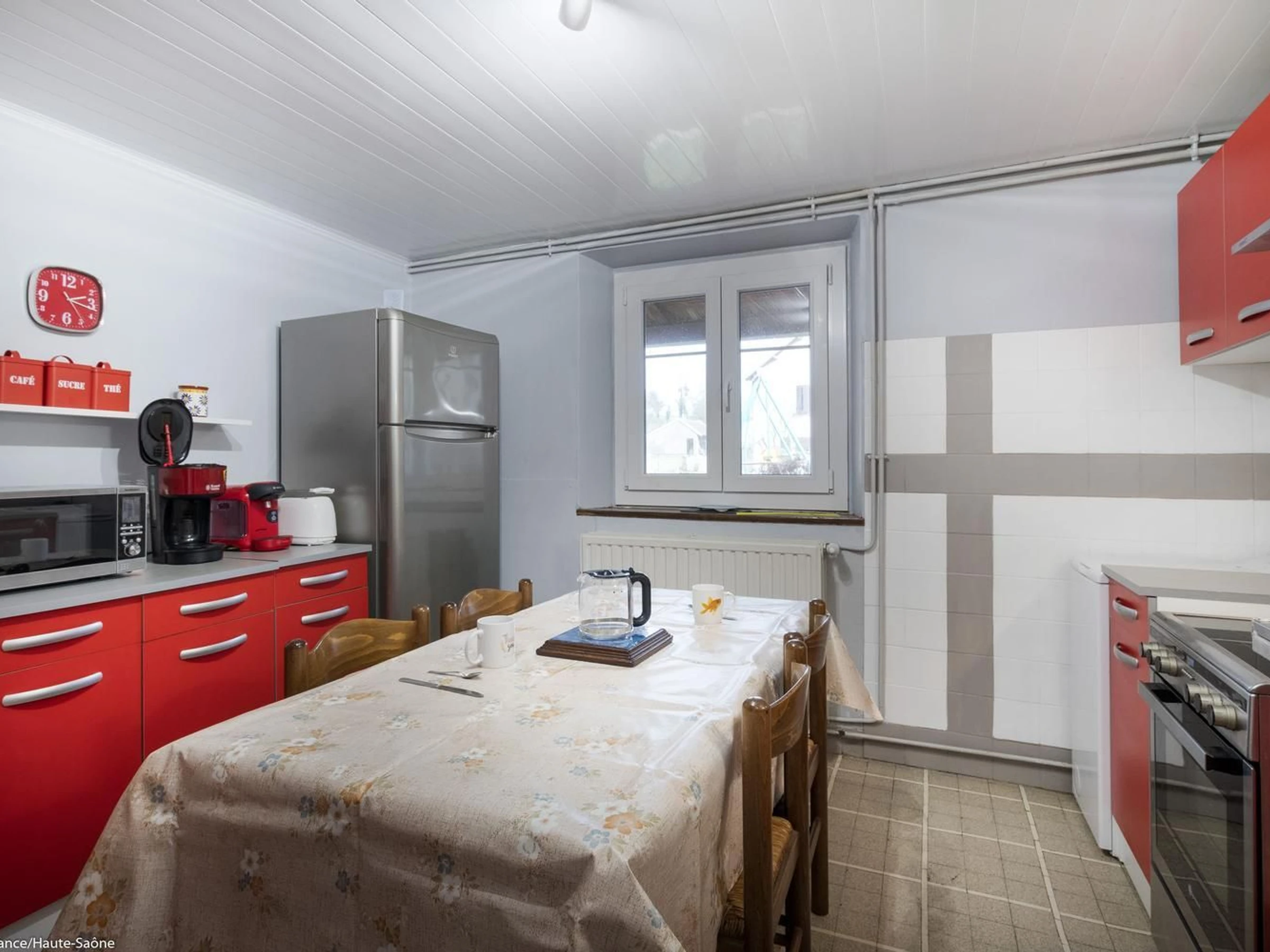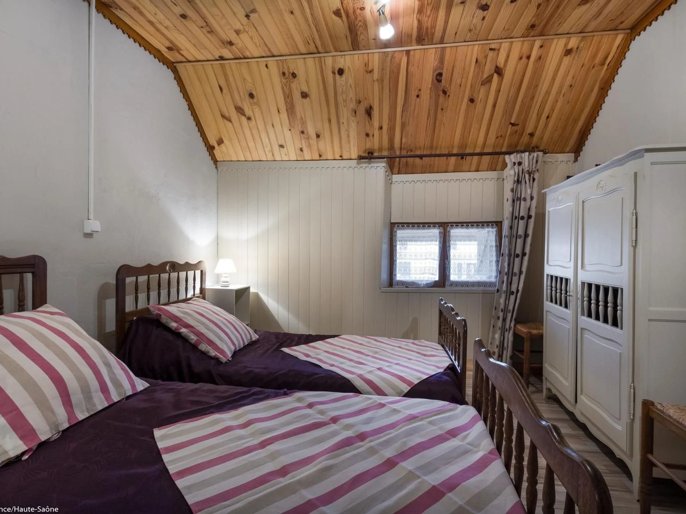 In der Nähe von Ray-sur-Saône, einer kleinen charaktervollen Stadt in der Region Franche-Comté, mit einer Kirche, einer Kapelle, Kalvarienbergen, Waschhäusern ... Schöne Aussichtspunkte und Spazierwege. GEBÜHREN NICHT INBEGRIFFEN. Bettwäsche inklusive und Betten bei der Ankunft gemacht. Handtücher werden auf Anfrage bereitgestellt. In einem kleinen Dorf, an ein altes Bauernhaus (nicht in Gebrauch) angrenzendes Haus mit im Erdgeschoss: Eingangshalle, Wohnzimmer mit Holzofen, Küche/Essbereich, 1 Schlafzimmer (2 Einzelbetten – 1 Einzelbett, 1 Babybett), Duschraum/WC, Duschraum, WC. 1. Stock: 1 Schlafzimmer im Zwischengeschoss (geschlossen, 2 Einzelbetten), 1 Schlafzimmer (1 Doppelbett), 1 Ruheraum (mit Spielen, Fernseher usw.). 1 WC.