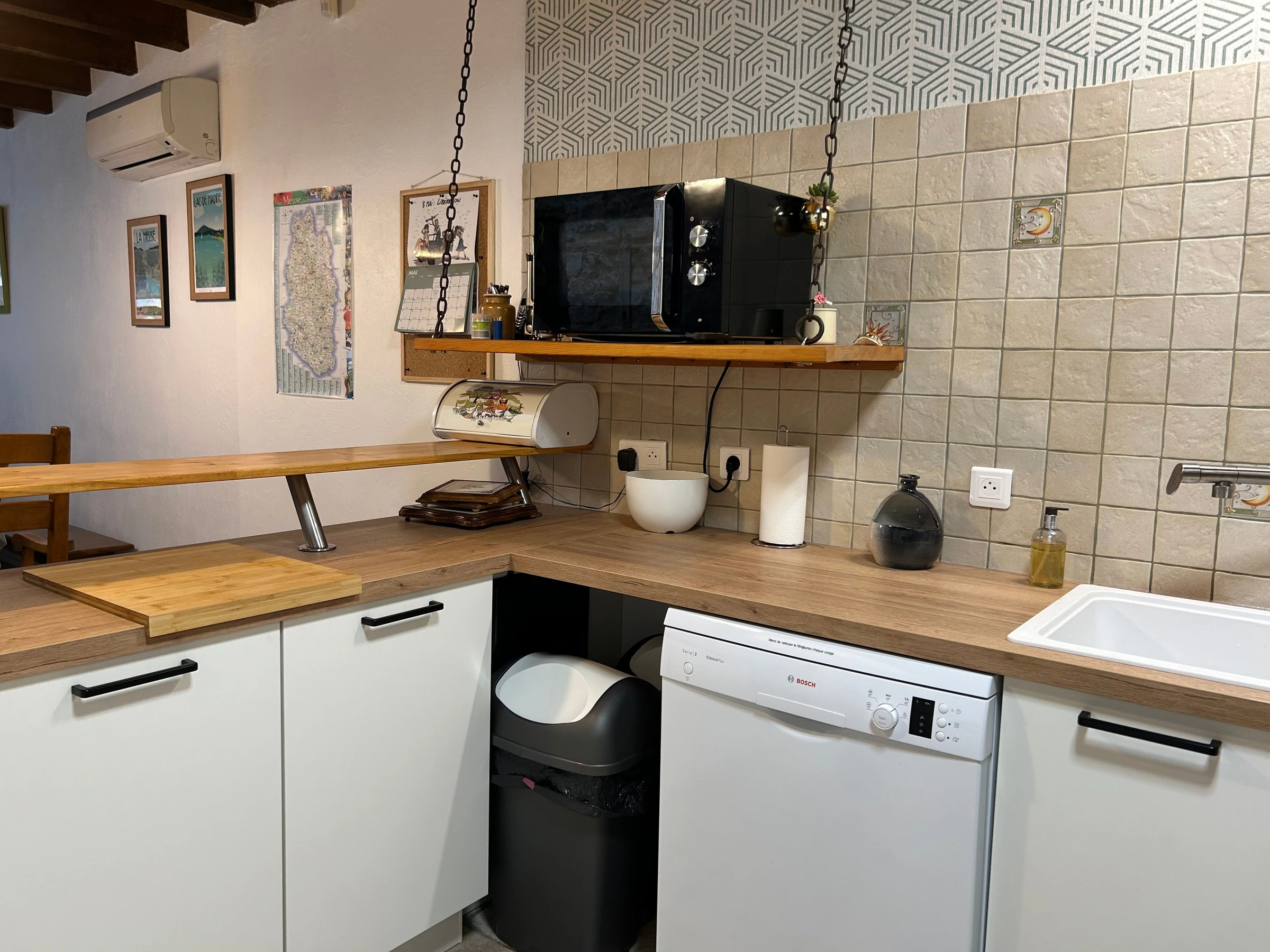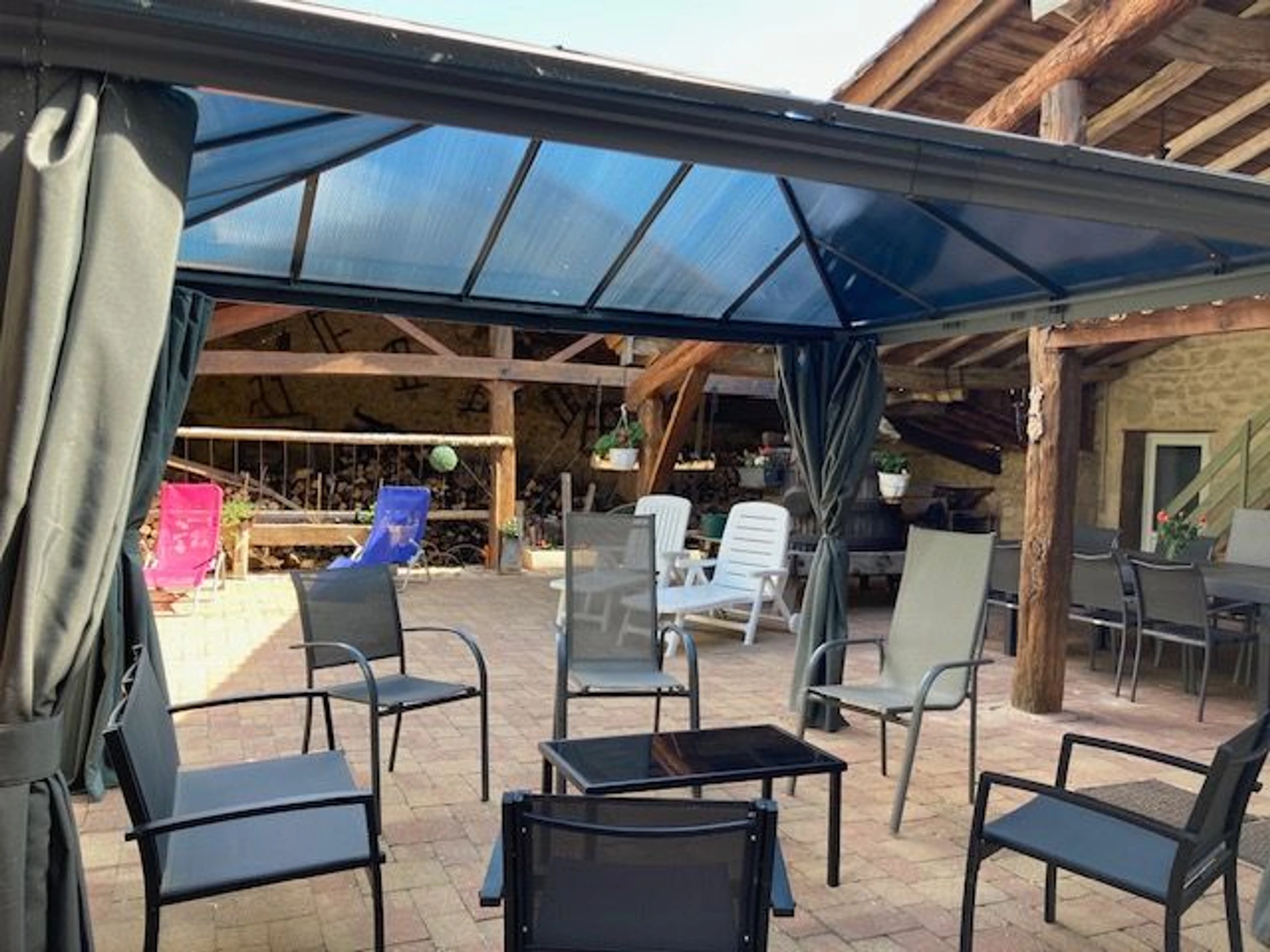 Die Inneneinrichtung harmoniert perfekt mit der Architektur. Flämischer Stil, freiliegende Balken und Mauerwerk, ein Kamin, ein Steinwaschbecken, eine authentische Weinpresse, ein Brotbackofen und ein Klavier: All diese Elemente tragen zum authentischen Charakter dieses Ortes bei. Es ist der ideale Ort zum Entspannen und für gesellige Stunden mit Familie und Freunden. Dominique und Pascal heißen Sie herzlich willkommen.
