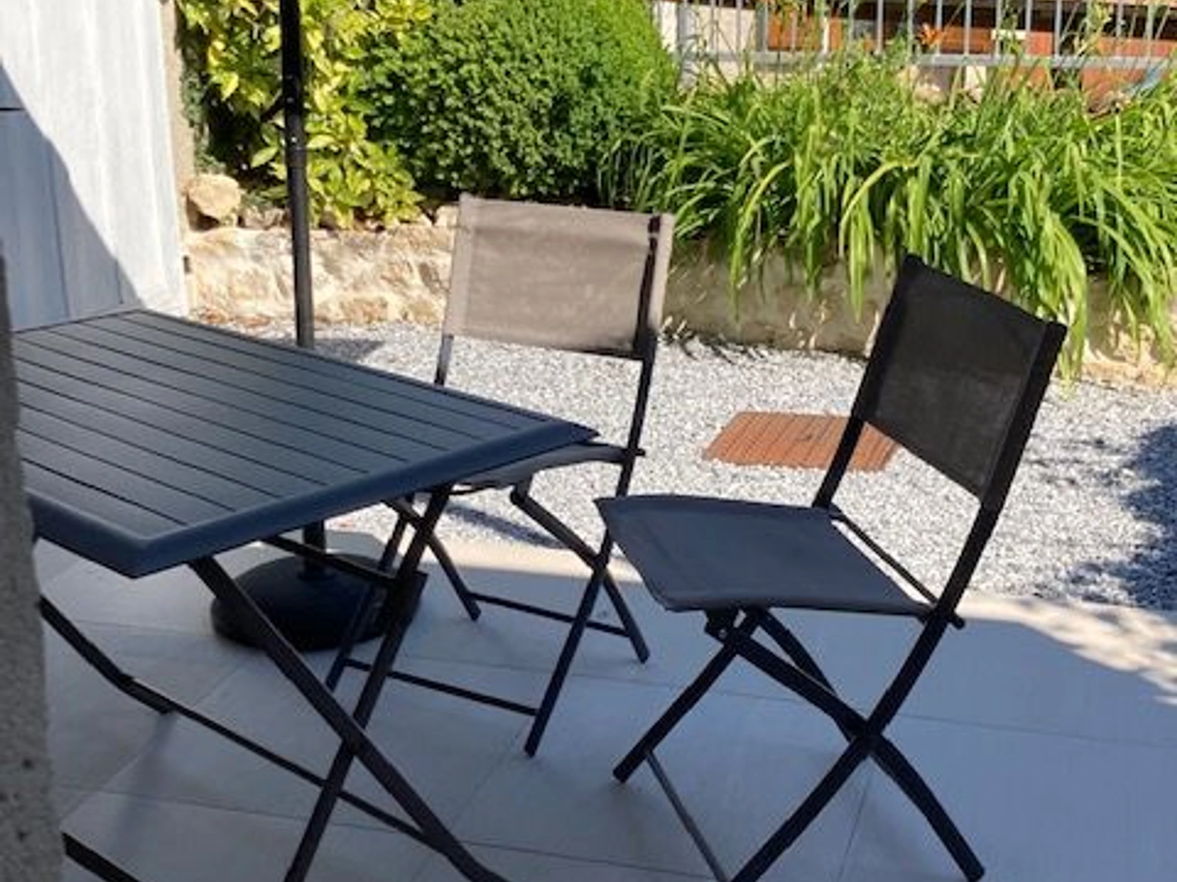 Ausgestattet mit einer Ladestation für Elektrofahrzeuge. Erdgeschoss: Schlafzimmer mit Doppelbett (140 x 190 cm), ebenerdiger Dusche und WC. Voll ausgestattete Küche mit Geschirrspüler, Mikrowelle und 5-Flammen-Herd. Zugang zu einem geräumigen Wohn-/Esszimmer mit Kathedralendecke (Kamin, TV, DVD-Player) und direktem Zugang zu einem blühenden Innenhof – eine wahre Oase der Ruhe (Gartenmöbel, Liegestühle, Grill, Spiele für draußen).