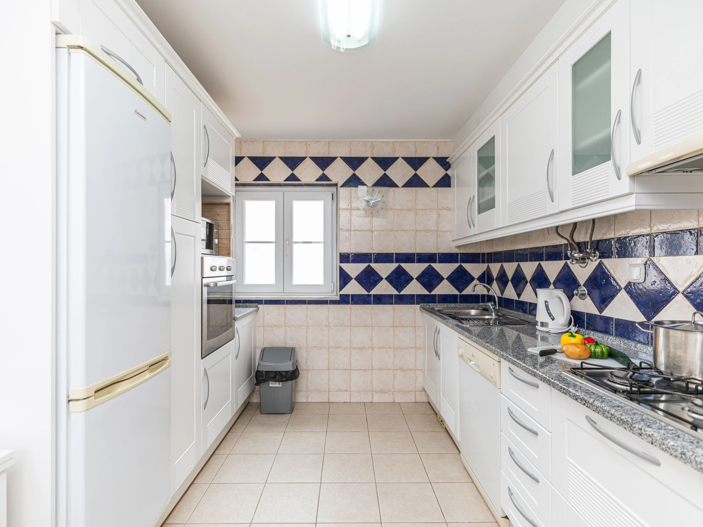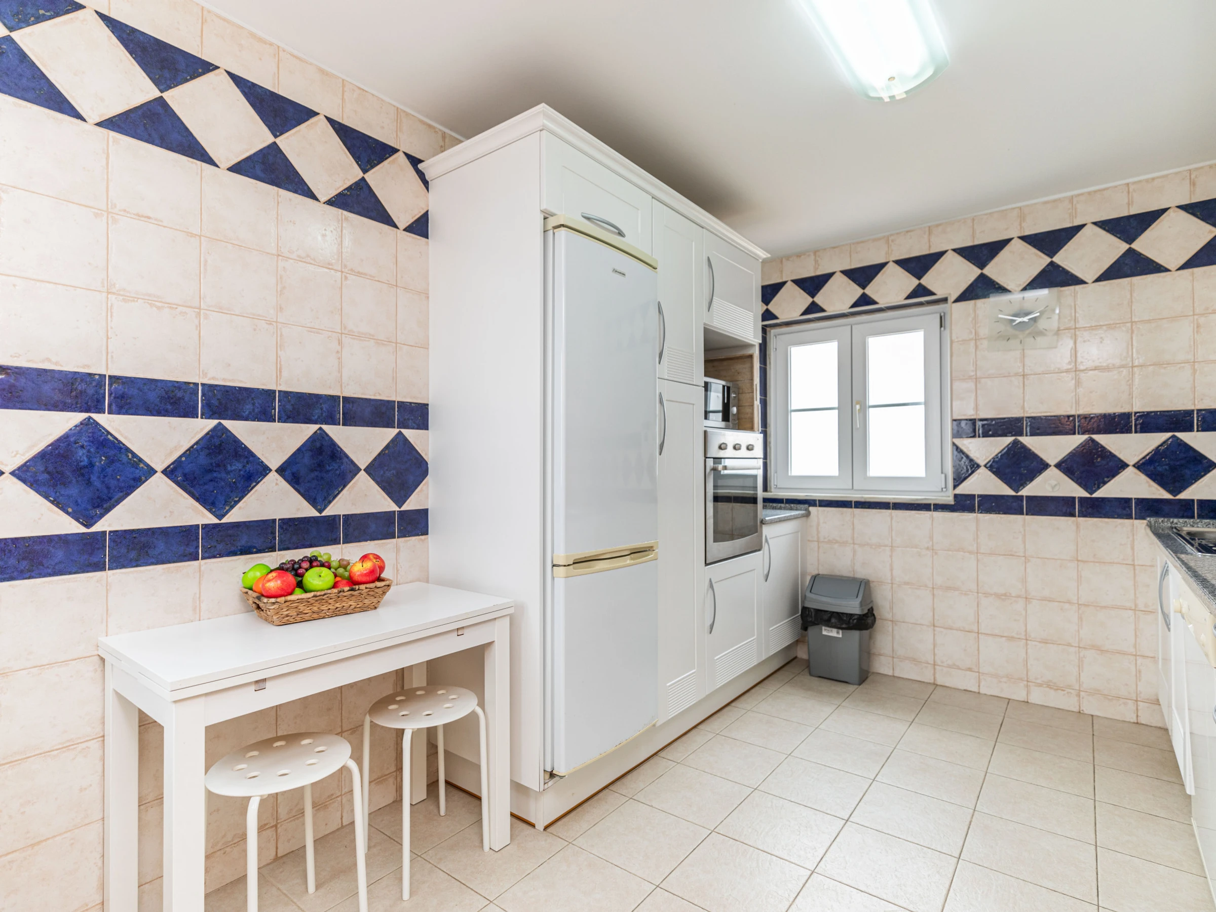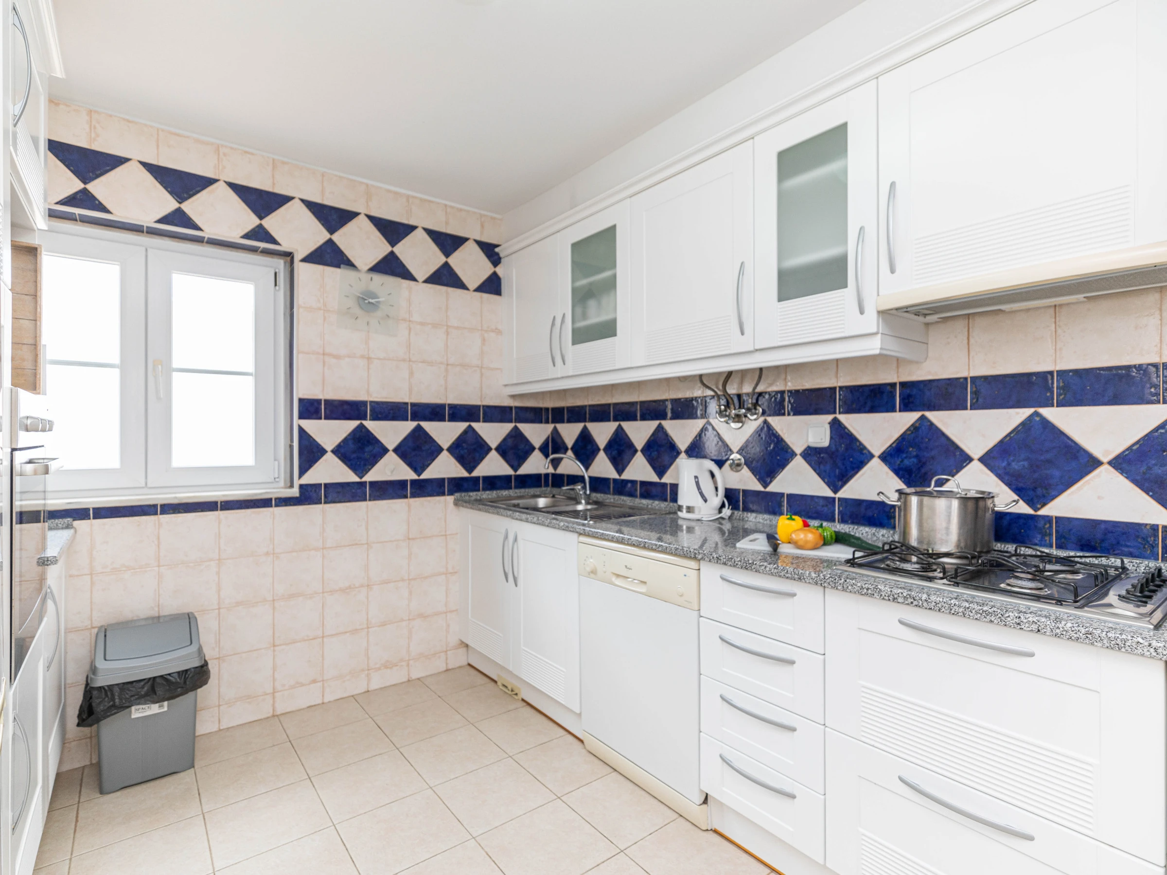 Dieses küche, mit gas-kochfeld, ist ausgestattet in kühlschrank, mikrowelle, backofen, gefrierschrank, spülmaschine, geschirr/besteck, kochutensilien, kaffeemaschine, friteuse, toaster, wasserkocher und saftpresse.