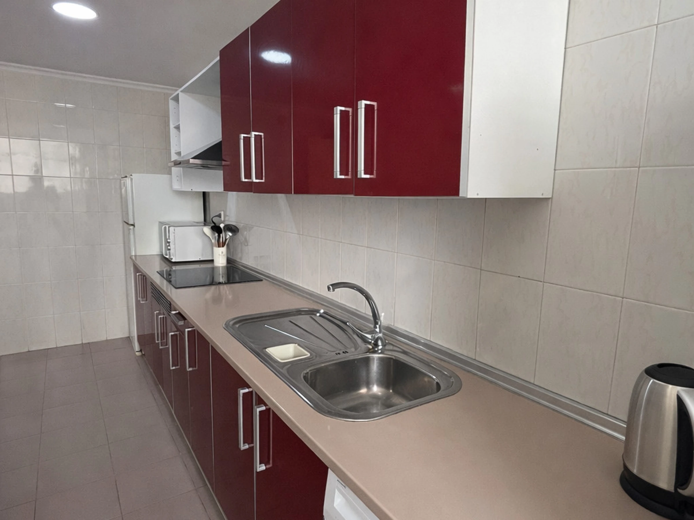 Dieses separate küche, mit ceranfeld, ist ausgestattet in kühlschrank, mikrowelle, backofen, gefrierschrank, geschirr/besteck, kochutensilien, kaffeemaschine, toaster, wasserkocher und saftpresse.