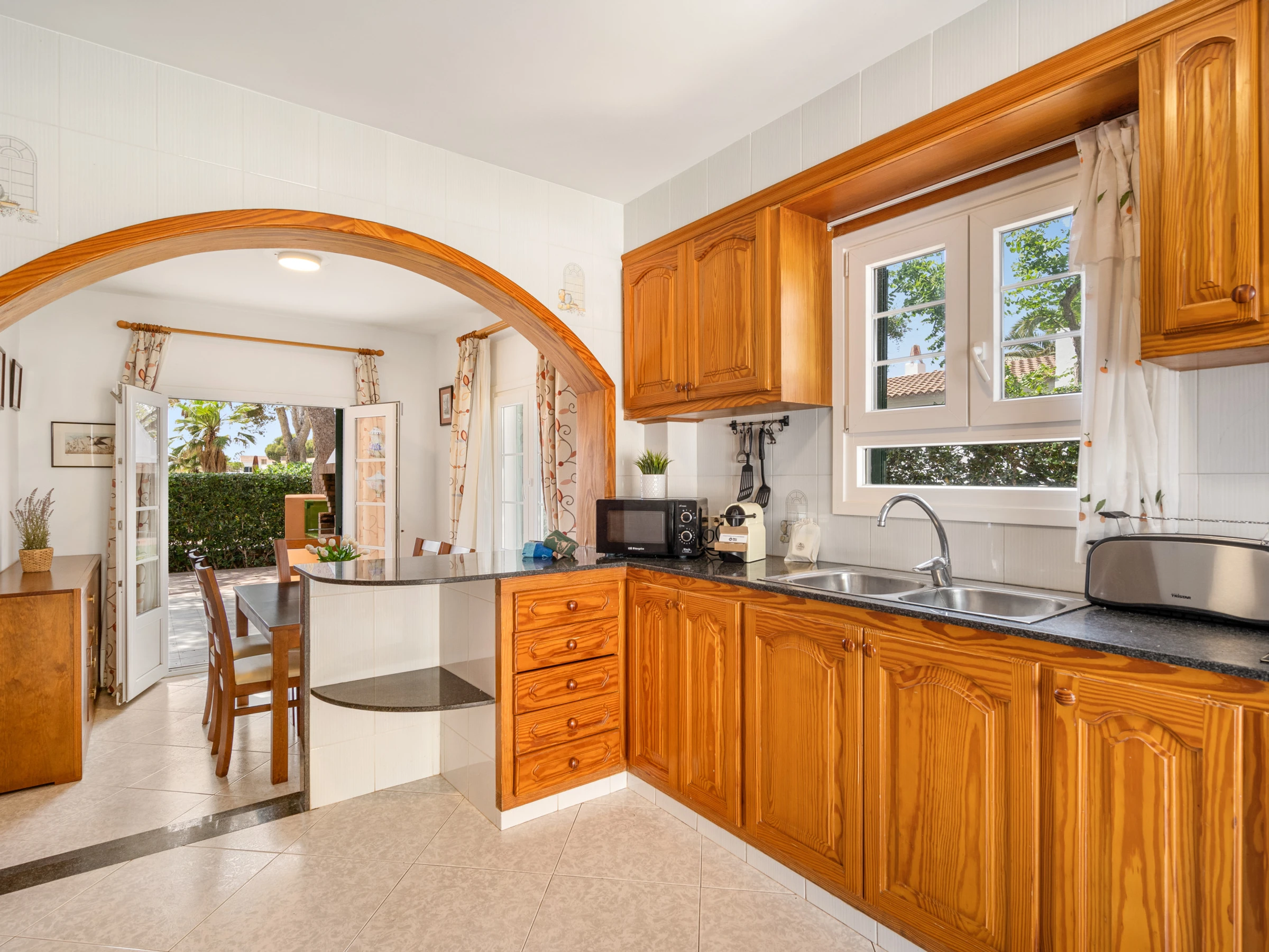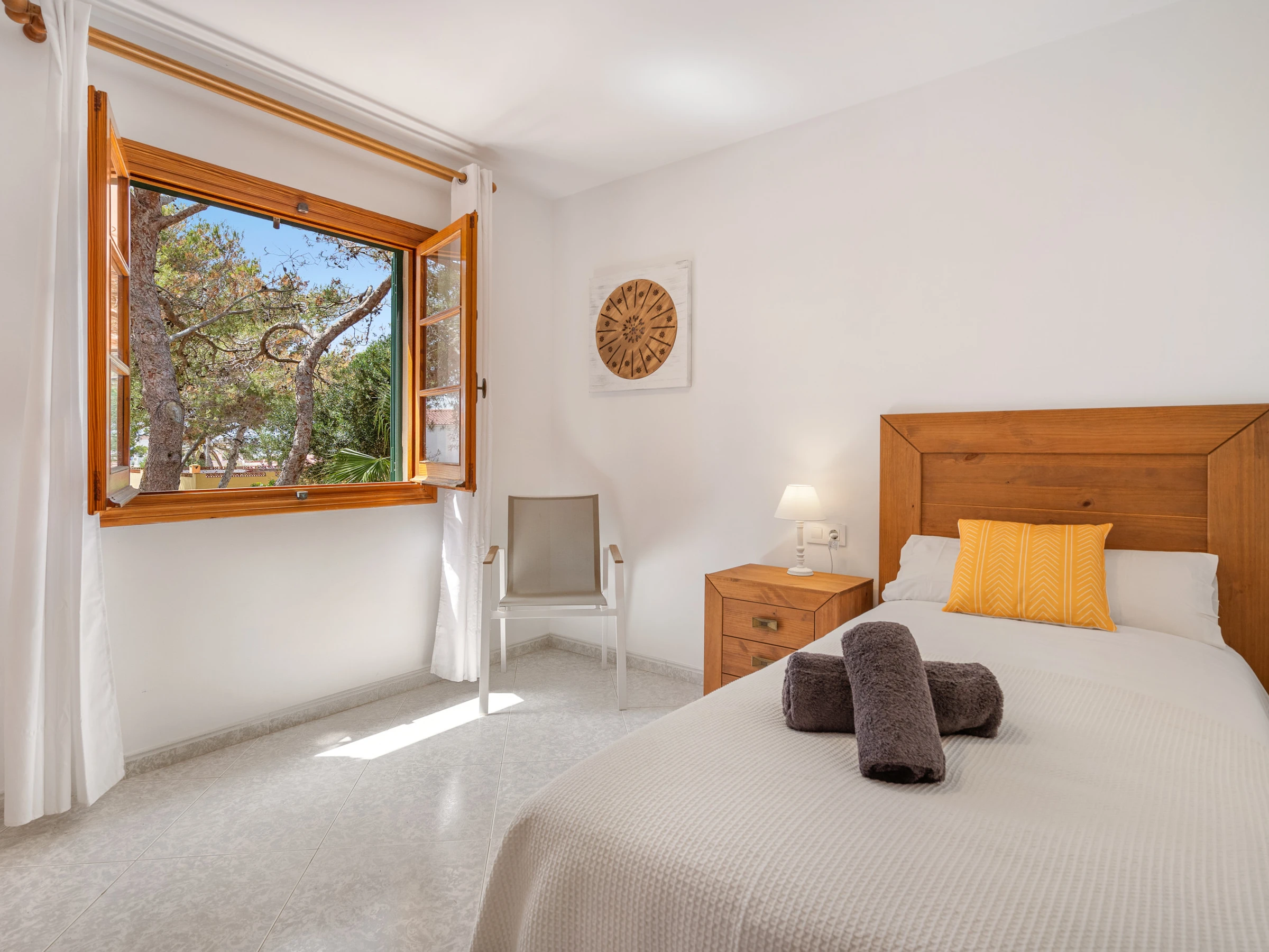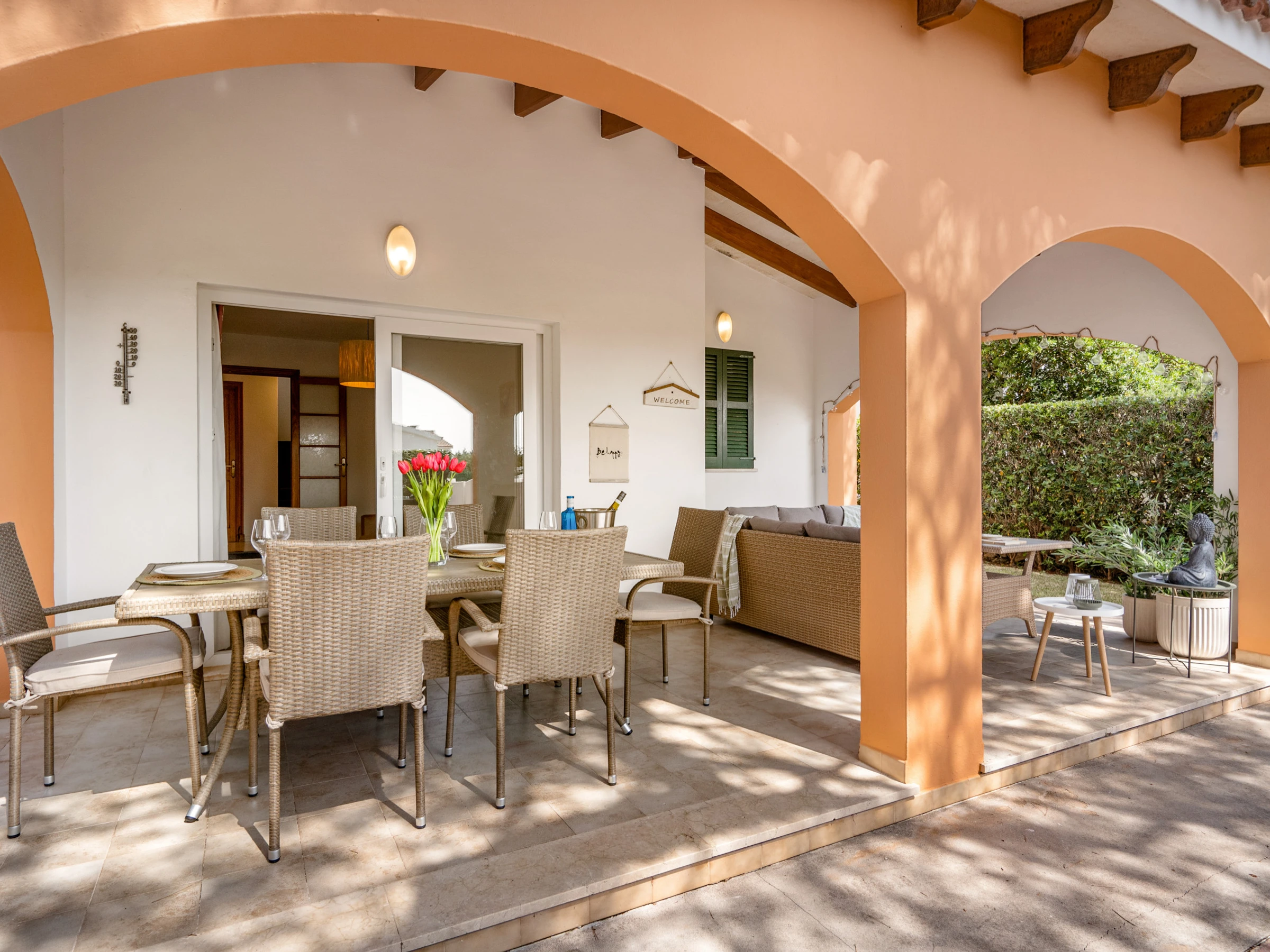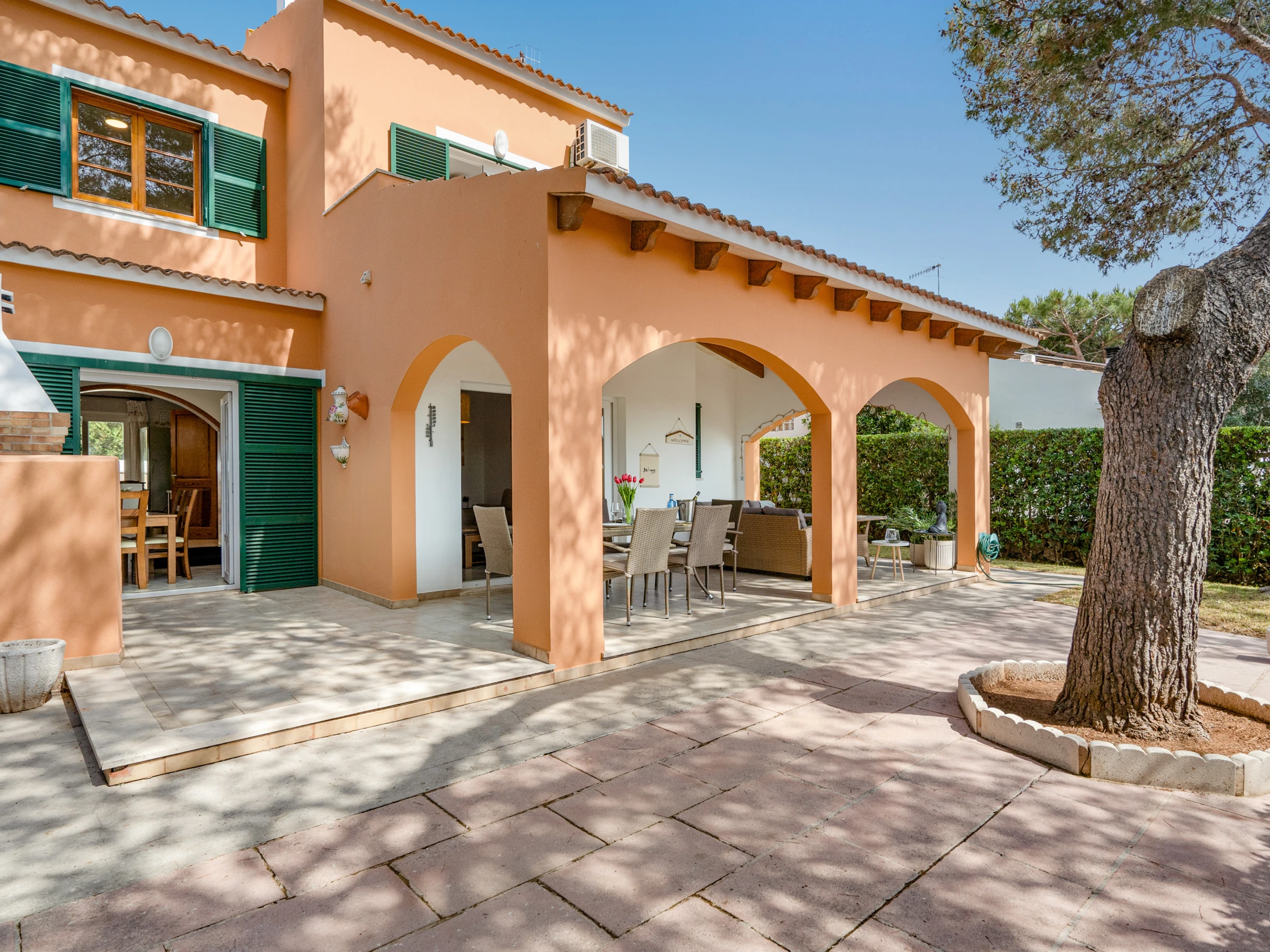 Zugang von zwei Straßen, vom Carrer de S espigol und vom Carrer des Pins. Nur wenige Meter entfernt gibt es Bars, Restaurants, Supermärkte, eine Apotheke und den Sandstrand von Cala Blanca mit seinen Sonnenuntergängen.