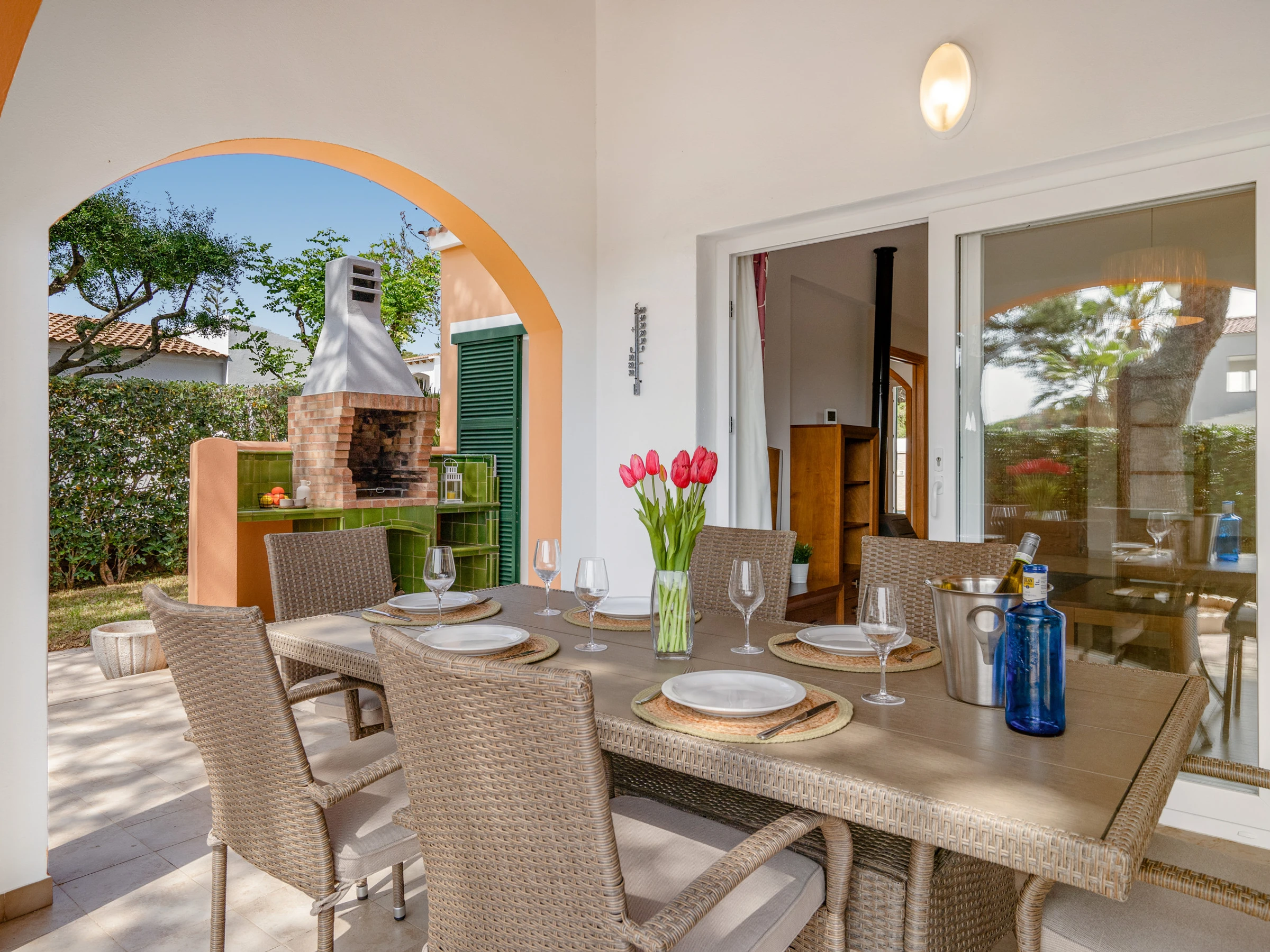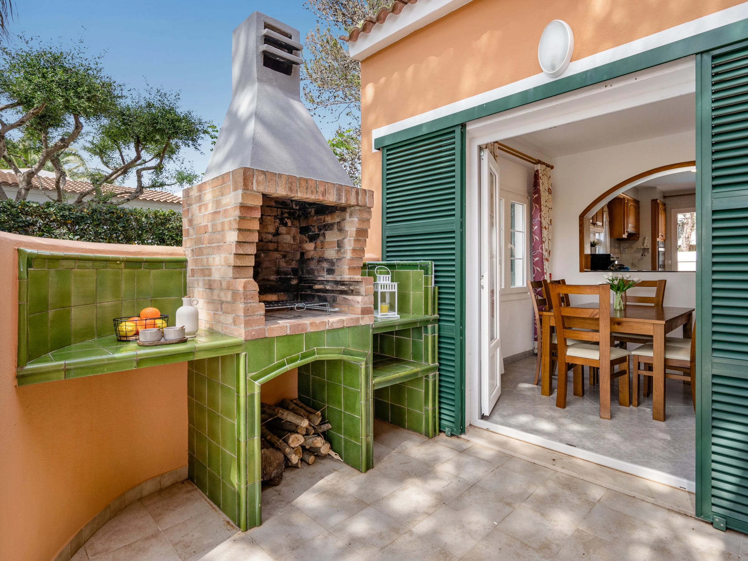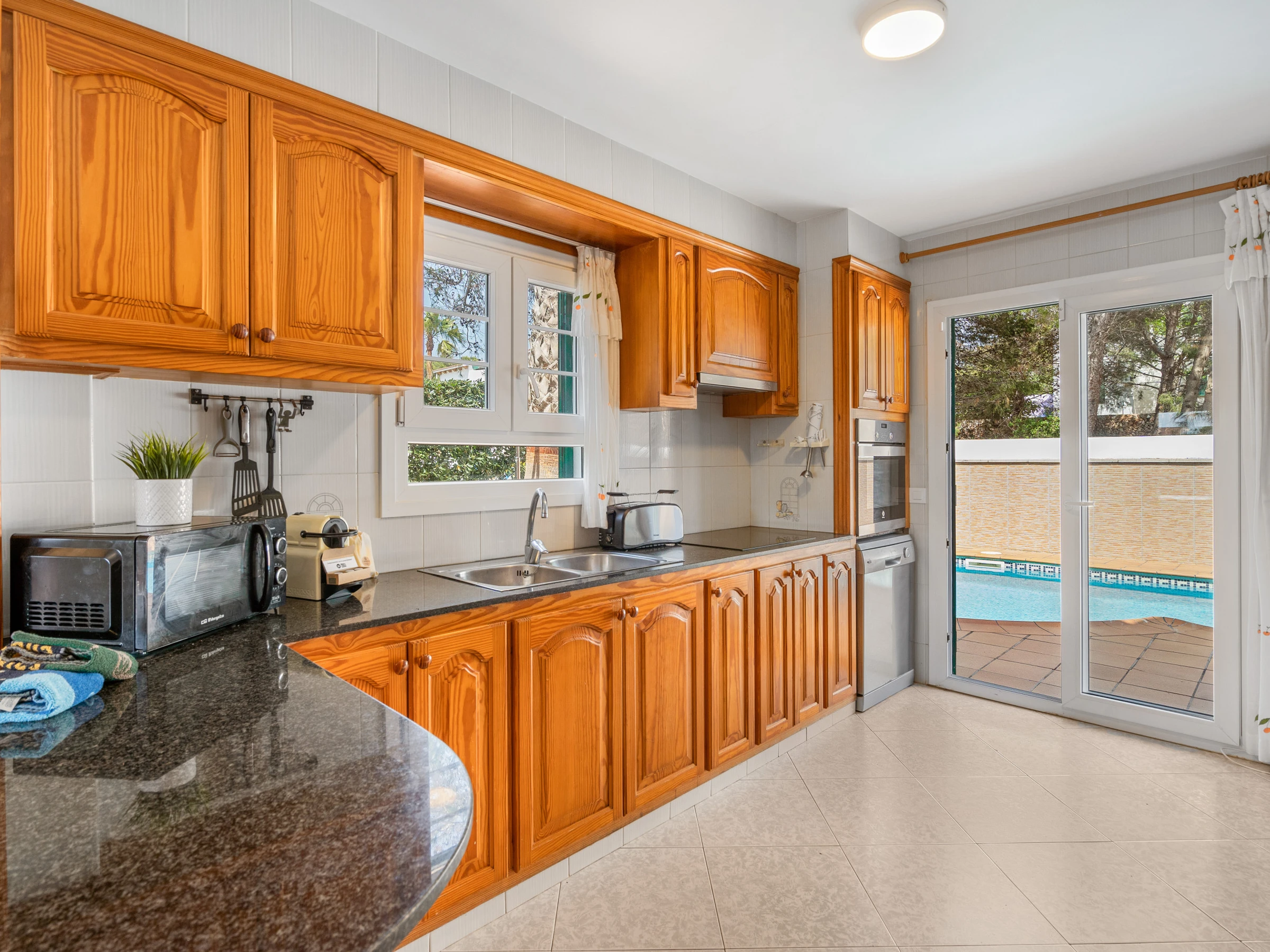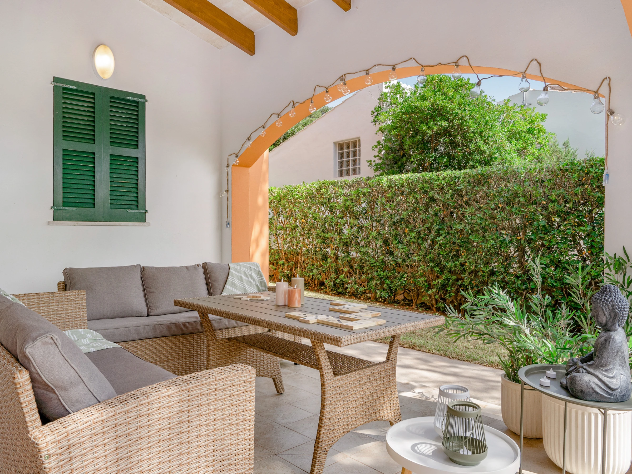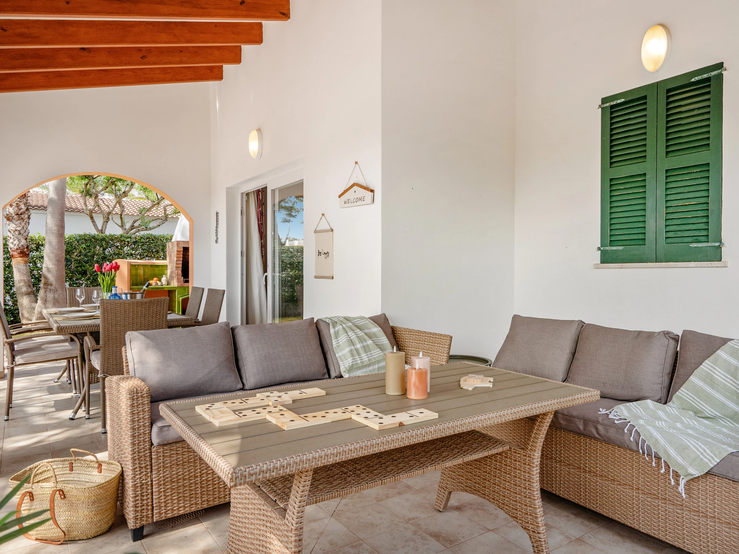 Sein Außenbereich verfügt über einen privaten Pool mit Außendusche, einem gemauerten Grill und einer schönen überdachten Terrasse mit bequemen Sofas, um angenehme Sommerabende zu verbringen.