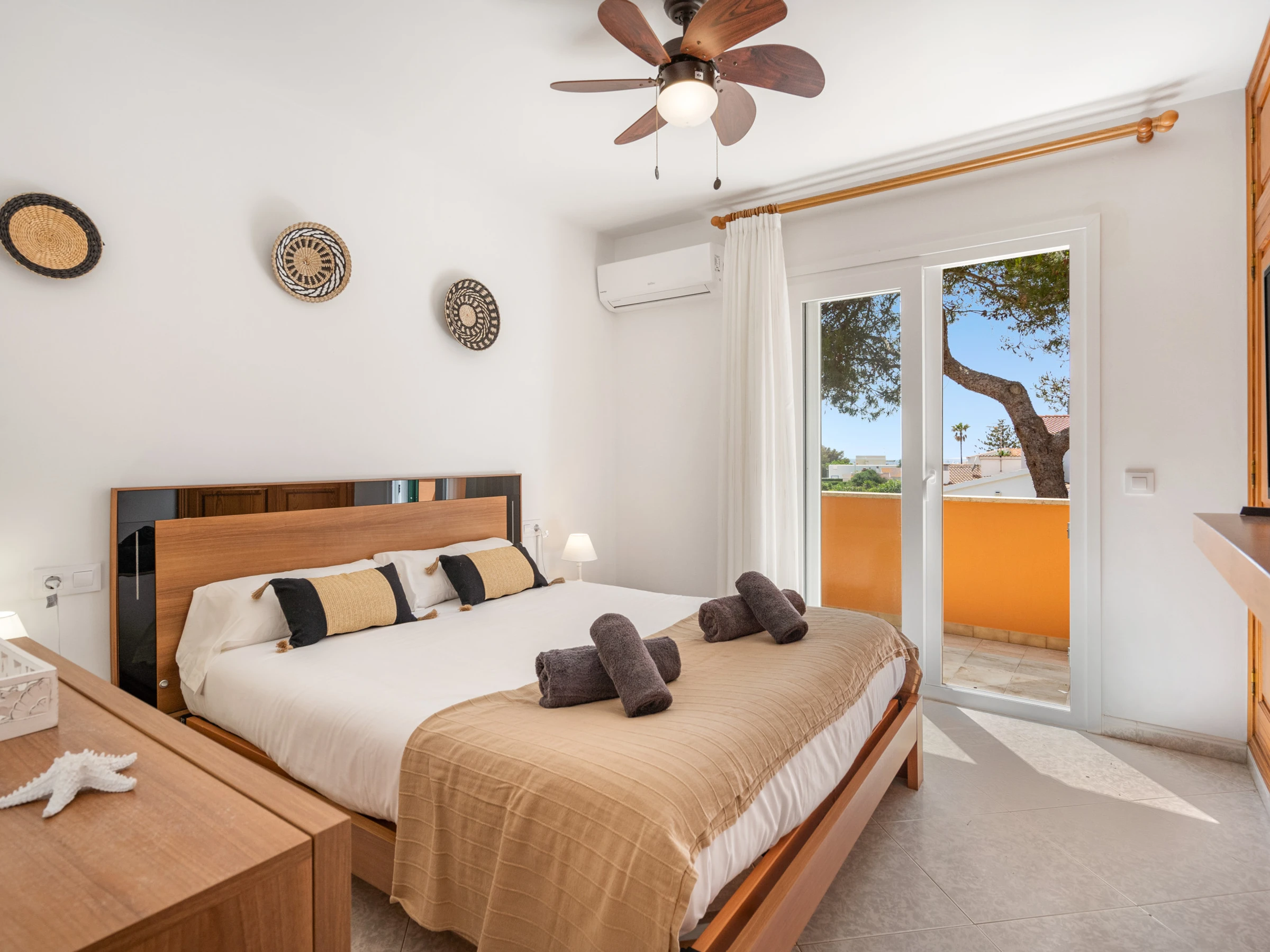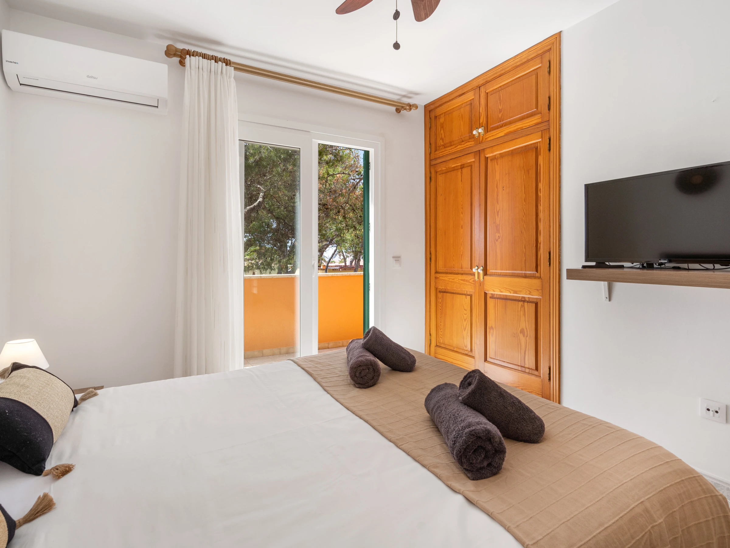 1 Doppelzimmer mit Klimaanlage und Ventilator mit TV und Terrasse