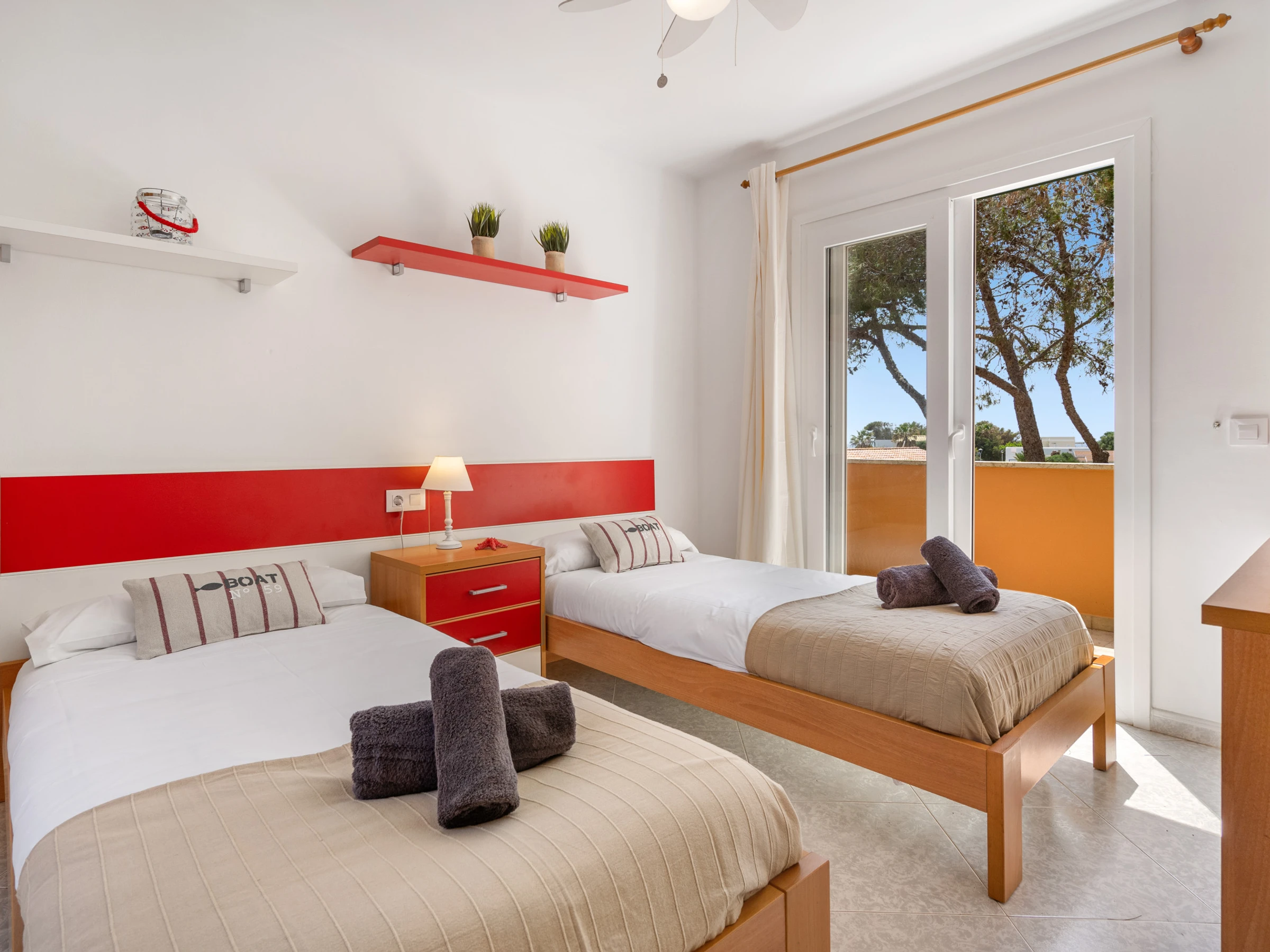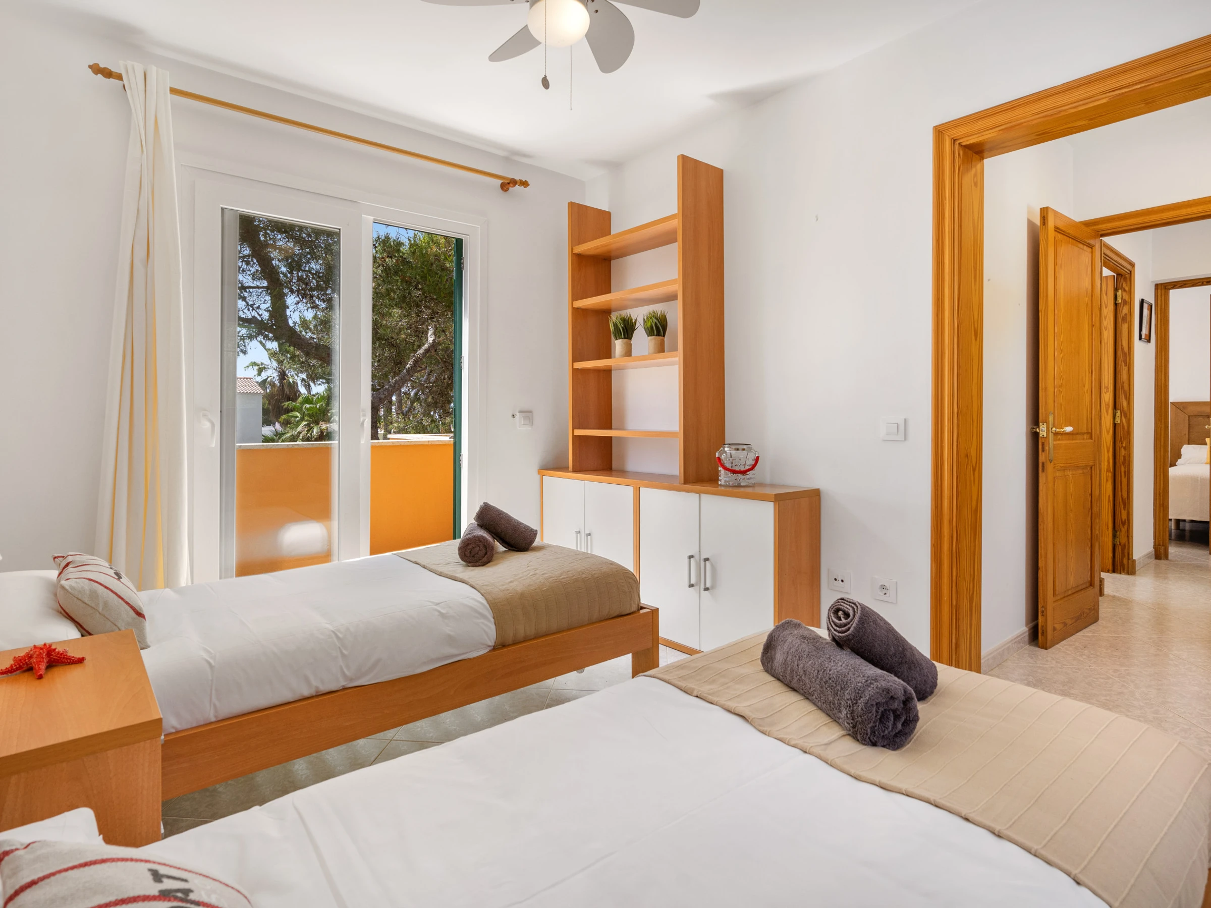1 Zimmer mit 2 Betten mit Klimaanlage und Ventilator mit Terrasse