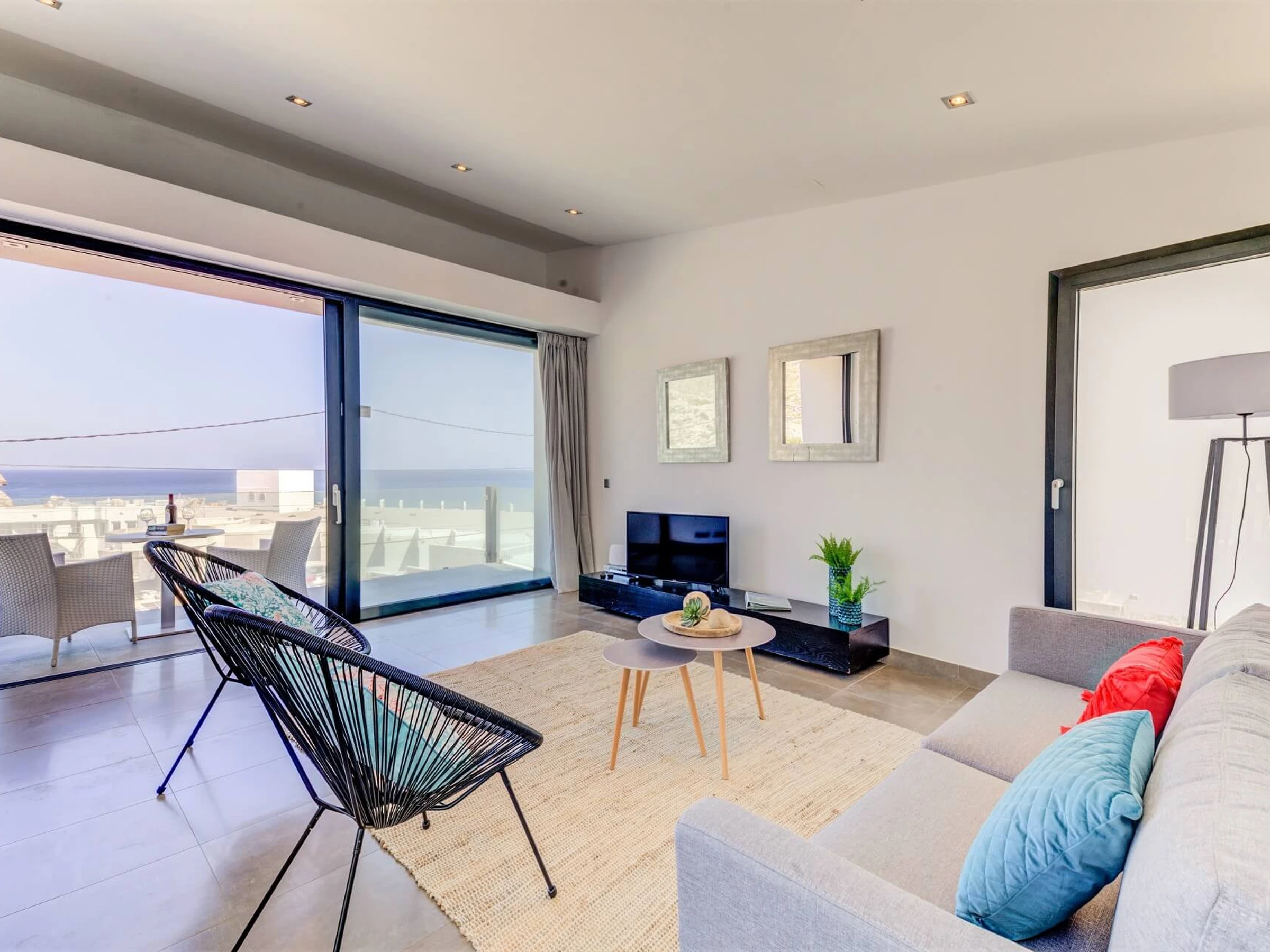 Die Wohnung befindet sich im ersten Stock und bietet einen beeindruckenden Balkon mit Meerblick, um die Aussicht und ein angenehmes Getränk im Freien zu genießen. Das gut möblierte und geräumige Wohnzimmer und die Küche verfügen über große Terrassentüren (in voller Größe), die einen beeindruckenden Ausblick und Zugang zum Balkon bieten. Es gibt insgesamt 2 Schlafzimmer, 1 Doppelzimmer mit Dusche en suite und 1 Zimmer mit 2 Einzelbetten sowie 1 modernes Badezimmer mit Dusche. Die Klimaanlage ist verfügbar und im Mietpreis zu festen Zeiten inbegriffen (14-16 Uhr, 20-8 Uhr). Aufgrund seiner einzigartigen Lage und eleganten Details ist diese Immobilie ein wahres Juwel, das man nicht verpassen sollte!