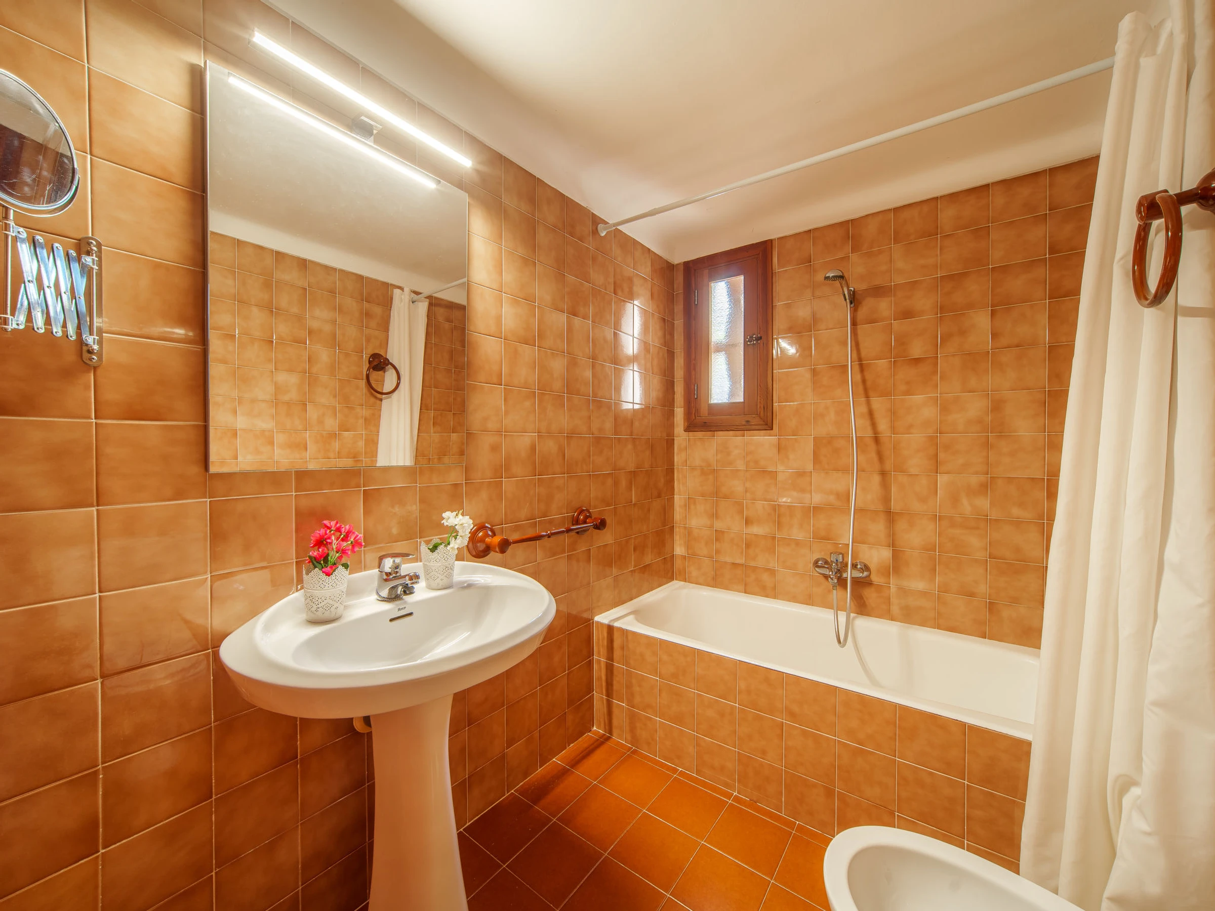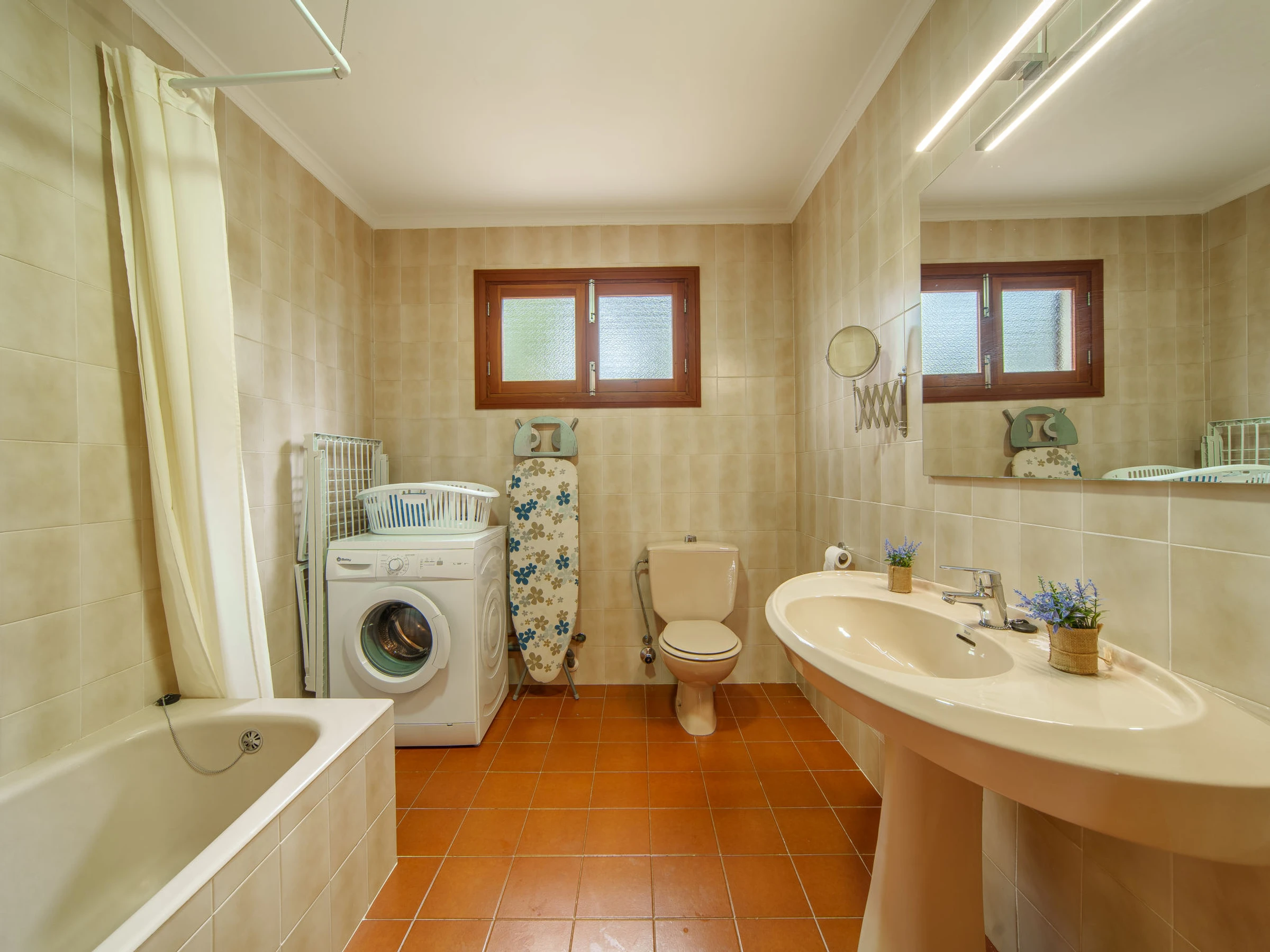 "Cas Padrins de Santanyi", 4-Zimmer-Villa 160 m2. Objekt geeignet für 4 Erwachsene + 2 Kinder. Hell, einfach und zweckmässig eingerichtet: Wohn-/Esszimmer mit Klimaanlage und Warmluftheizung. Ausgang zur Terrasse. 2 Doppelzimmer, jedes Zimmer mit 1 franz. Bett (1 x 180 cm, Länge 200 cm), Klimaanlage und Warmluftheizung. 1 Doppelzimmer mit 2 Betten (90 cm, Länge 200 cm), Klimaanlage und Warmluftheizung. Küche (Backofen, Geschirrspüler, 4 Glaskeramikplatten, Toaster, Wasserkocher, Mikrowelle, elektrische Kaffeemaschine). 2 Bäder/WC. Natursteinboden. Gartensitzplatz. Terrassenmöbel, Gartengrill, Liegestühle, Sitzplatz. Sehr schöne Sicht auf die Bucht. Zur Verfügung: Waschmaschine, Bügeleisen, Kinderhochstuhl, Babybett bis 2 Jahre, Haartrockner. Internet (WLAN, gratis). Parkplatz beim Haus. Geeignet für Familien. [hidden] // Reg. Nr.: ESFCTU00000700800074732400000000000000000000[hidden]2