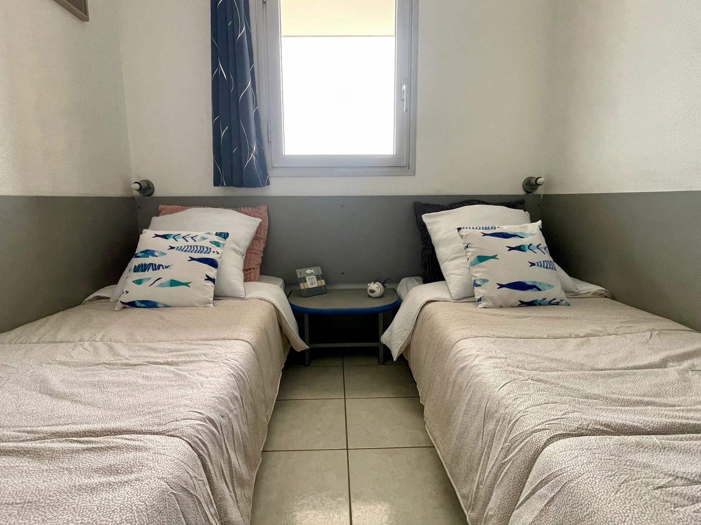 Schließlich finden Sie ein Schlafzimmer mit einem 140 x 190 cm großen Bett und ein Schlafzimmer mit zwei 80 x 190 cm großen Betten.