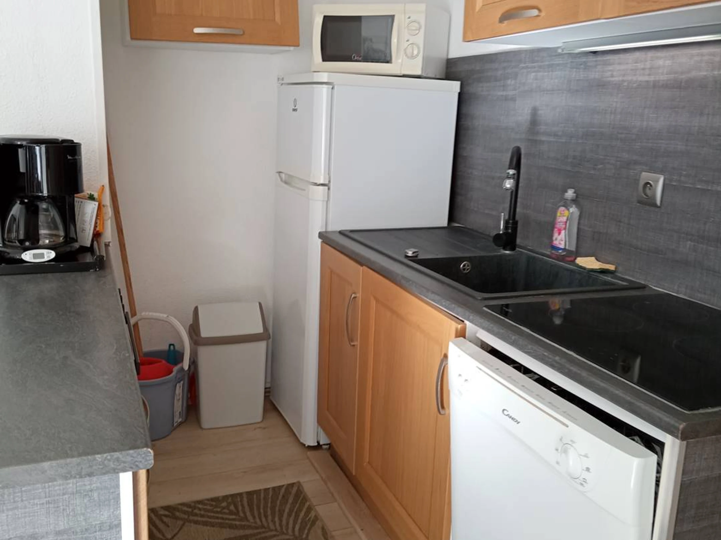 Die voll ausgestattete offene Küche (Induktionskochfeld, Geschirrspüler, Mikrowelle, Backofen, Kühl-/Gefrierschrank, Waschmaschine) ermöglicht Ihnen die Zubereitung von Mahlzeiten wie zu Hause.