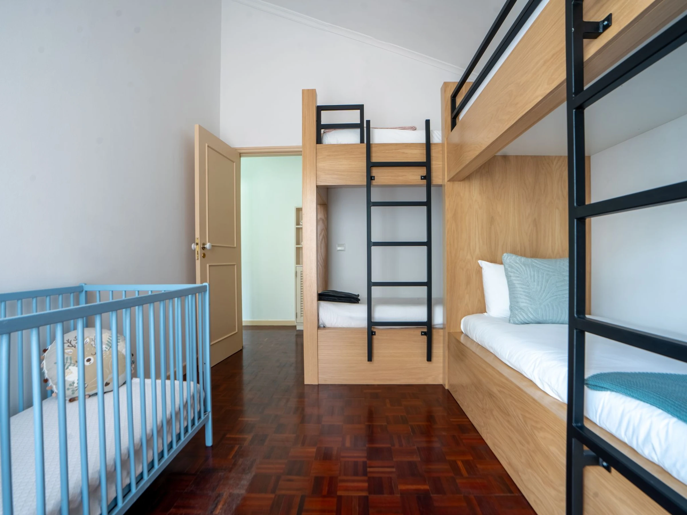 Die Unterkunft verfügt über drei gut ausgestattete Zimmer, die einen geräumigen Raum für Ihre Erholung bieten. Um eine Gruppe dieser Größe mit vollem Komfort zu unterstützen, bietet das Haus zwei vollständige Badezimmer und ein zusätzliches Gäste-WC. Wir garantieren Ihren Komfort, indem wir die gesamte erforderliche Bettwäsche und Handtücher sowie einen Haartrockner bereitstellen. Familien, die mit Kleinkindern reisen, finden auf Anfrage ein Kinderbett und einen Hochstuhl vor.