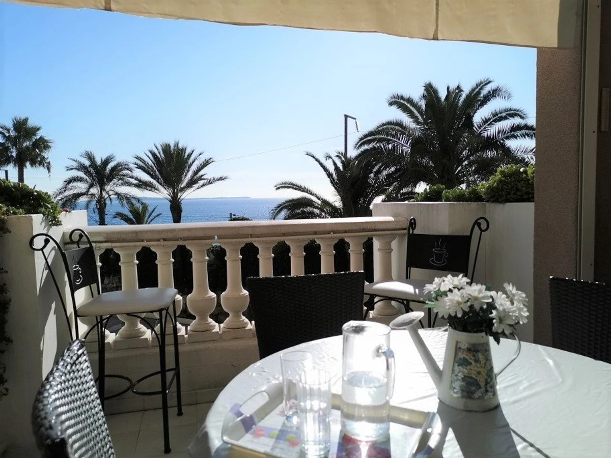 Die Vorteile dieser Vermietung: tiefe Terrasse, Meerblick und Schwimmbäder mit Liegestühlen.