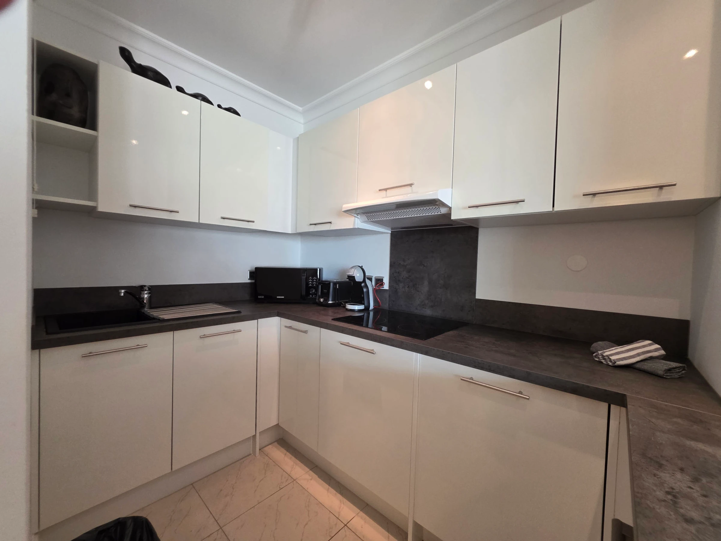 2-Zimmer-Wohnung 48 m2 im 2. Stock. Sehr komfortabel und modern eingerichtet: Wohn-/Esszimmer mit 1 Doppeldiwanbett (140 cm, Länge 190 cm), TV (Flachbildschirm), Klimaanlage. Ausgang zur Terrasse. 1 Zimmer mit 1 franz. Bett (160 cm, Länge 190 cm), Klimaanlage. Ausgang zur Terrasse. Offene Küche (4 Kochplatten, Geschirrspüler, Wasserkocher, Mikrowelle, elektrische Kaffeemaschine, Kapseln für die Kaffeemaschine (Dolce Gusto) extra). Ausgang zur Terrasse. Bad, sep. WC. Warmluftheizung. Grosse Terrasse 12 m2. Sehr schöne Panoramasicht auf das Meer. Zur Verfügung: Waschmaschine, Bügeleisen, Haartrockner. Internet (WLAN, gratis). Garage Nr. 520. Bitte beachten: Nichtraucher-Unterkunft. Rauchmelder. Inserat einer Privatperson nach Artikel 155, IV, CGI. [hidden]