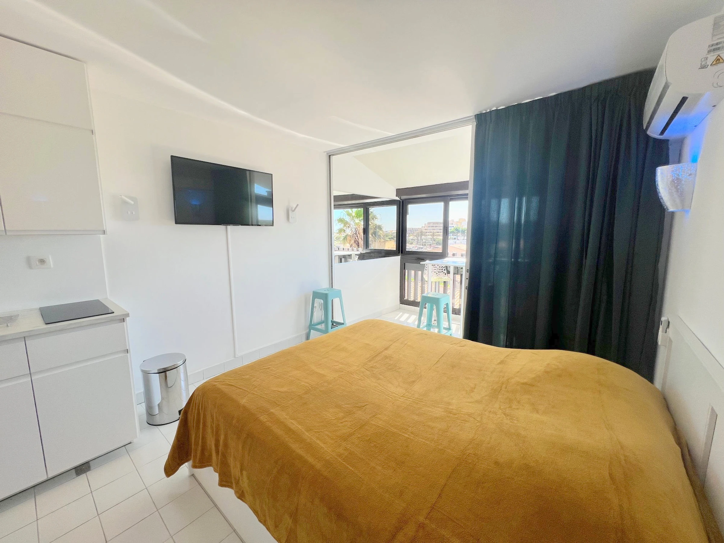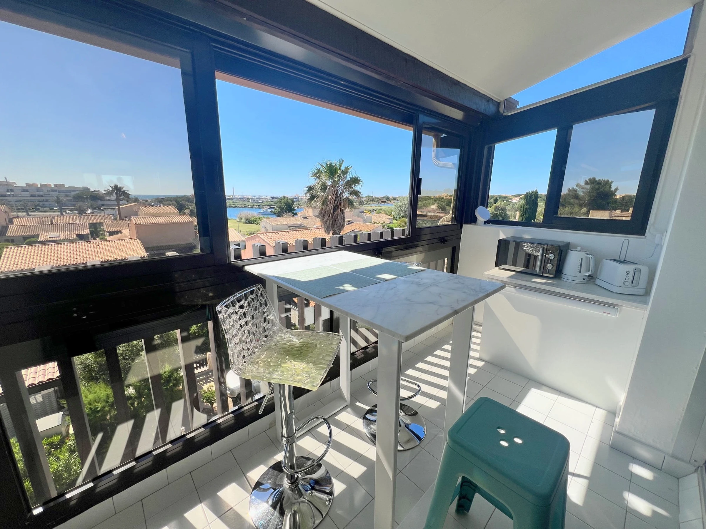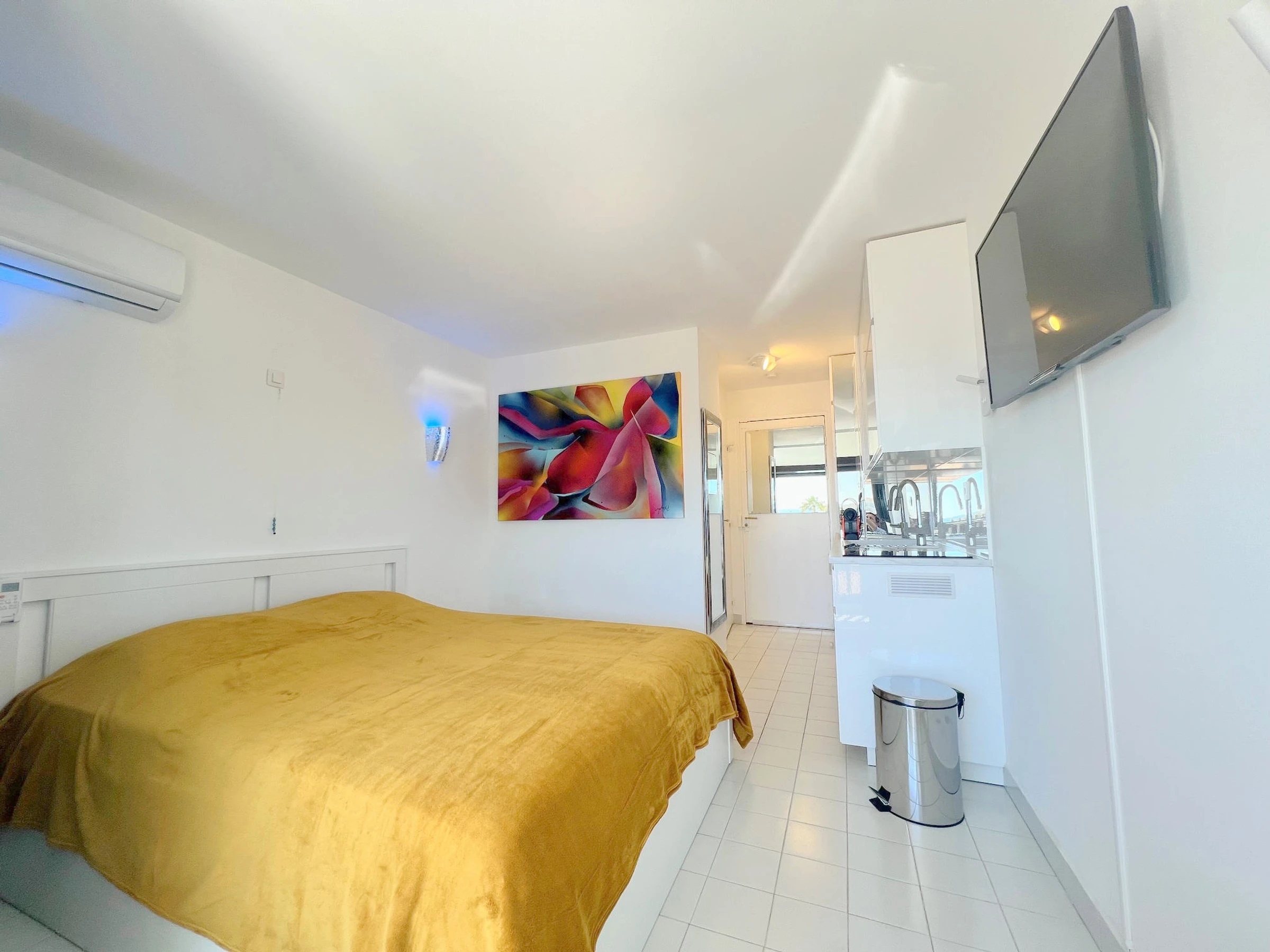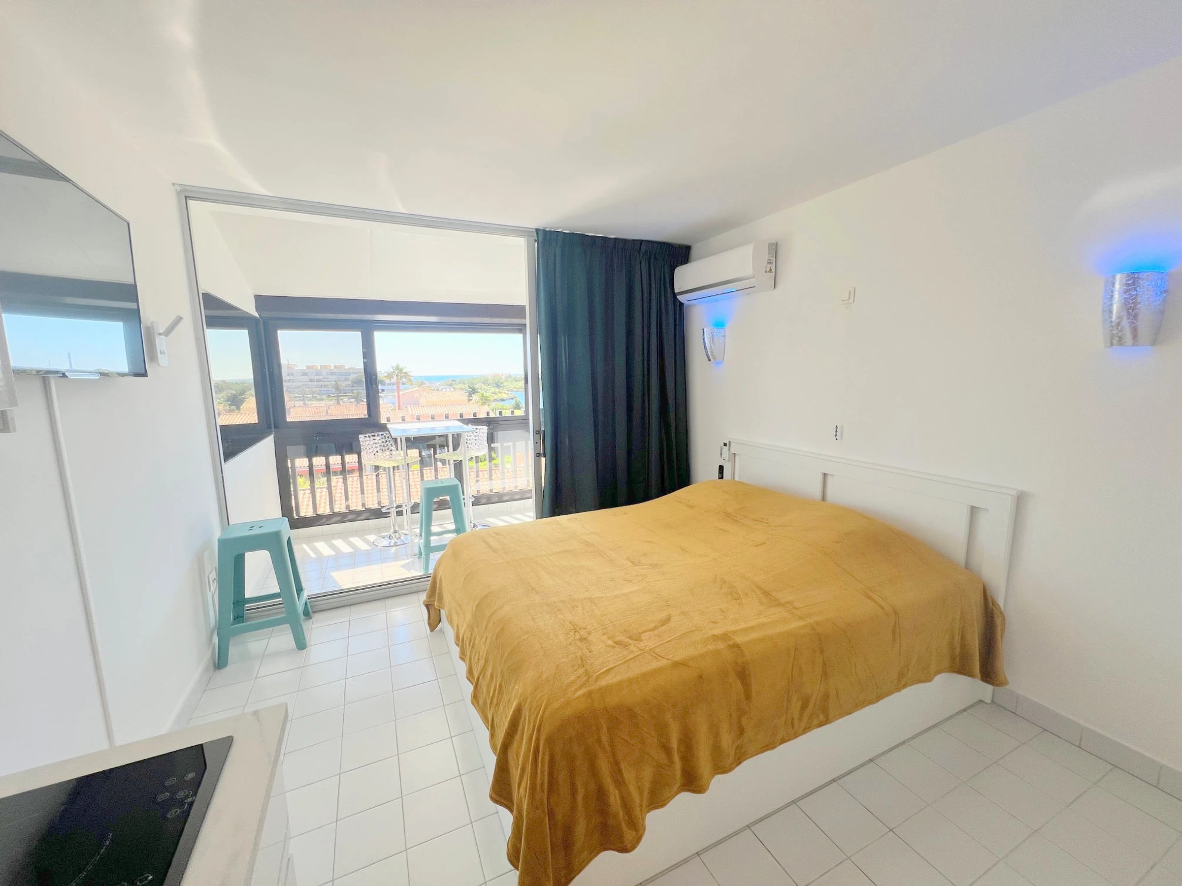 Bel monolocale climatizzato , ristrutturato per 2 persone, situato Résidence Port Vénus, con accesso gratuito alla piscina. Al 3° piano con ascensore, lato Porto an vista con Mare. Soggiorno con letto da 160 cm. Angolo cottura con forno a microonde, caffettiera Nespresso, tostapane. Bagno con doccia e WC. Véranda. No Parcheggio .