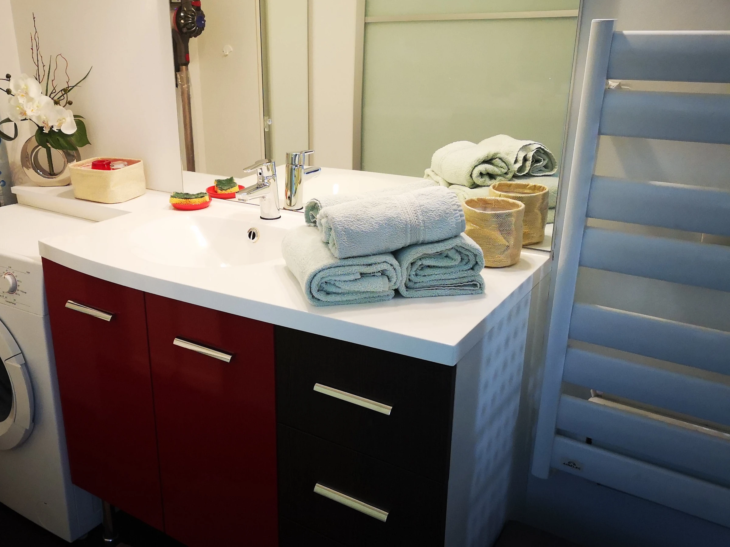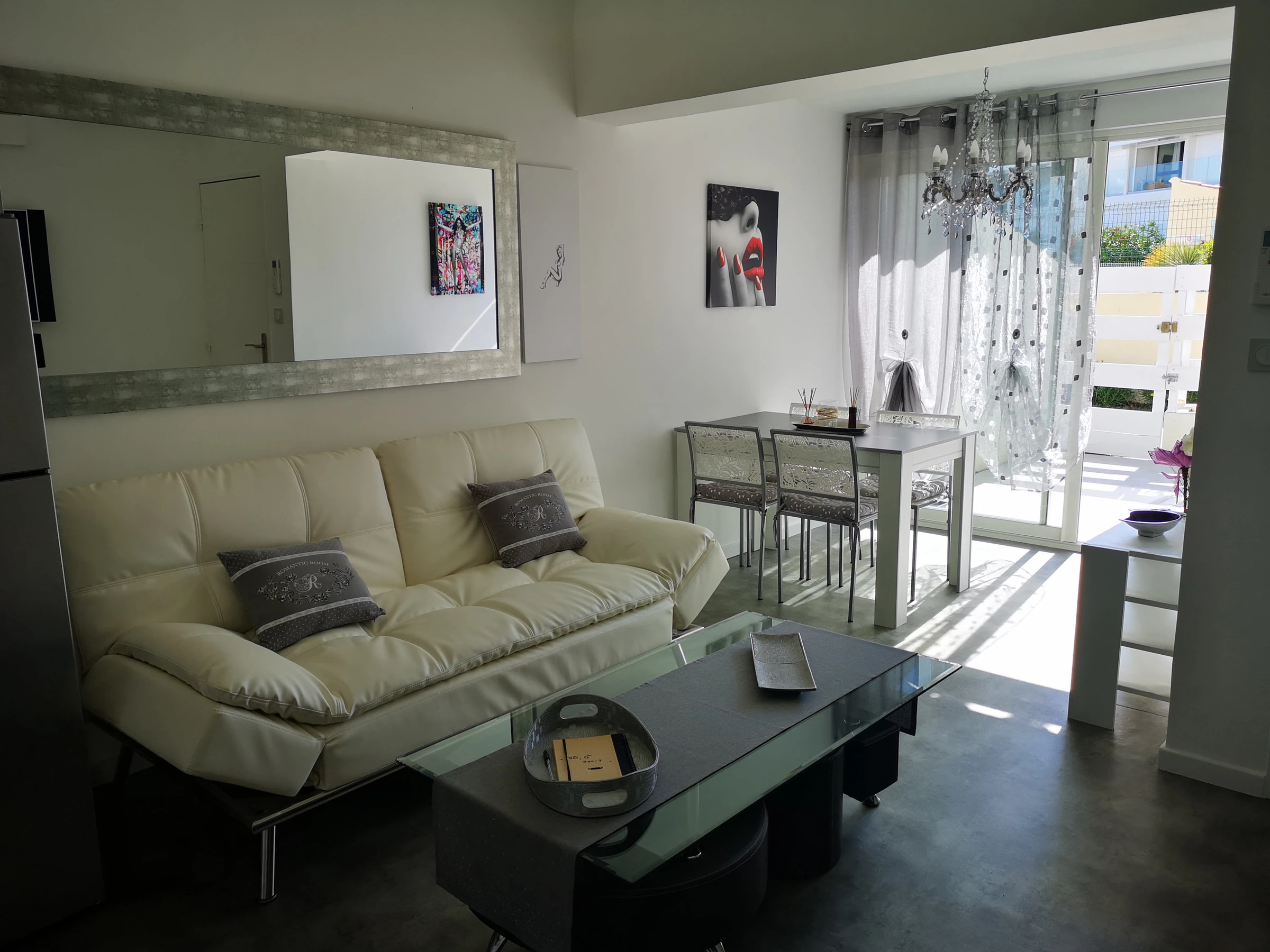 Appartamento climatizzato per 2 persone, situato Residence Port Soleil B2 con piscina. Al piano terra, vicino alla piscina. Soggiorno con angolo cottura attrezzato: Nespresso, lavastoviglie, lavatrice, forno a microonde... 1 camera con letto matrimoniale 160 cm. Bagno con doccia e wc separato. Terrazza. Il parcheggio custodito del residence è a vostra disposizione secondo disponibilità.