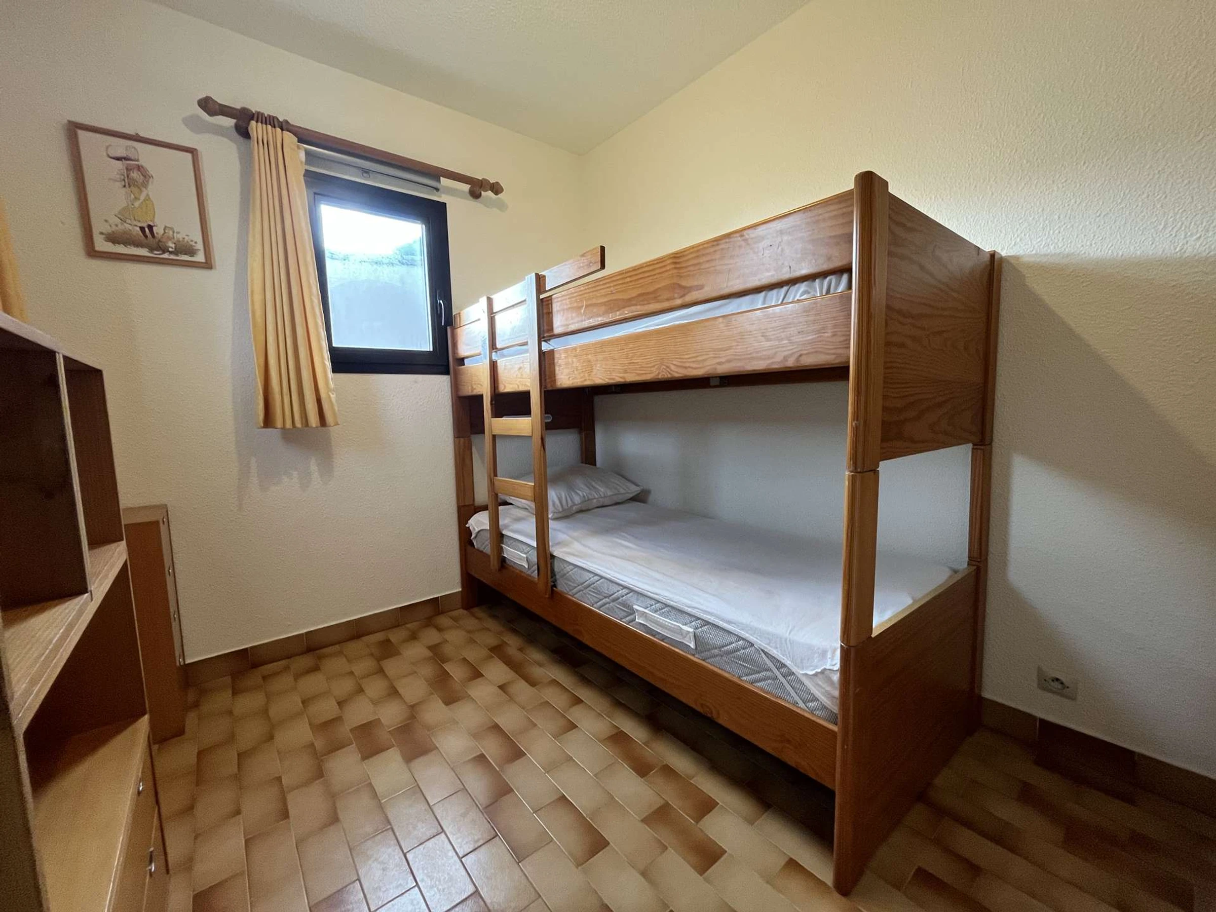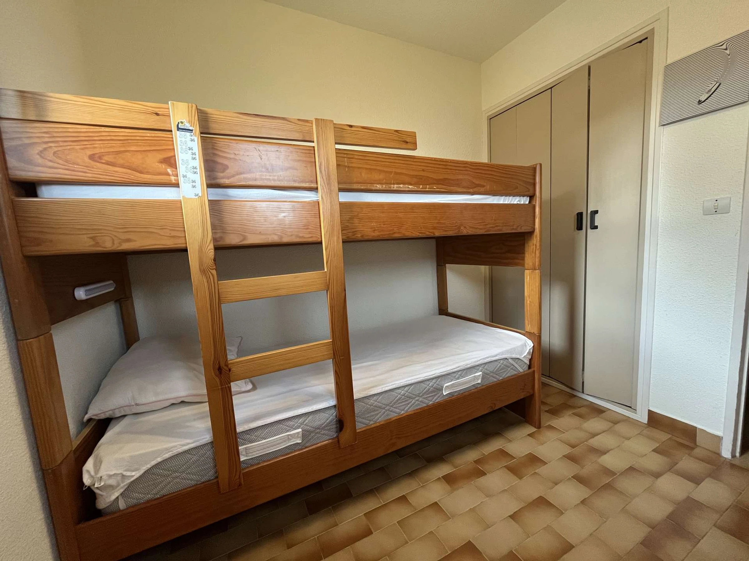 Diese am Meer gelegene Mietwohnung im ersten Stock verfügt über ein Wohnzimmer mit Ausziehbett, ein Schlafzimmer mit einem 140 cm breiten Bett, ein Schlafzimmer mit einem Etagenbett, einen ausgestatteten Küchenbereich sowie ein Badezimmer und eine separate Toilette.