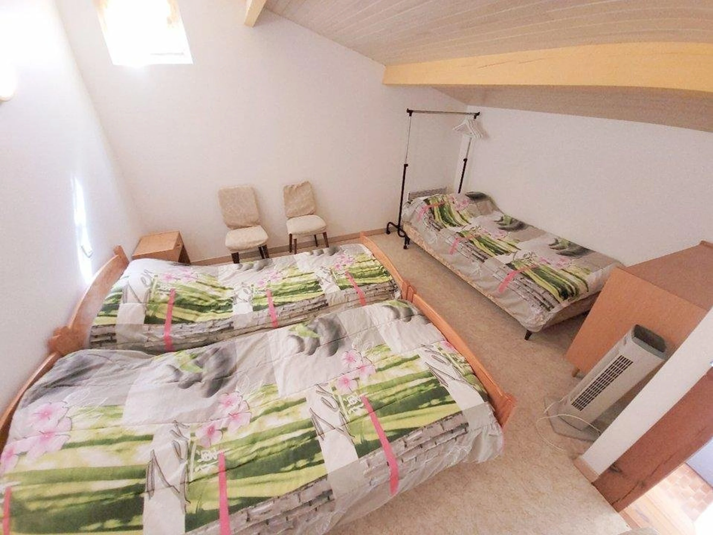 Schlafzimmer 2 ist eine Galerie mit 3 Einzelbetten (90 cm).