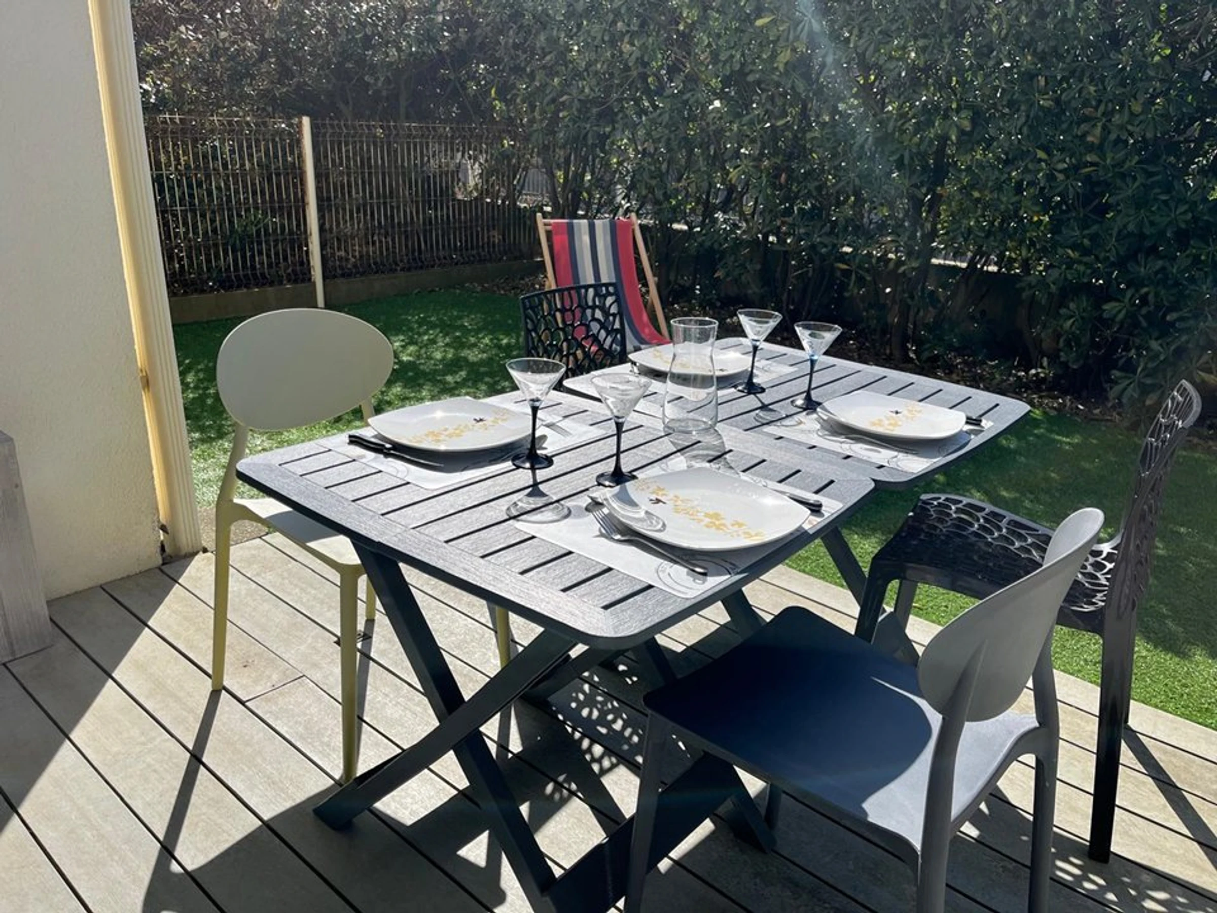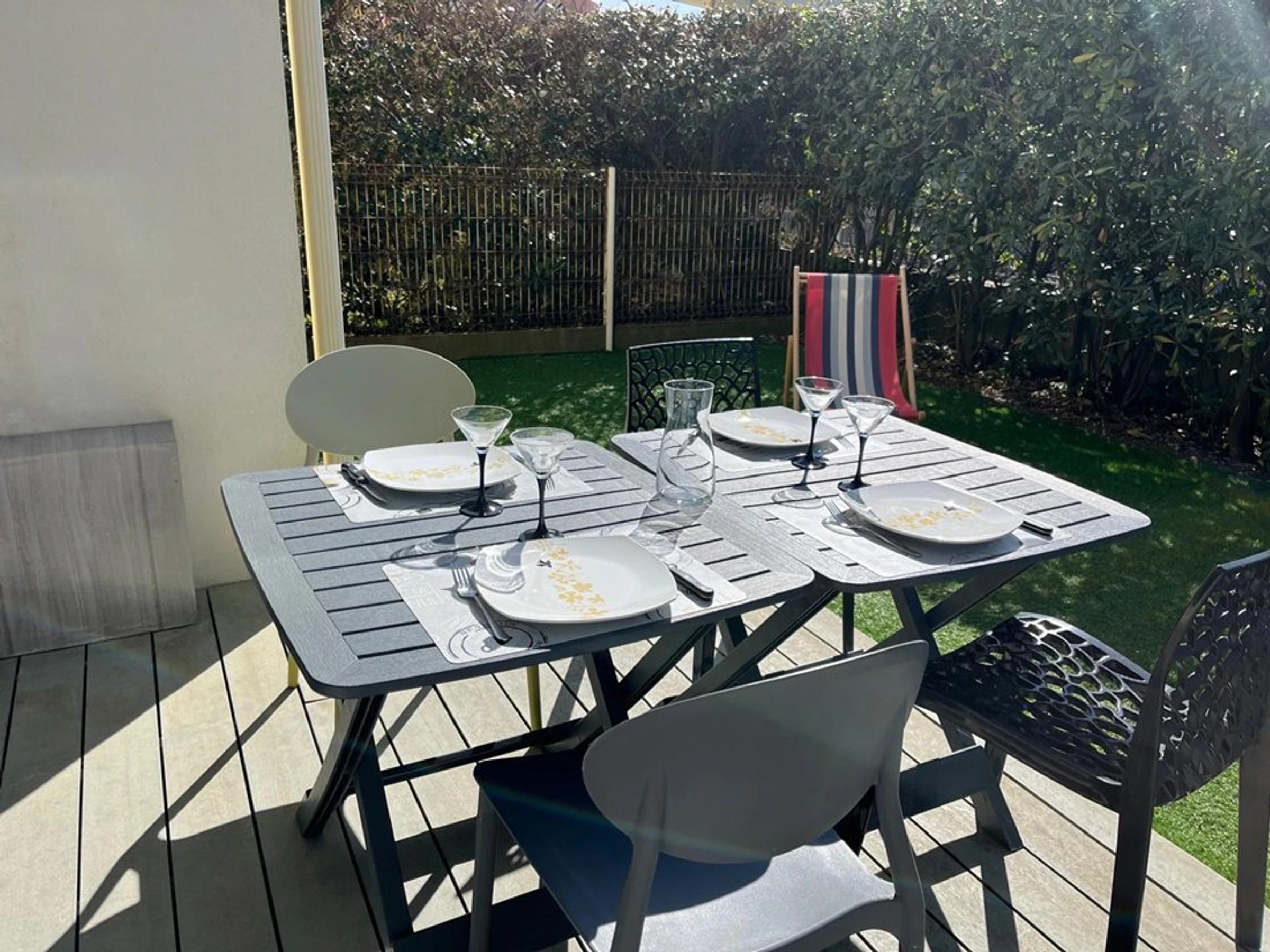 Zur Unterkunft gehört eine private Terrasse mit Esstisch und 4 Stühlen.