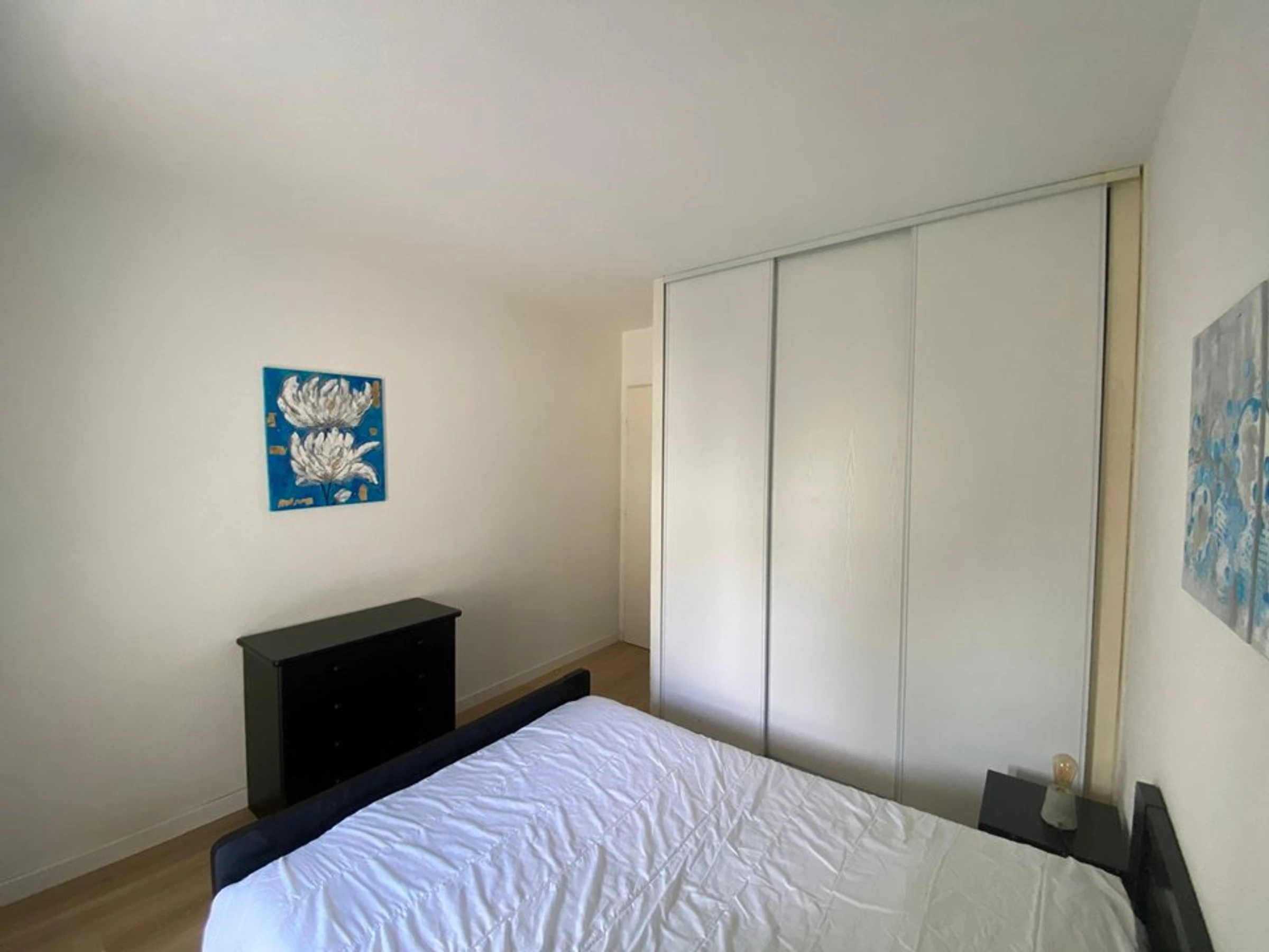 - ein Schlafzimmer mit einem 140 cm breiten Doppelbett und Schränken