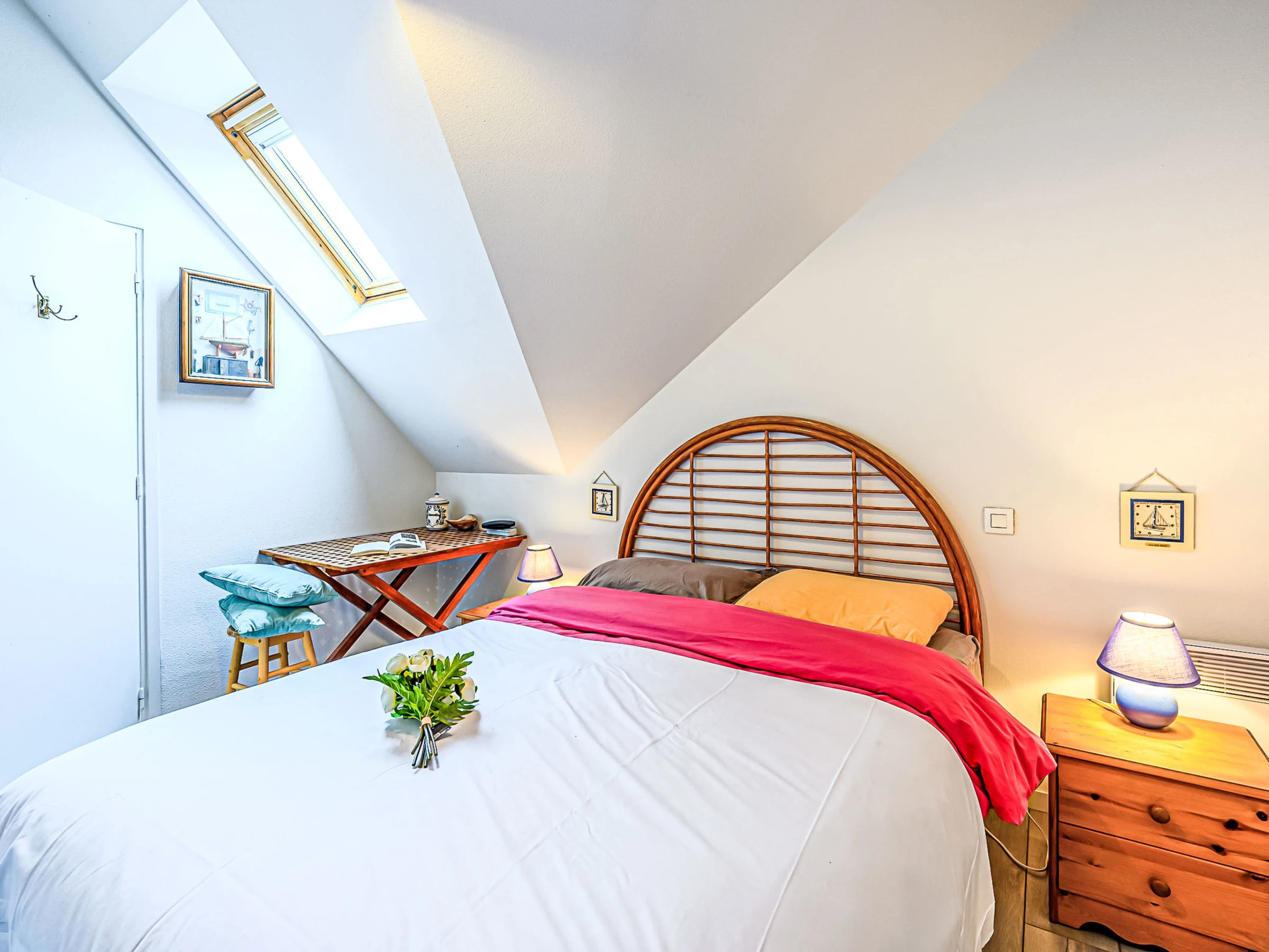 "Clair de lune", 3-Zimmer-Wohnung 40 m2 im 1. Stock. Komfortabel eingerichtet: Wohn-/Esszimmer mit 1 Doppeldiwanbett (140 cm, Länge 190 cm), TV (Flachbildschirm). Ausgang zum Balkon. Kleine Küche (4 Kochplatten, Backofen, Geschirrspüler, Toaster, Wasserkocher, Mikrowelle, elektrische Kaffeemaschine). Dusche, sep. WC. Obergeschoss: 1 Zimmer mit 1 Bett (140 cm, Länge 190 cm). 1 Zimmer mit 1 Ausziehbett (2 Pers. 2 x 90 cm, Länge 190 cm), Waschbecken. Balkon 5 m2, Südlage. Balkonmöbel. Zur Verfügung: Waschmaschine, Haartrockner. Internet (WLAN, gratis). Parkplatz Nr. 14. Inserat einer Privatperson nach Artikel 155, IV, CGI. [hidden]