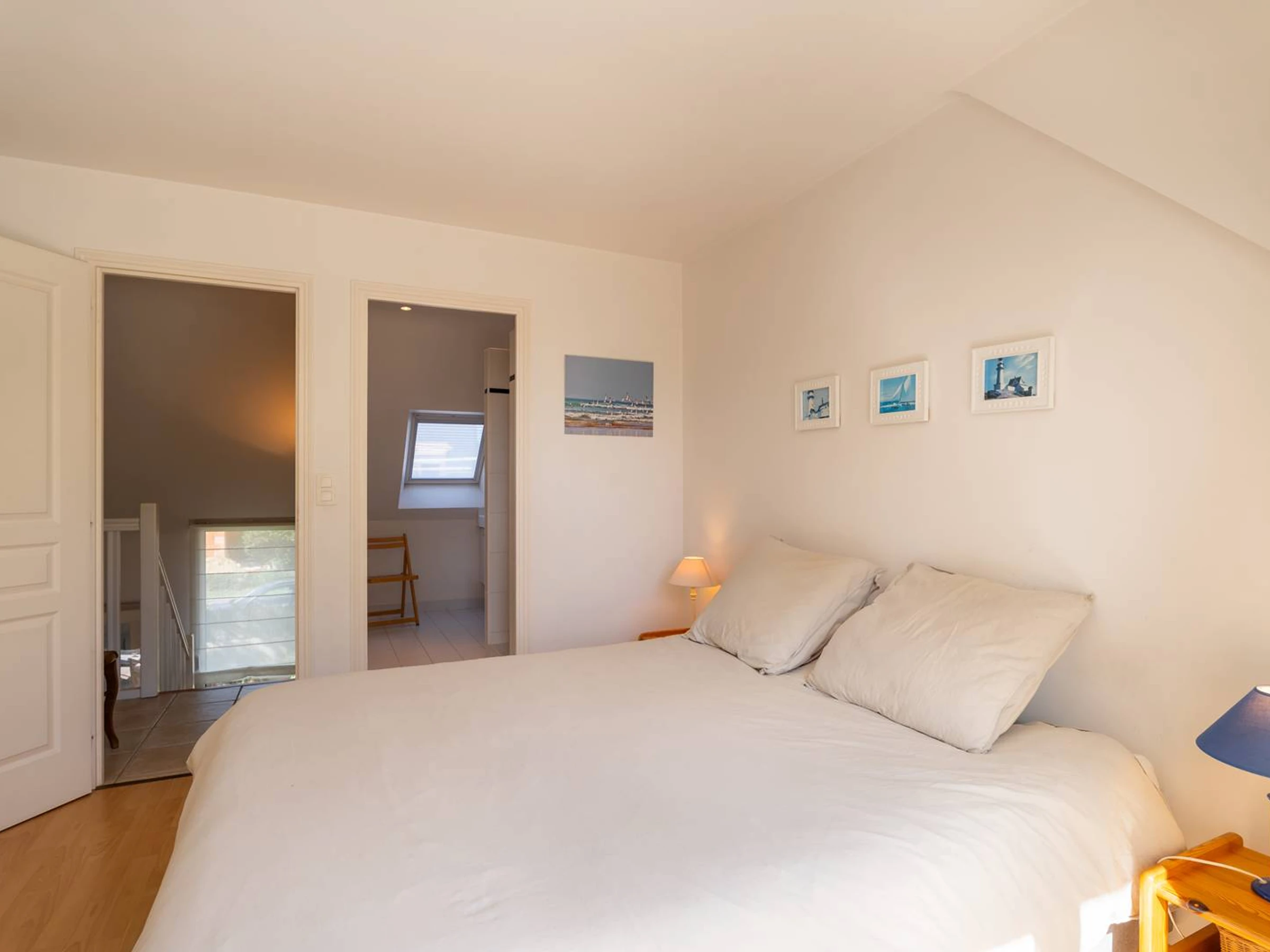 - 1 Master-Suite mit 1 Doppelbett Bett (1 Matratze 160 cm auf 2 Lattenrosten 80 cm, Bettdecke), eigenes Duschbad und Balkon, Abstellraum