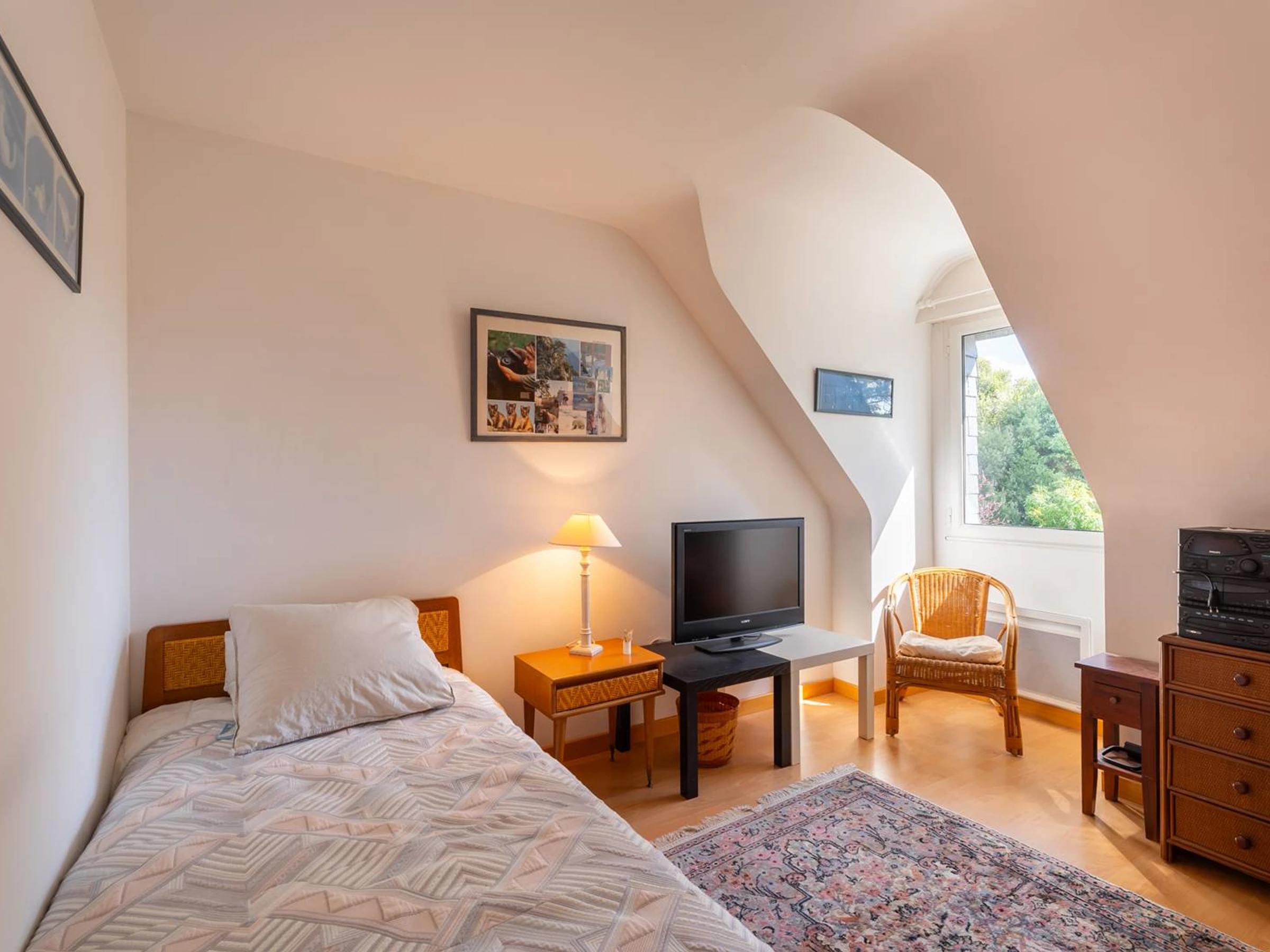- 1 Schlafzimmer mit 1 Einzelbett (90 cm, Bettdecke) und Abstellraum