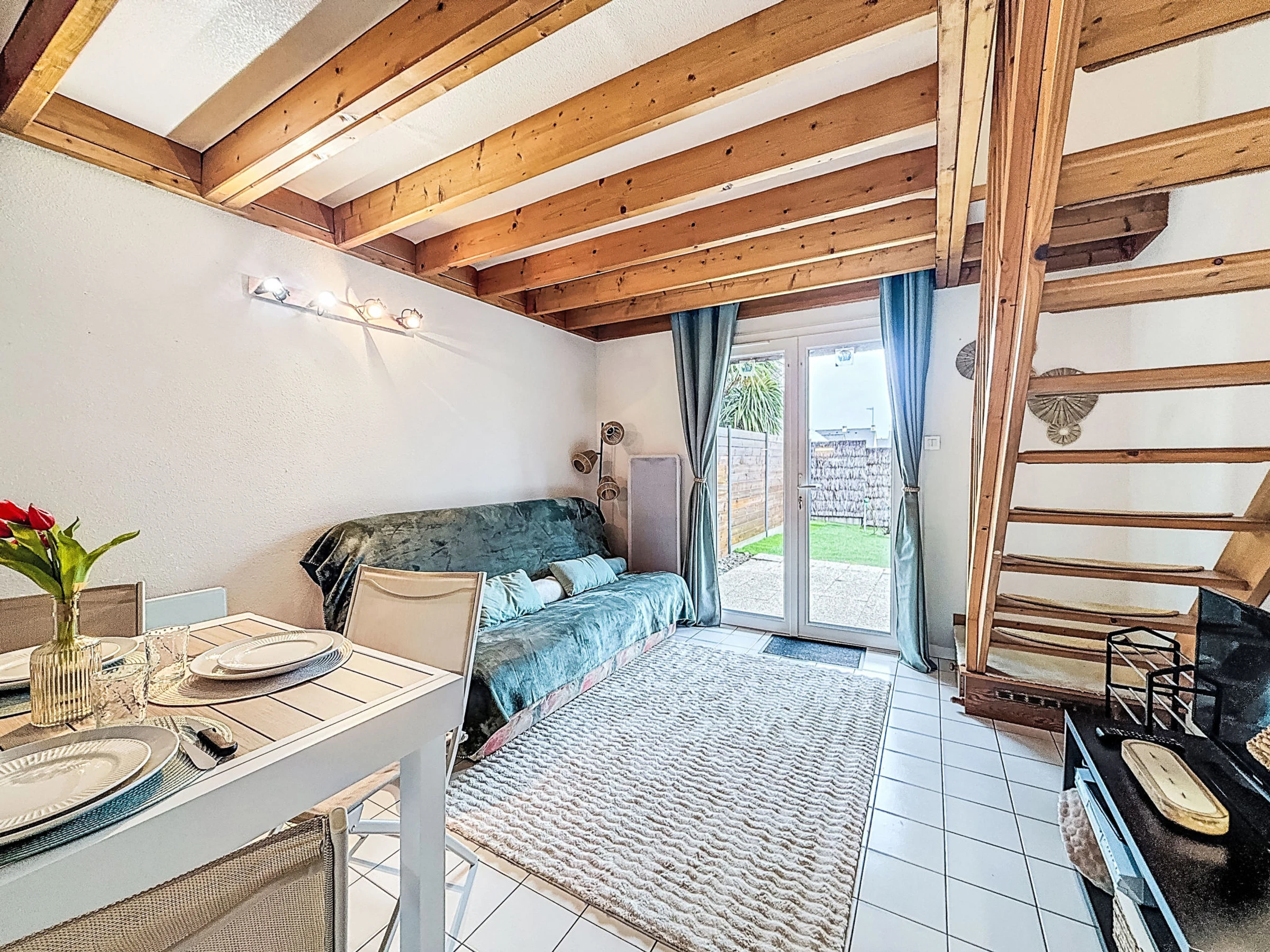 3-Zimmer-Doppelhaushälfte 45 m2. Komfortabel eingerichtet: Wohn-/Esszimmer mit 1 Doppeldiwanbett (1 x 140 cm, Länge 190 cm), TV (Flachbildschirm). Ausgang zur Terrasse. Kochnische (Mini-Backofen, Backofen, Geschirrspüler, 3 Induktionskochplatten, Toaster, Wasserkocher, Mikrowelle, elektrische Kaffeemaschine). Sep. WC. Obergeschoss: 2 Zimmer, jedes Zimmer mit 1 franz. Bett (1 x 140 cm, Länge 190 cm). Bad. Terrasse 15 m2, Südlage und Westlage. Terrassenmöbel, Elektrogrill, Liegestühle (2). Zur Verfügung: Waschmaschine, Haartrockner. Internet (WLAN, extra). Parkplatz (2 Autos). Bitte beachten: 1 Haustier/Hund erlaubt. Rauchmelder. Inserat einer Privatperson nach Artikel 155, IV, CGI. [hidden]