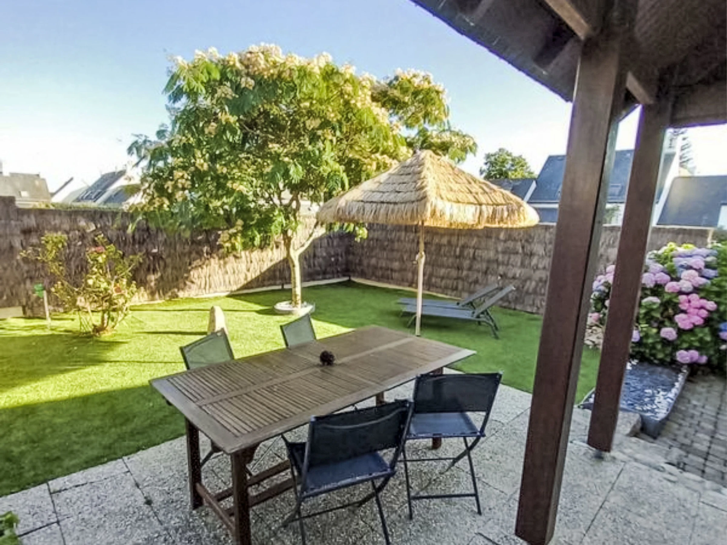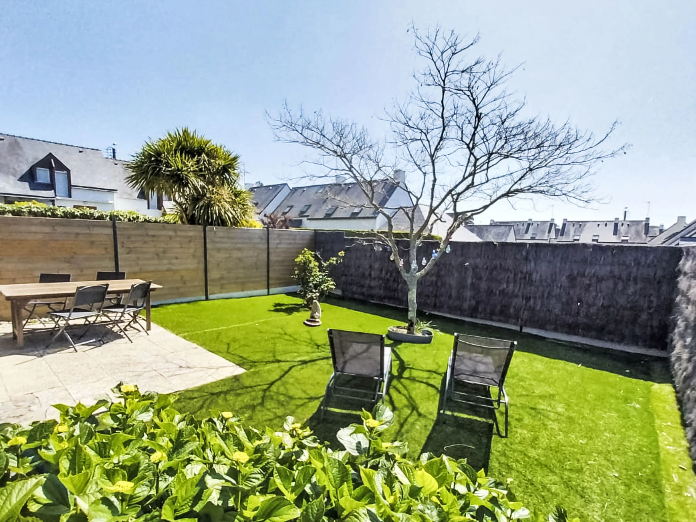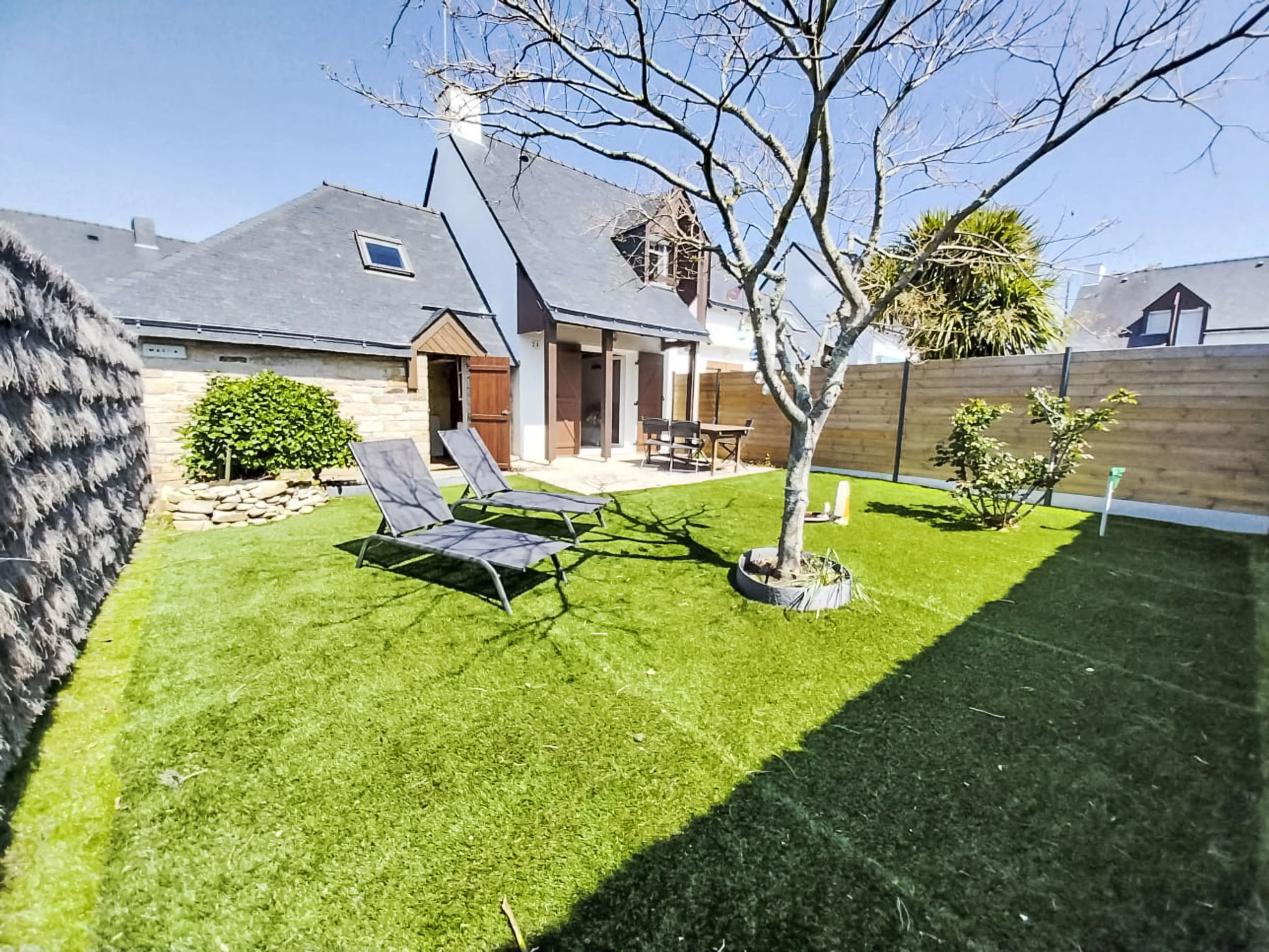 Reihenhaus "Maison de la Plage". Im Ort, 1.5 km vom Zentrum, ruhige Lage in einem Wohnquartier, 200 m vom Meer. Zur Alleinbenutzung: Garten (eingezäunt). Einkaufsgeschäft 2 km, Supermarkt 1 km, Restaurant 2 km. Golfplatz (18 Loch) 15 km, Segelschule 2 km. Nahe gelegene Sehenswürdigkeiten: Alignements de Carnac 3.5 km, Presqu'île de Quiberon 15 km, La Trinité-sur-Mer 4 km, Vannes 33 km.