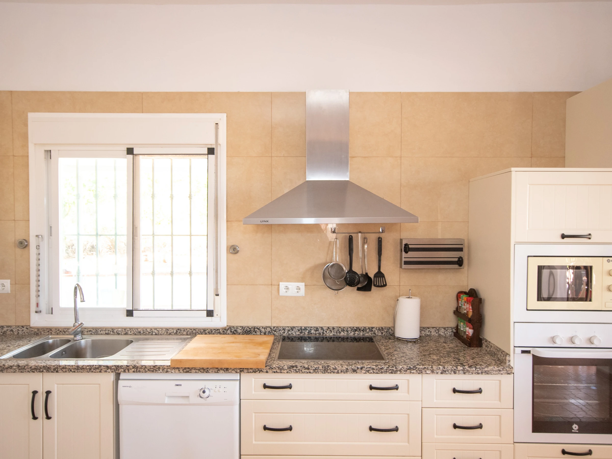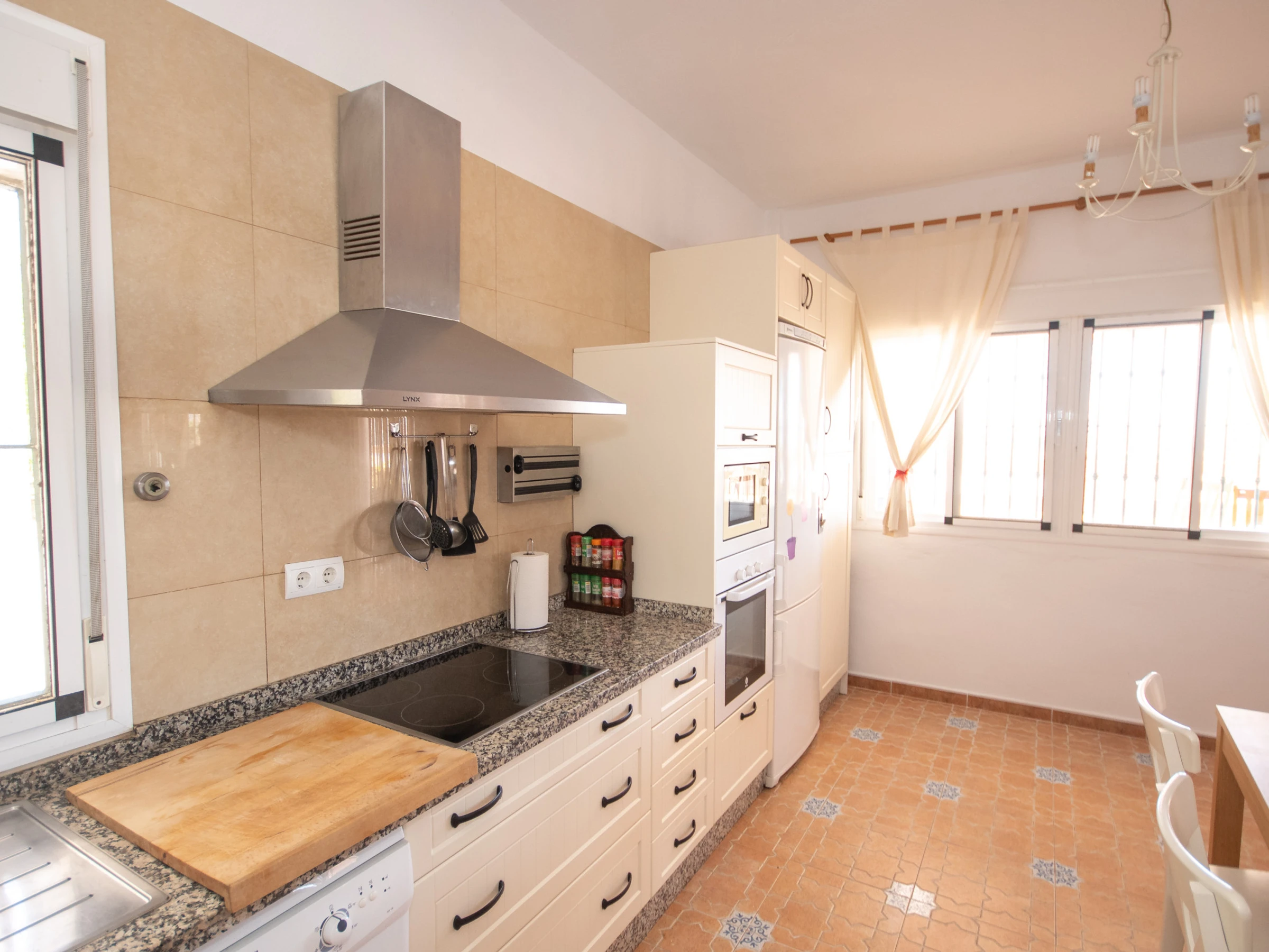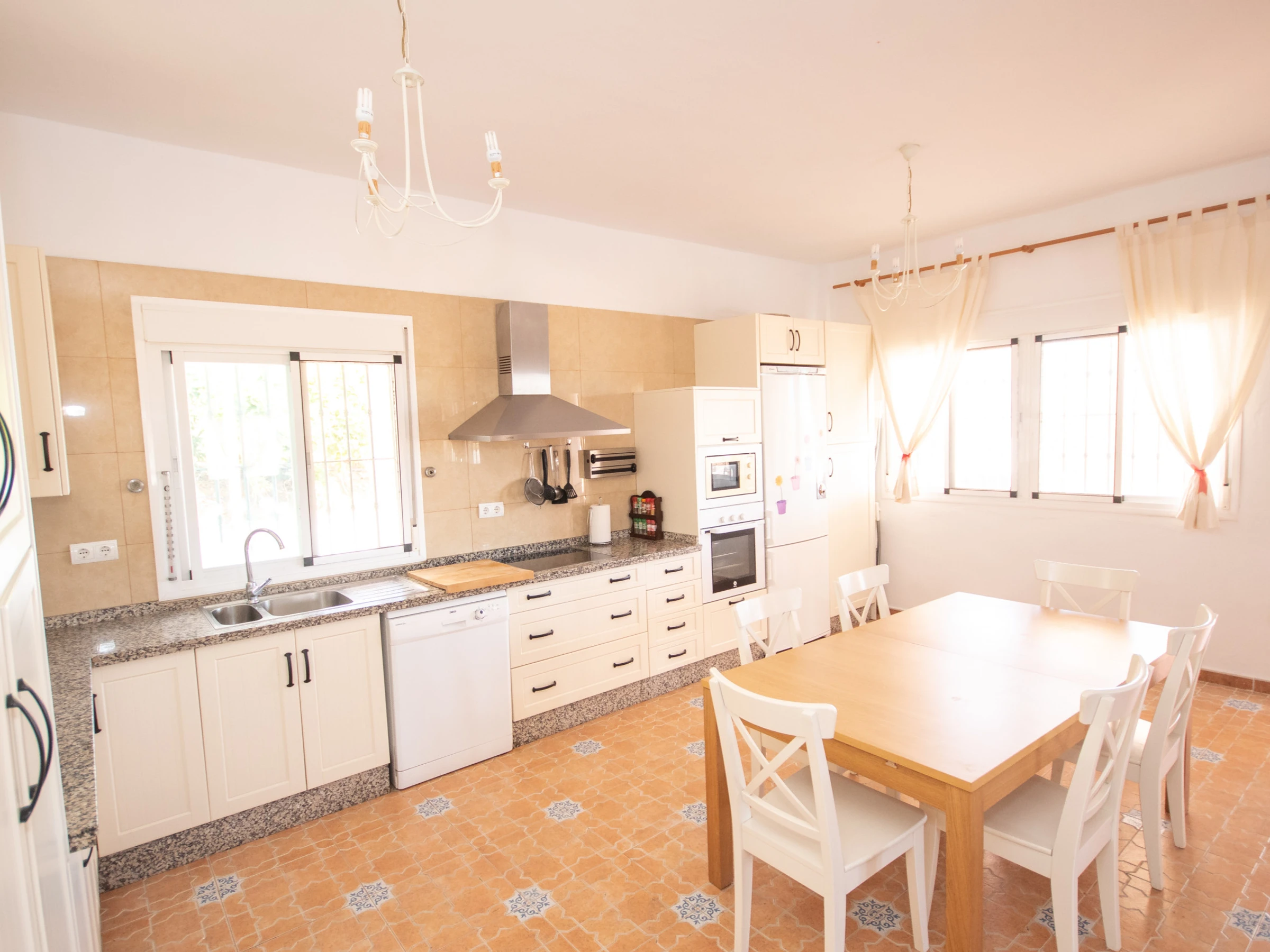 Im Inneren sorgt der klimatisierte Salon mit Klimaanlage und Kamin für Komfort zu jeder Jahreszeit. Die offene Küche ist komplett ausgestattet mit allen notwendigen Haushaltsgeräten: Kühlschrank, Gefrierschrank, Backofen, Mikrowelle, Entsafter, Kaffeemaschine, Fritteuse, Toaster und Geschirrspüler, zusätzlich verfügt sie über eine Waschmaschine für noch mehr Bequemlichkeit. Alle Fenster sind mit Fliegengittern geschützt, und die Villa ist vollständig eingezäunt für mehr Privatsphäre und Sicherheit.