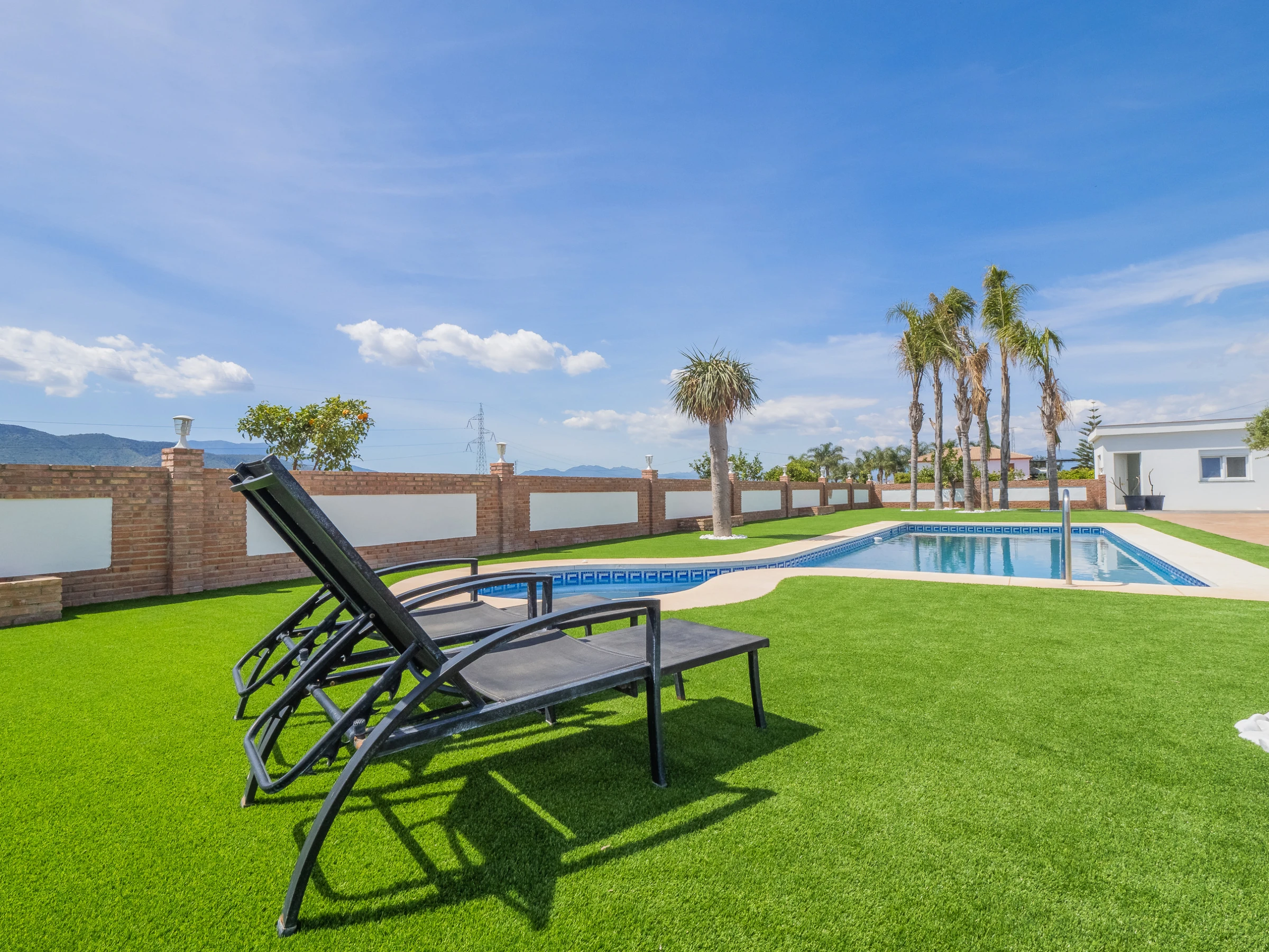 Der Außenbereich der Villa wird Sie mit einem weitläufigen Garten und einem privaten Swimmingpool von ungefähr 9 x 3,5 Metern überraschen, umgeben von Sonnenliegen und Sonnenschirmen für eine vollständige Erholung unter der Sonne. Die große überdachte Terrasse verfügt über mehrere Bereiche zum Entspannen, einschließlich einer Schaukelcouch, eines Picknicktisches und eines Grills, um köstliche Mahlzeiten im Freien zu genießen. Die Kinder haben ihren eigenen Bereich mit einem Tischfußball und einer Basketballzone, um sich ununterbrochen zu amüsieren.