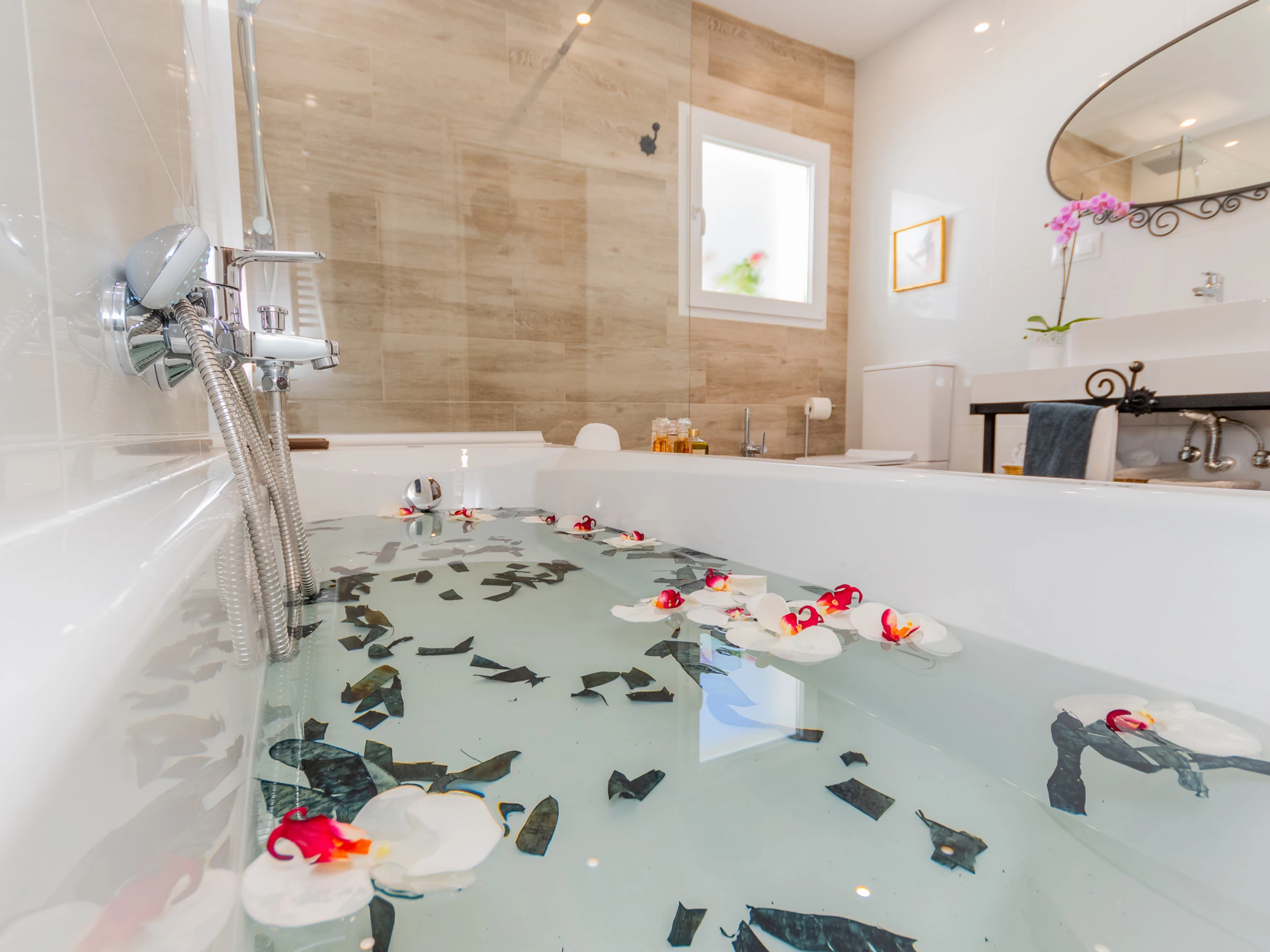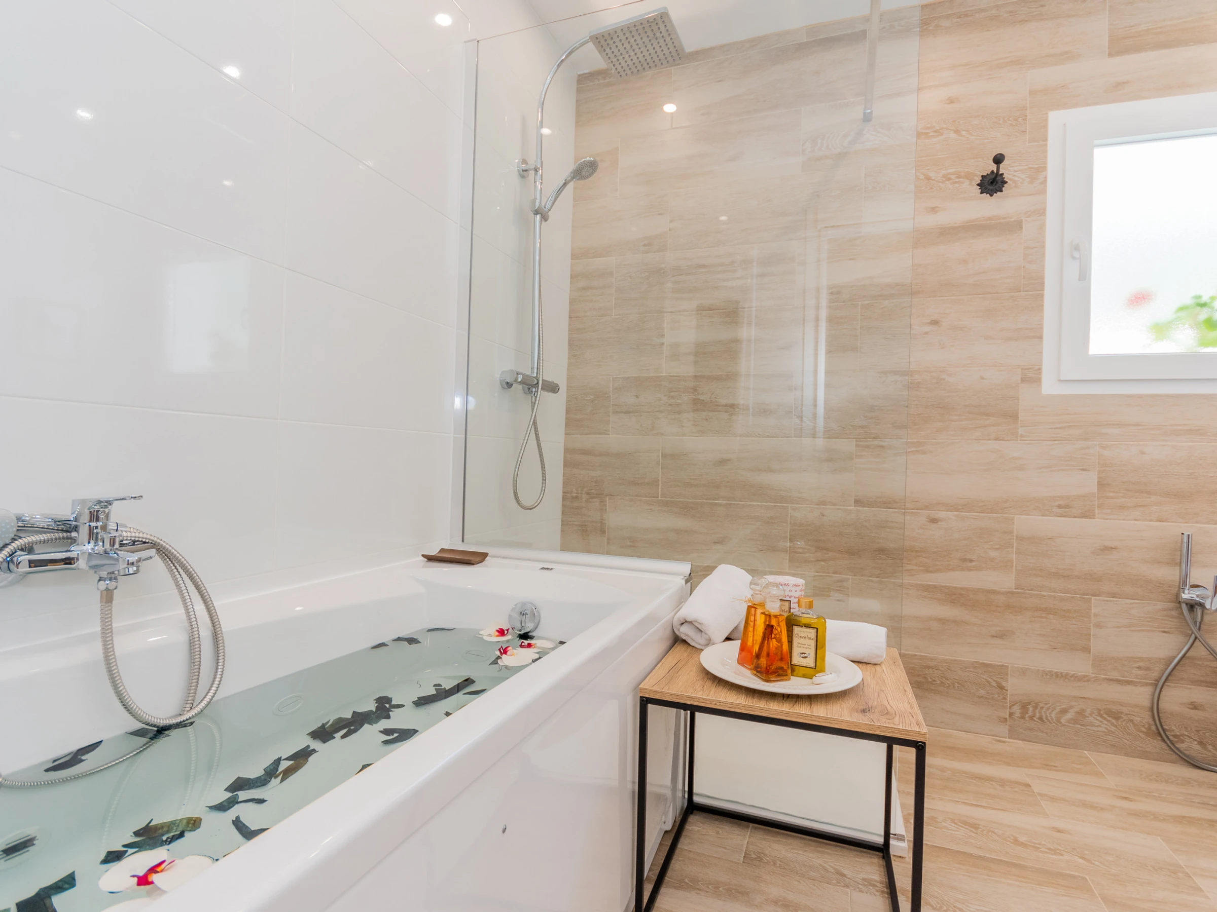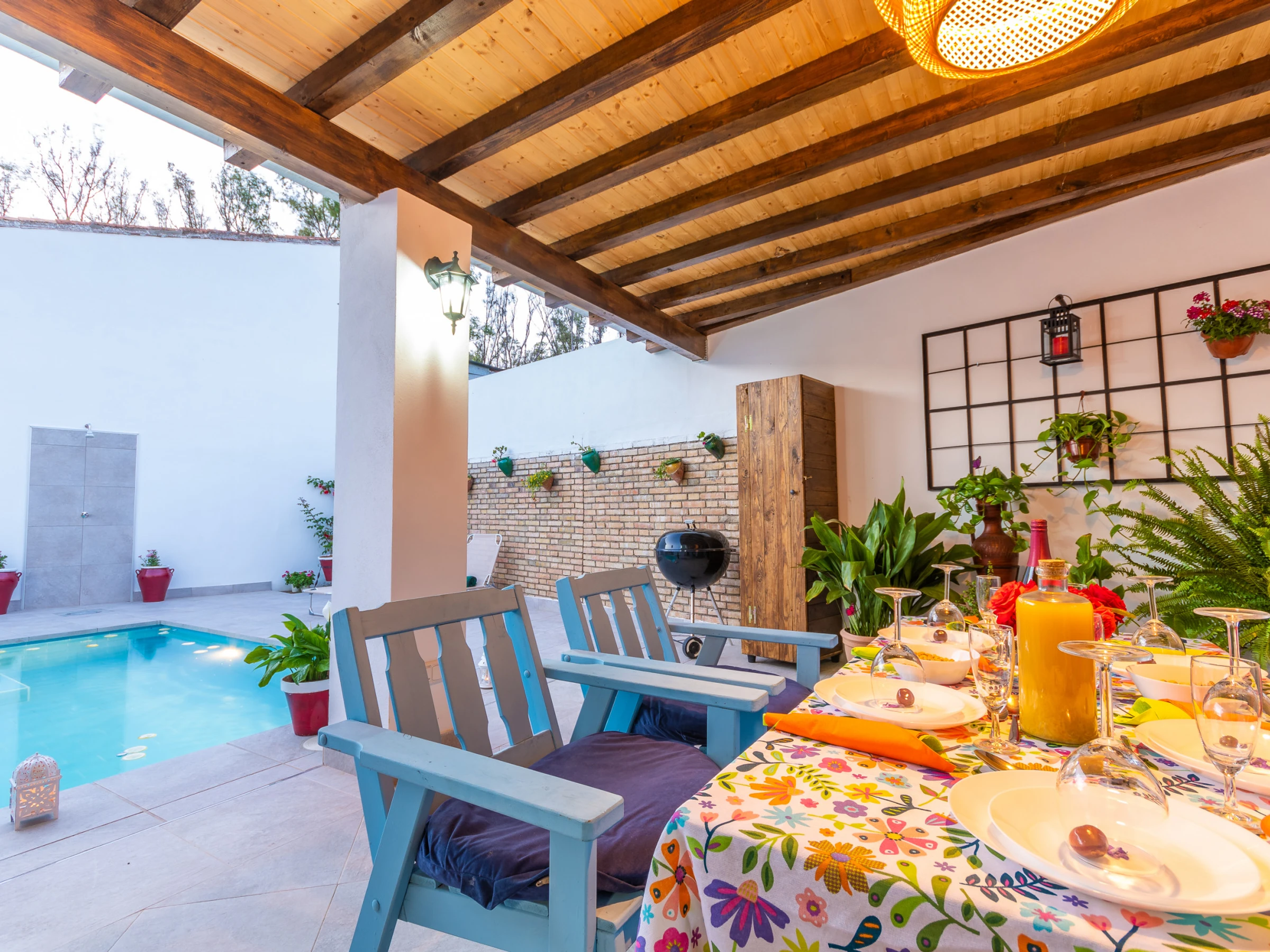 Der Außenbereich ist einer seiner großen Attraktionen: eine überdachte Veranda mit direktem Blick auf den privaten Pool (2,5 x 4,5 m), wo Sie die Sonne genießen und auf Sonnenliegen entspannen können, während die Kinder im Wasser Spaß haben. 🌞🏊♂️