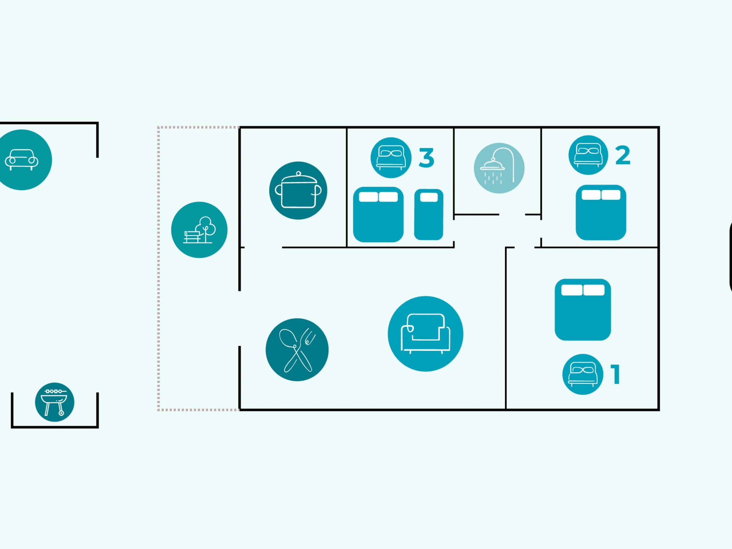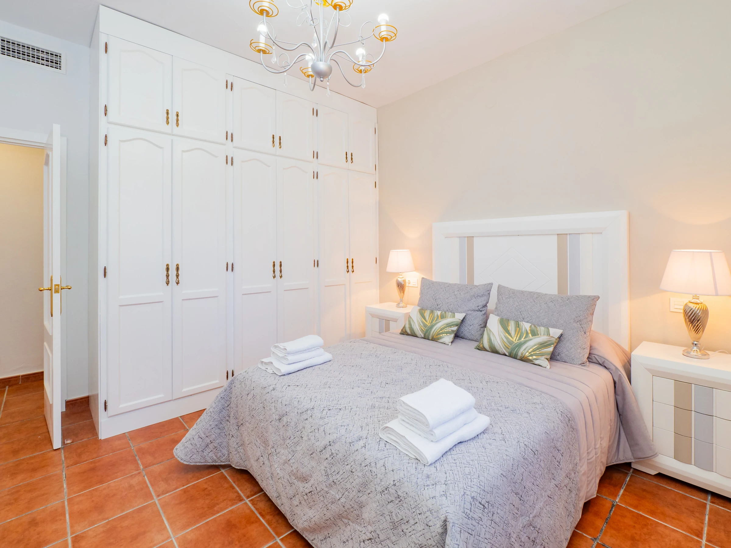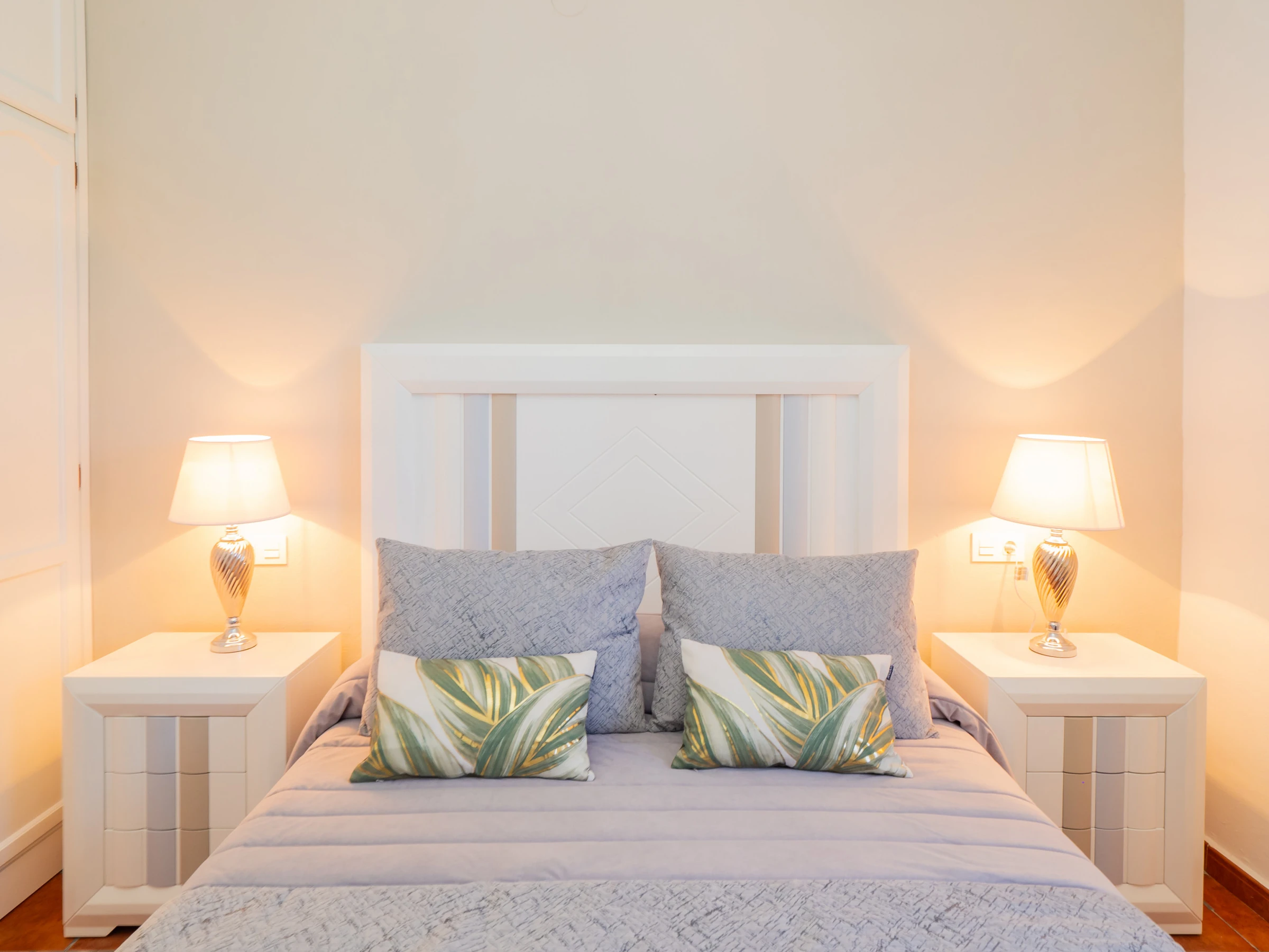 Die drei Schlafzimmer verfügen über Außenfenster, ausreichenden Stauraum und eine zentrale Klimaanlage (ein einziges System für die gesamte Unterkunft). Zwei Schlafzimmer haben Doppelbetten, während das dritte ein dreistöckiges Etagenbett hat, mit einem Doppelbett im unteren Bereich und einem Einzelbett oben, das leicht zugänglich und bequem ist. Das Badezimmer ist geräumig, verfügt über eine Dusche und befindet sich im Gemeinschaftsbereich für einfachen Zugang.