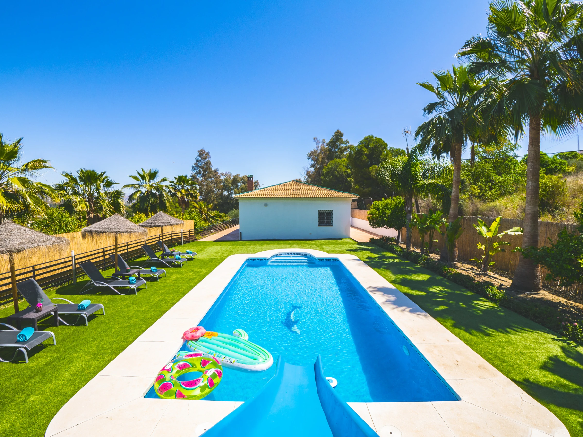 Diese charmante Landhaus in Cártama ist so konzipiert, dass es bequem bis zu 6 Personen beherbergen kann und bietet definierte Räume, um mit der Familie zu genießen, mit sorgfältiger Dekoration und zentraler Klimaanlage für Ihren Komfort. Ihr großer Swimmingpool mit künstlichem Rasen, Sonnenliegen und festen Sonnenschirmen lädt zur Entspannung und Unterhaltung ein, einschließlich einer Rutsche für Kinder über 10 Jahre, die unterhaltsame Momente garantiert. Der Zugang zum Pool erfolgt von außen, indem man die Haupttür zur Rückseite verlässt und dabei die Privatsphäre und Sicherheit der Unterkunft wahrt.