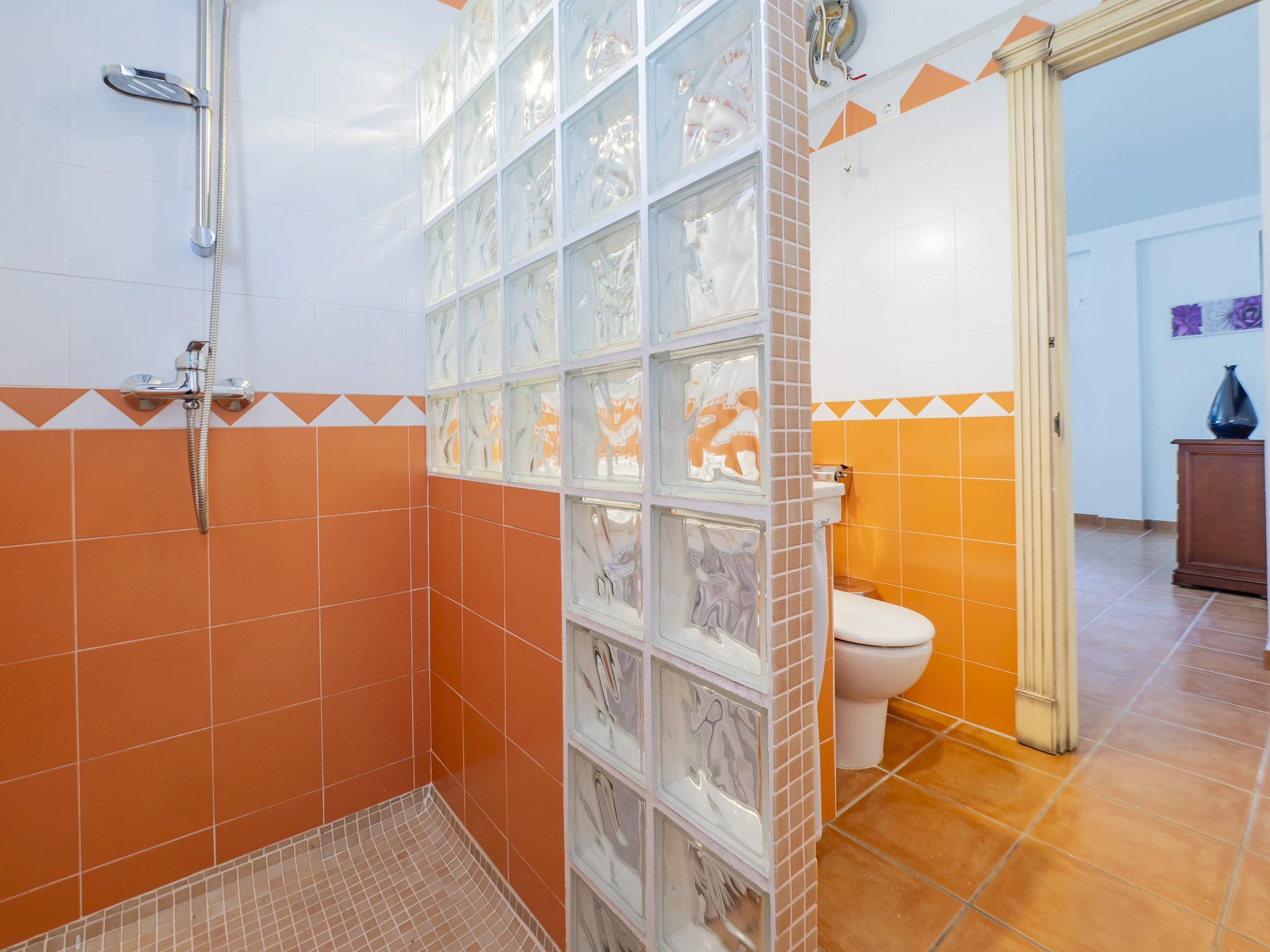 Das Haus verfügt über zwei Schlafzimmer: eines mit einem Doppelbett für zwei Personen und ein anderes mit drei Einzelbetten, beide mit Fenster nach außen, die natürliches Licht und Ausblick auf die Umgebung bieten. Zusätzlich verfügt es über ein vollständiges Badezimmer mit Dusche. 🛏️🚿