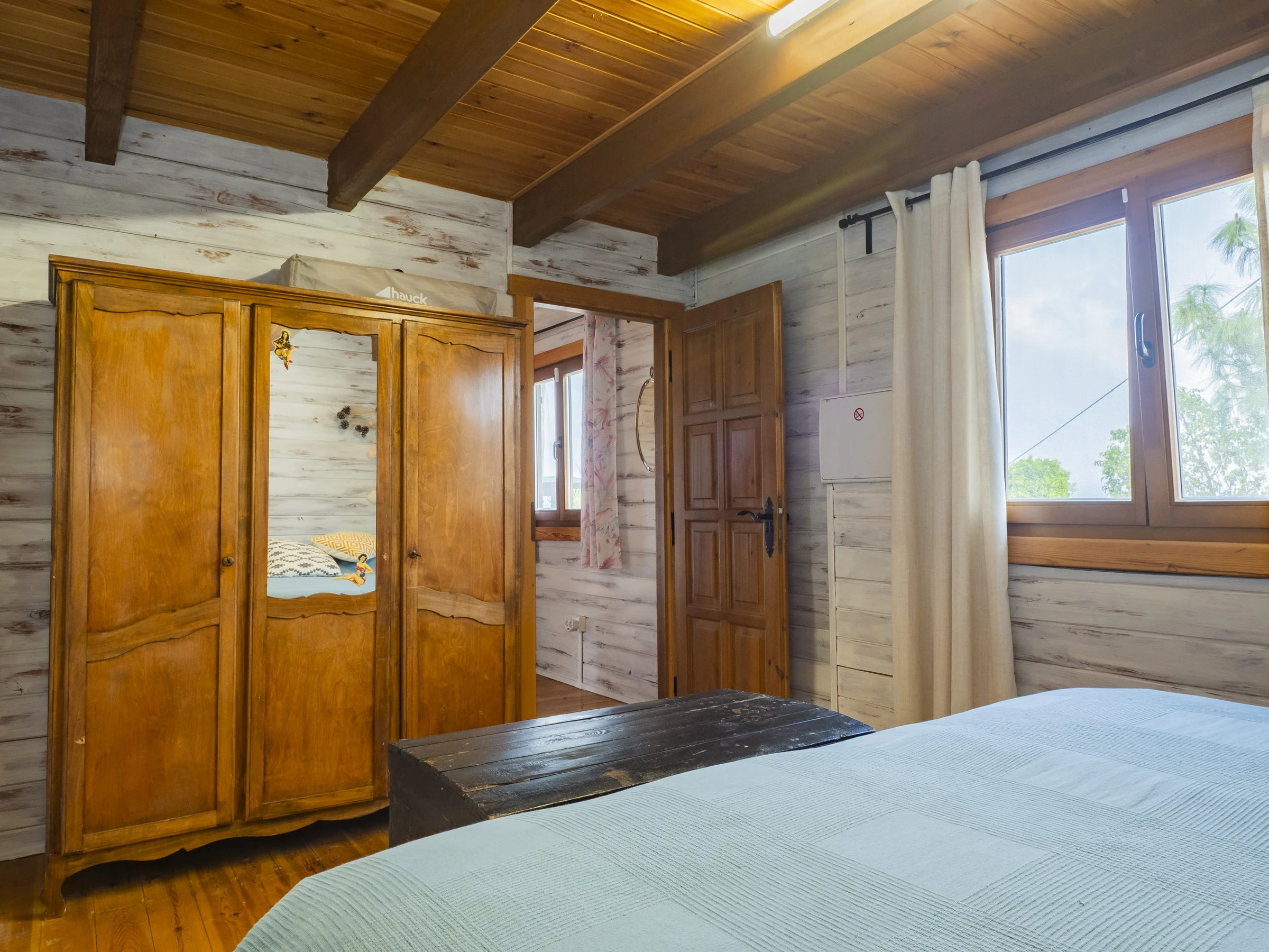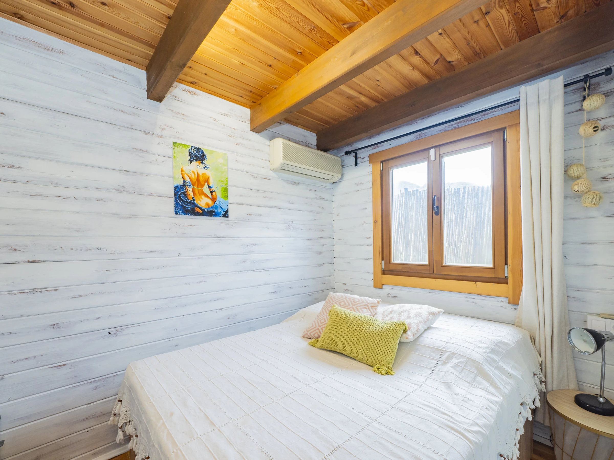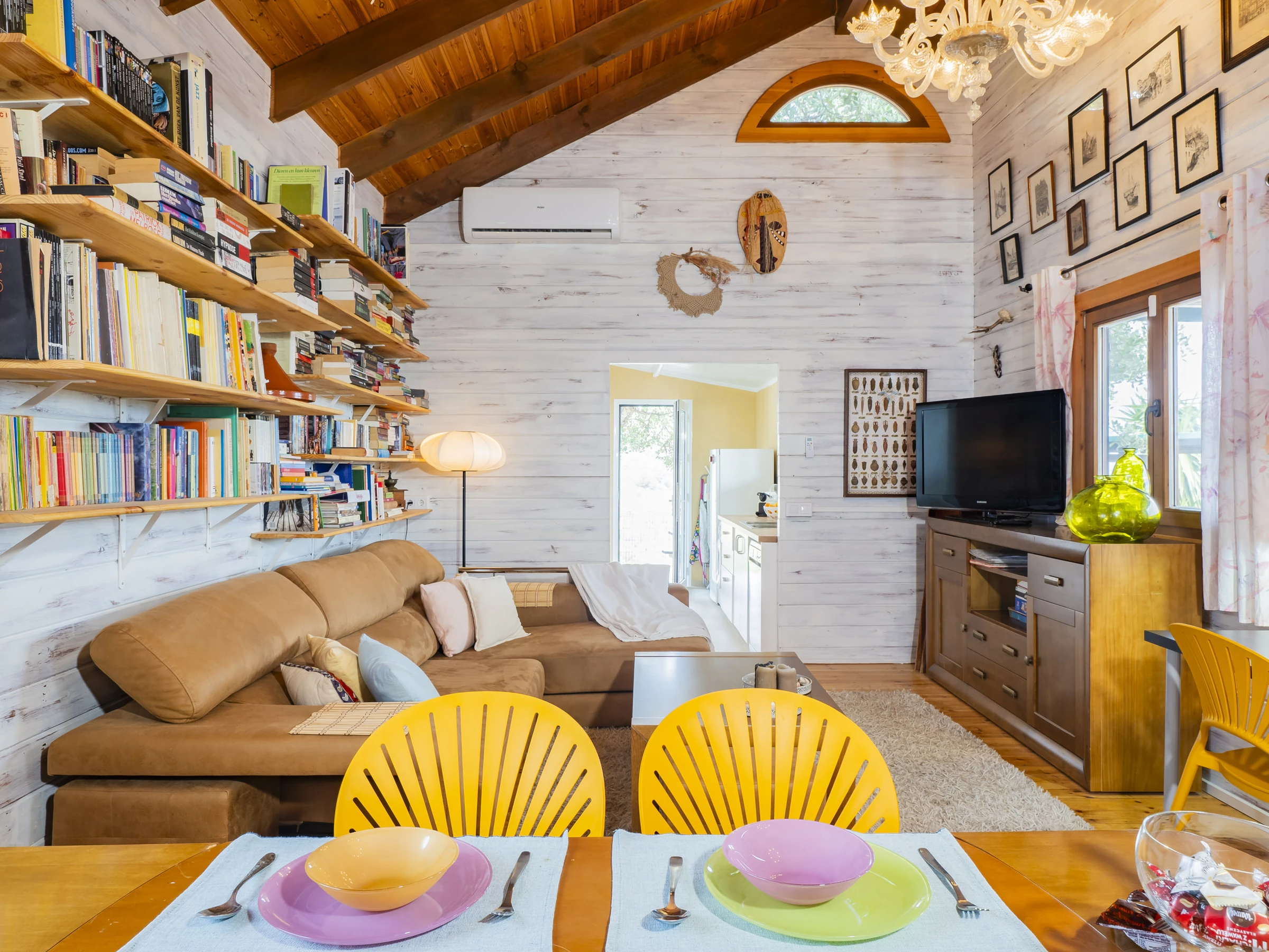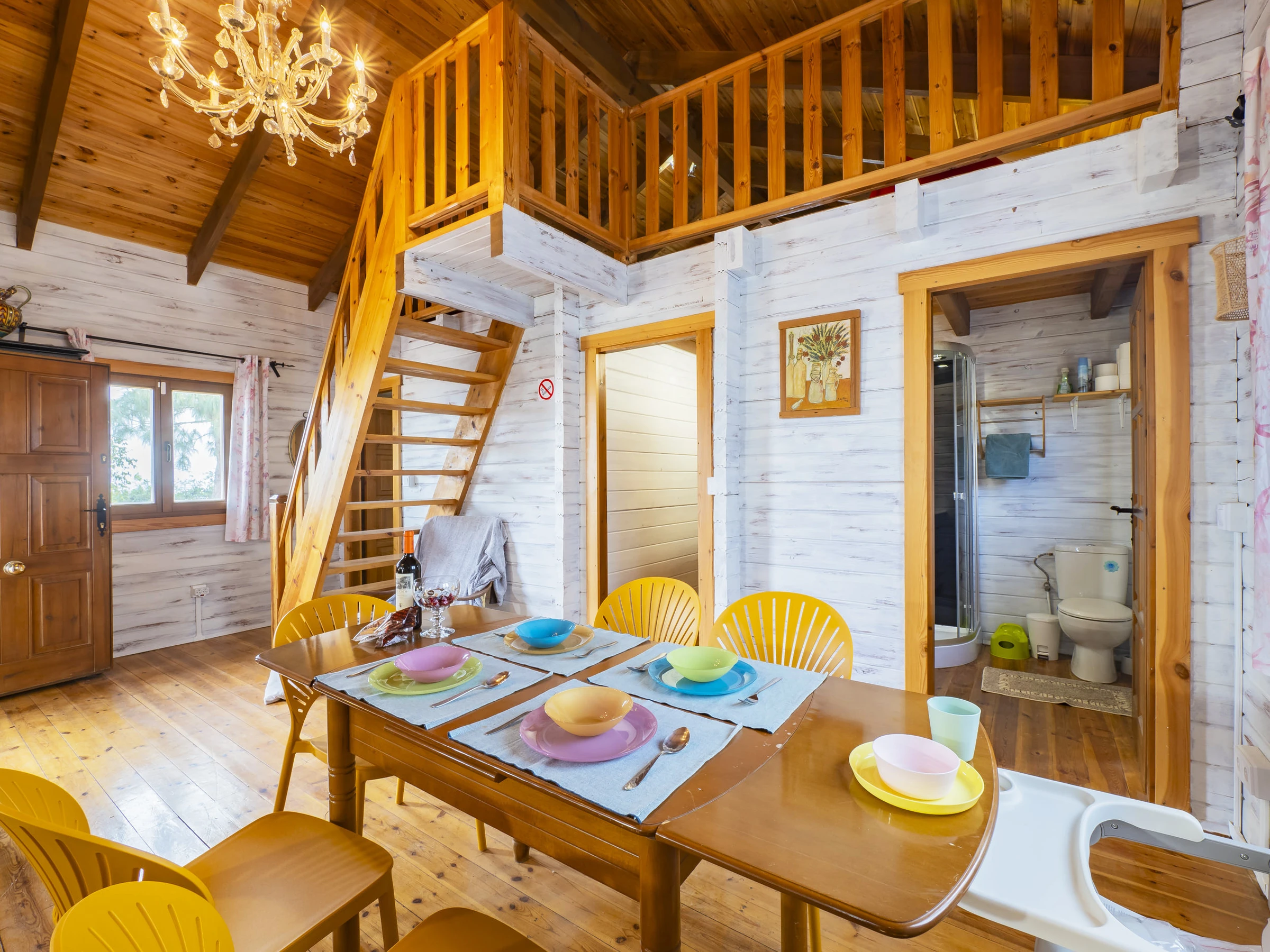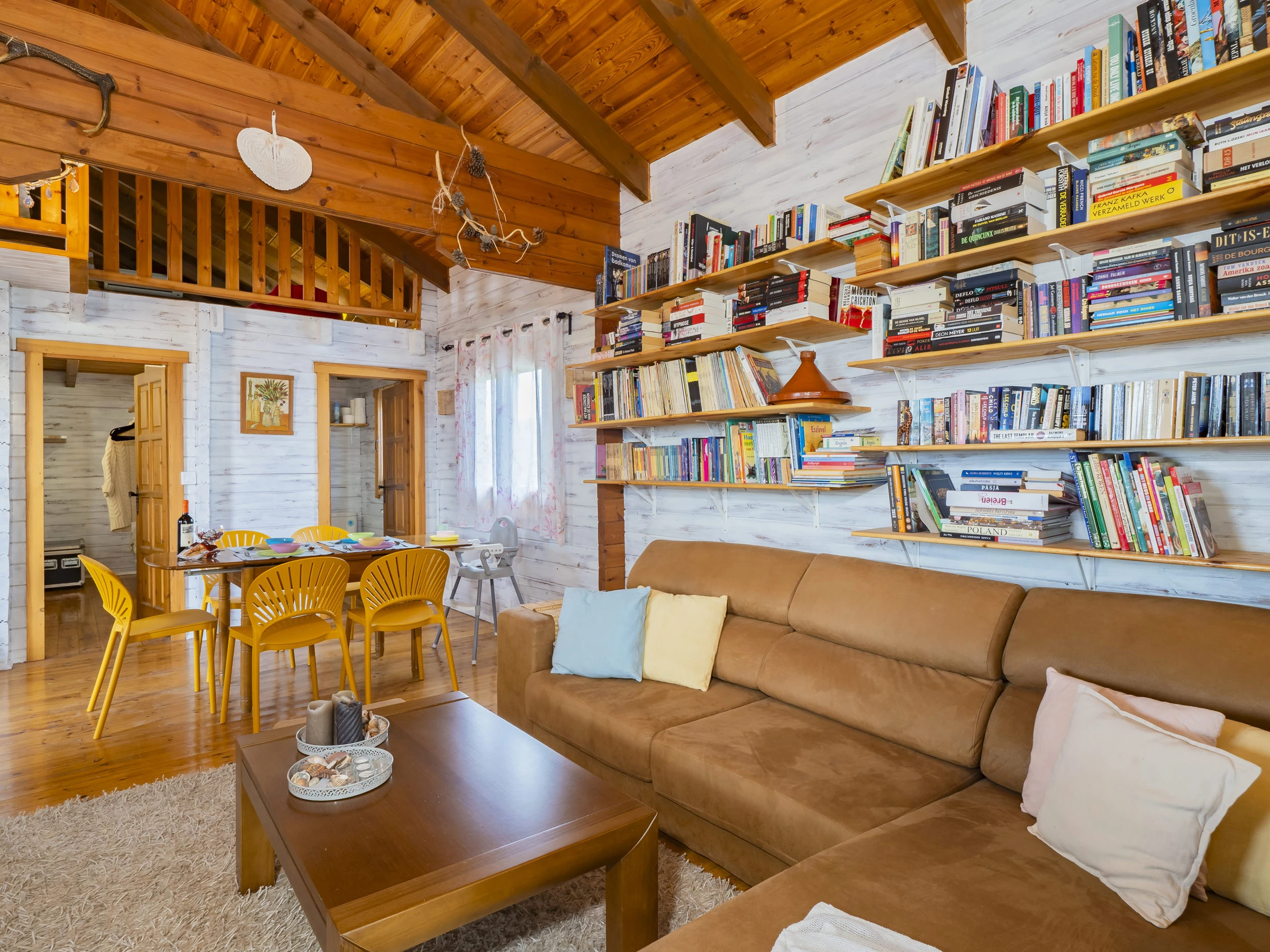 In ihren 80 m² verteilt auf zwei Etagen verfügt das Haus über drei Schlafzimmer für bis zu sechs Personen (obwohl die offizielle Kapazität für fünf Personen liegt), mit einem Doppelbett und einem Einzelbett in der oberen, dachgeschossartigen Etage, ideal für Kinder und Jugendliche, und zwei Schlafzimmern mit Doppelbett in der unteren Etage, neben einem geräumigen Wohn-Esszimmer und einer voll ausgestatteten Küche mit modernen Haushaltsgeräten (Kühlschrank, Mikrowelle, Ofen, Geschirrspüler, Kaffeemaschine, Toaster und mehr). Die feste Holztreppe, die zur oberen Etage führt, ist aufgrund ihrer Neigung nicht für sehr kleine Kinder geeignet.