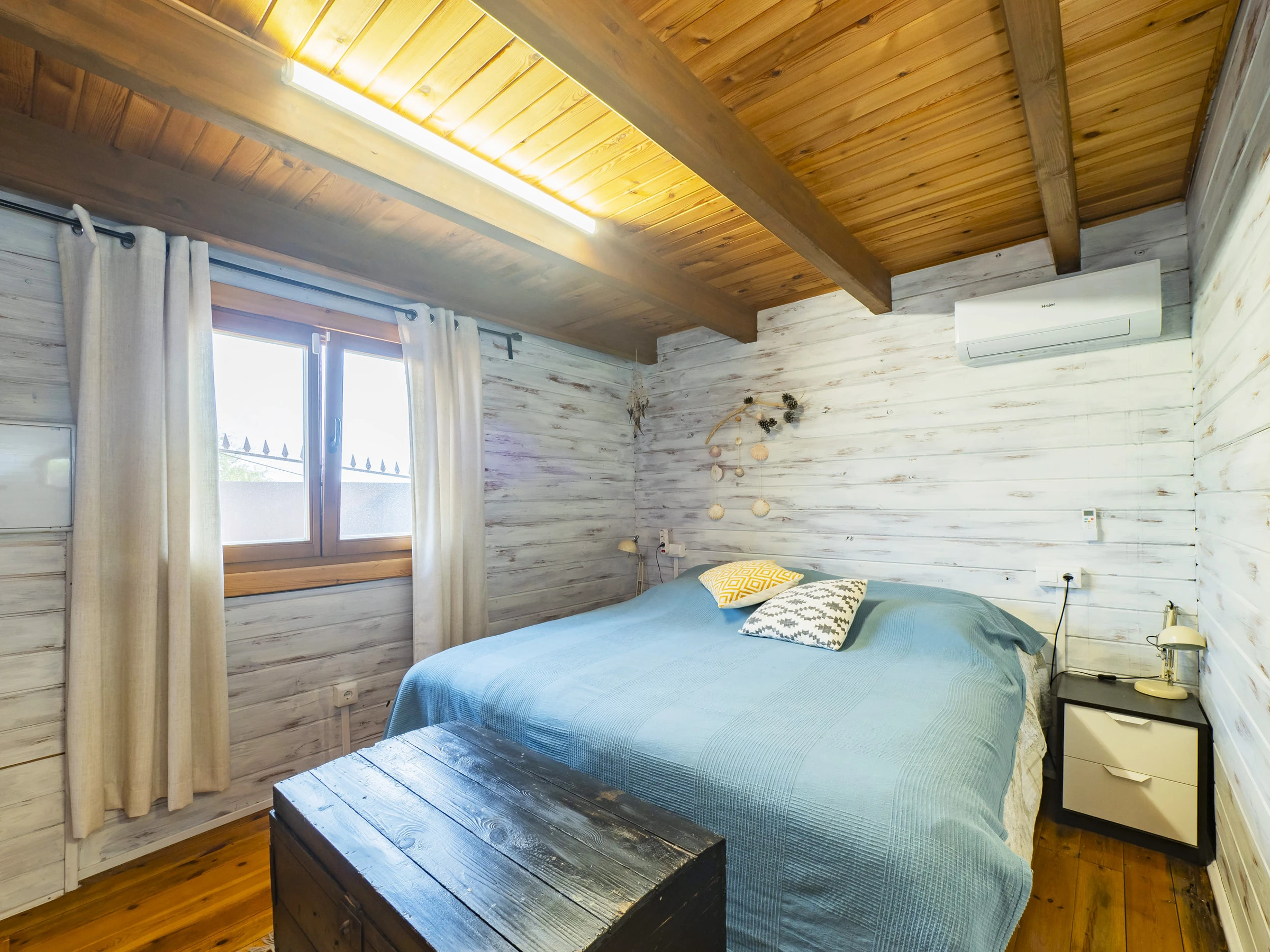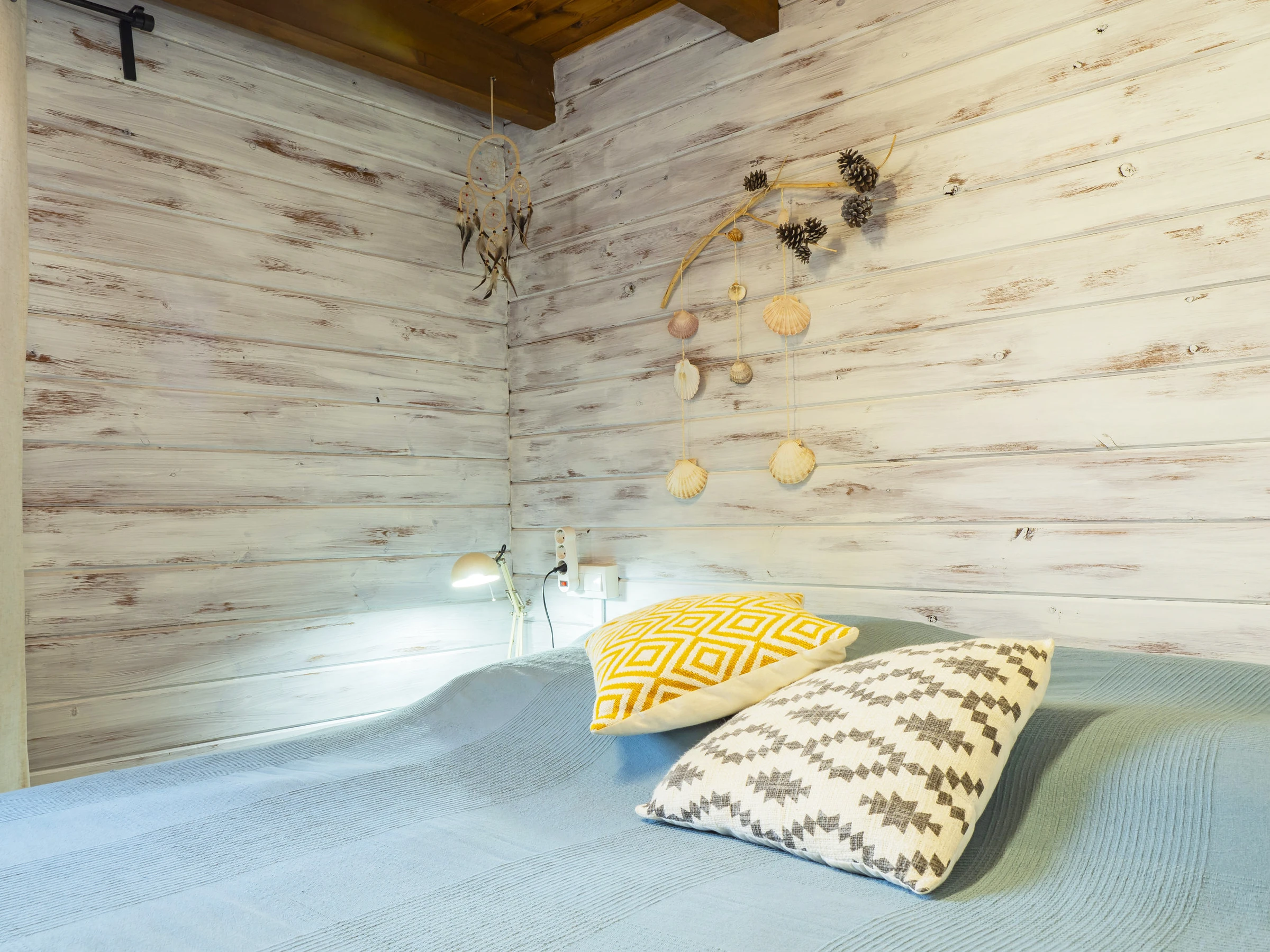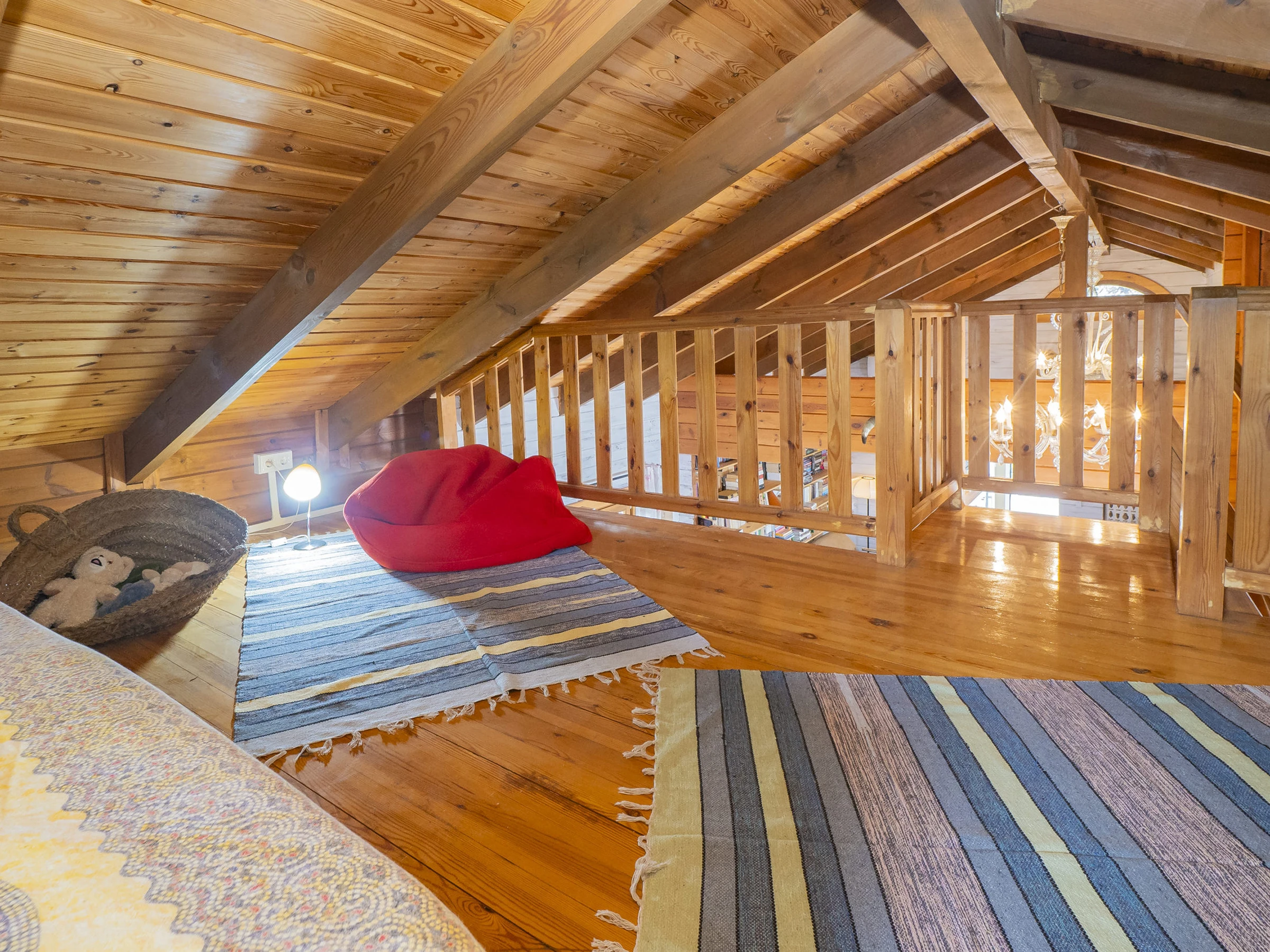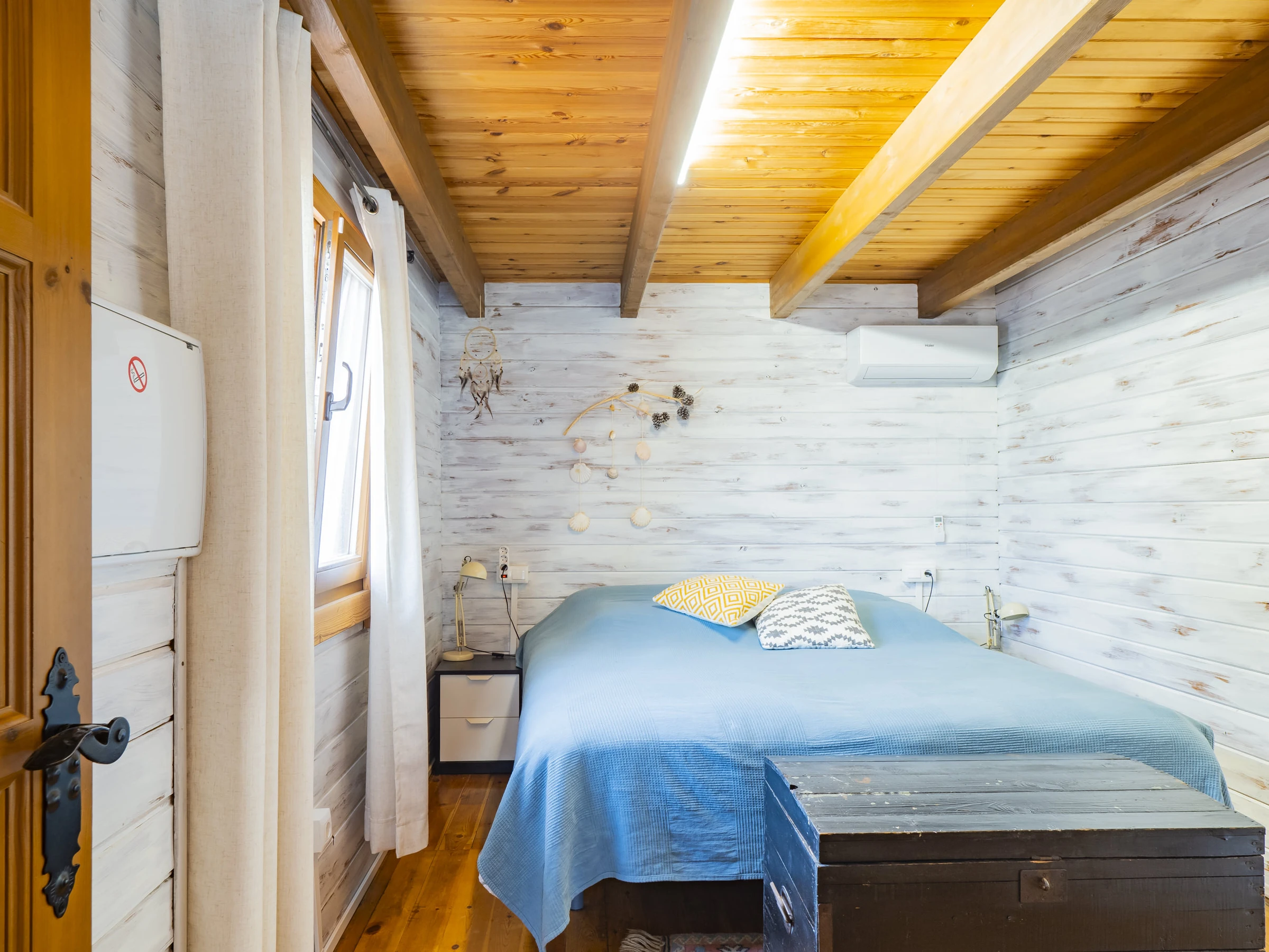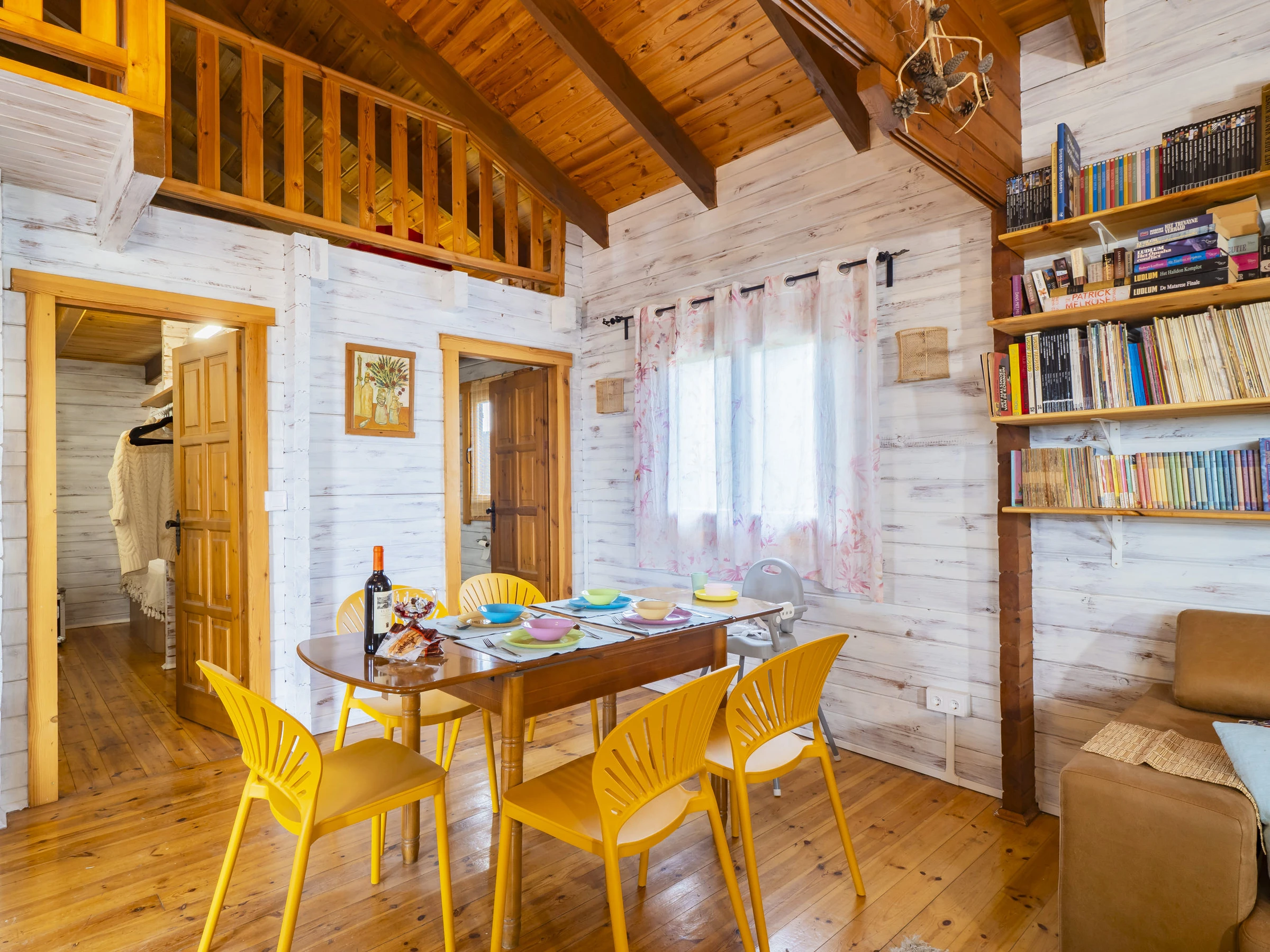In ihren 80 m² verteilt auf zwei Etagen verfügt das Haus über drei Schlafzimmer für bis zu sechs Personen (obwohl die offizielle Kapazität für fünf Personen liegt), mit einem Doppelbett und einem Einzelbett in der oberen, dachgeschossartigen Etage, ideal für Kinder und Jugendliche, und zwei Schlafzimmern mit Doppelbett in der unteren Etage, neben einem geräumigen Wohn-Esszimmer und einer voll ausgestatteten Küche mit modernen Haushaltsgeräten (Kühlschrank, Mikrowelle, Ofen, Geschirrspüler, Kaffeemaschine, Toaster und mehr). Die feste Holztreppe, die zur oberen Etage führt, ist aufgrund ihrer Neigung nicht für sehr kleine Kinder geeignet.