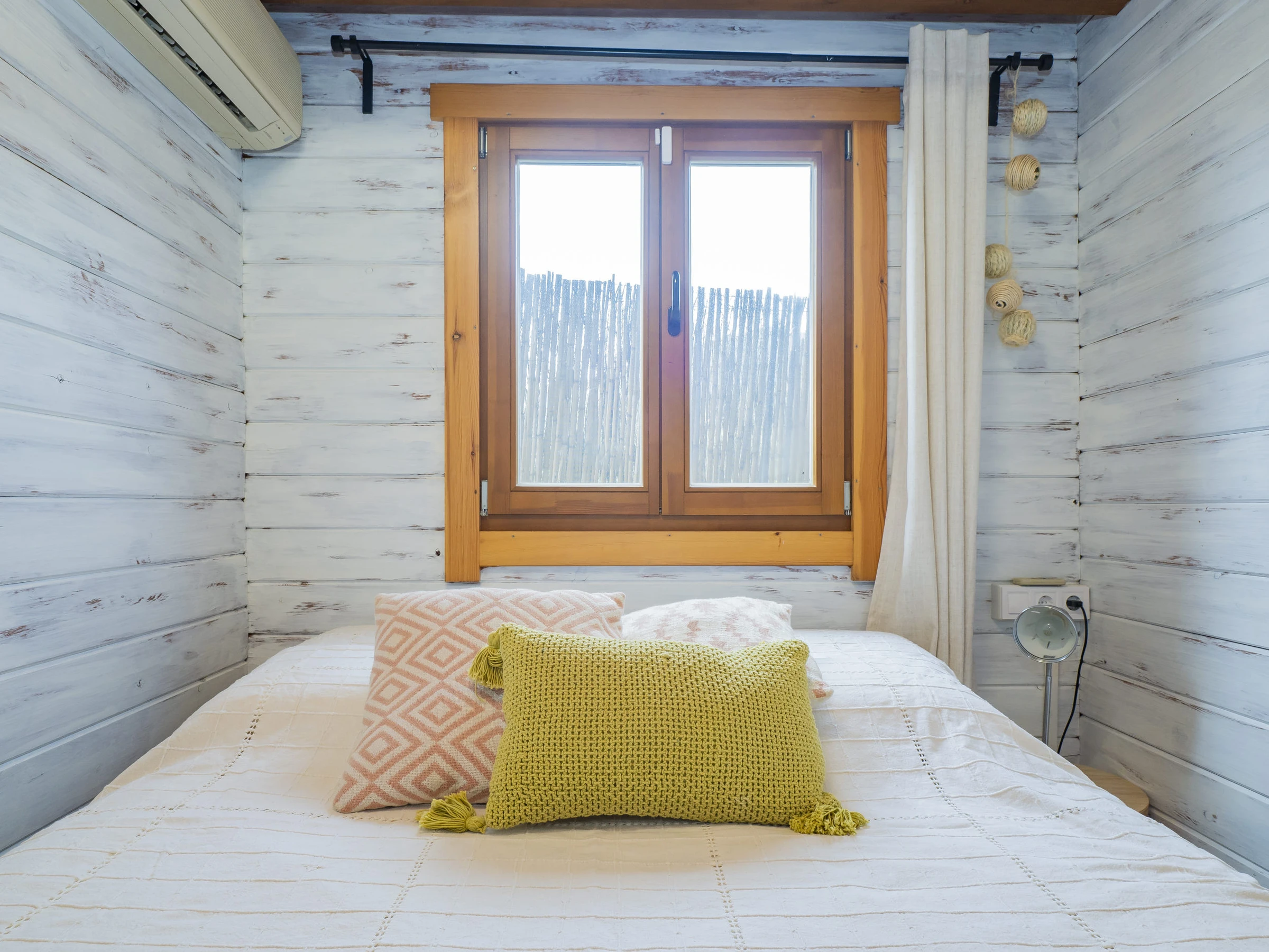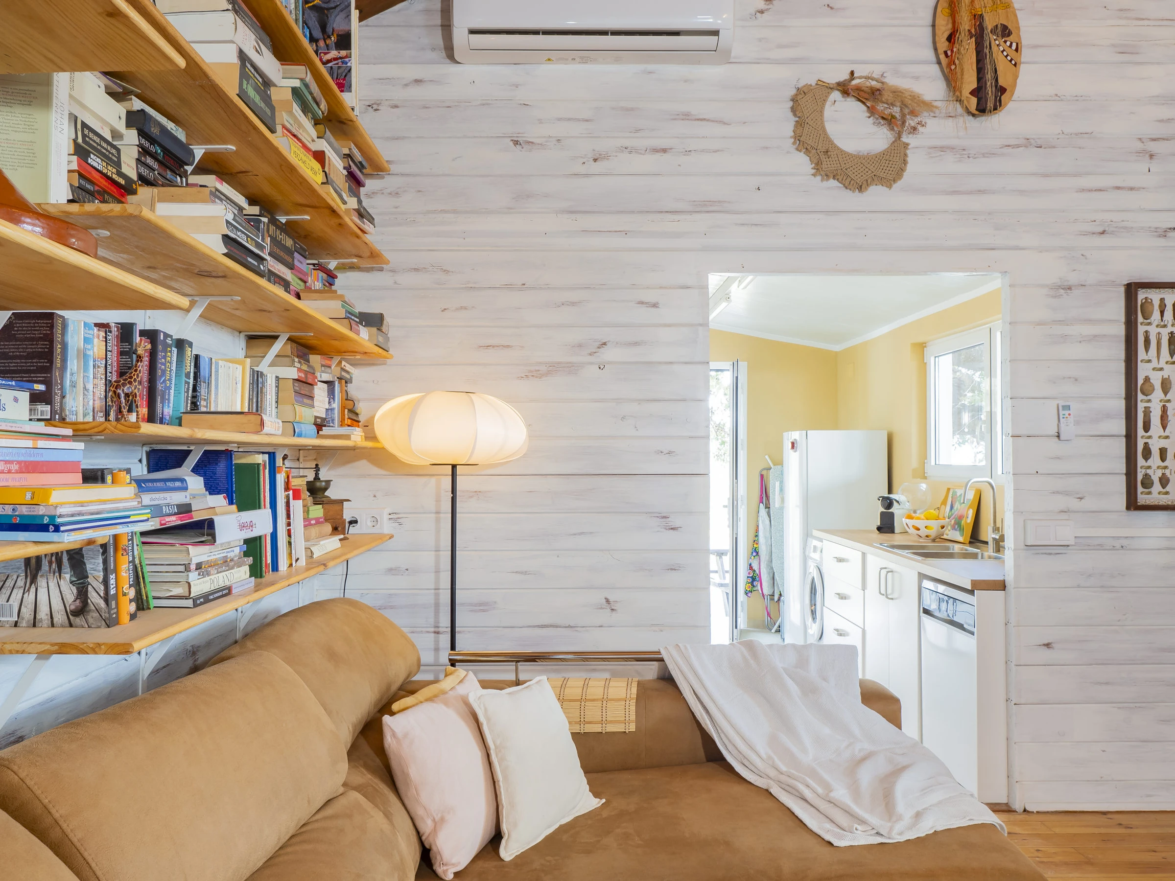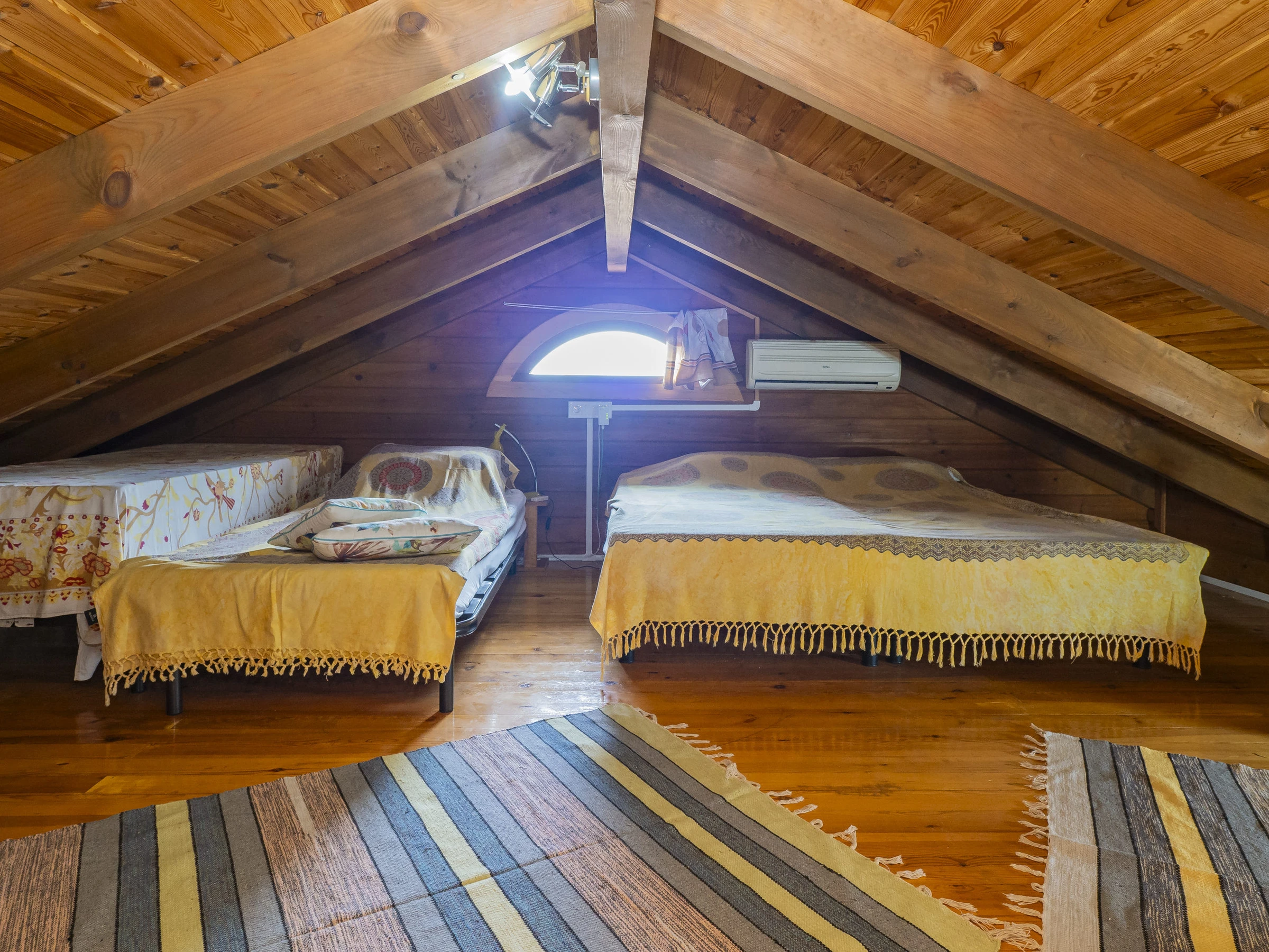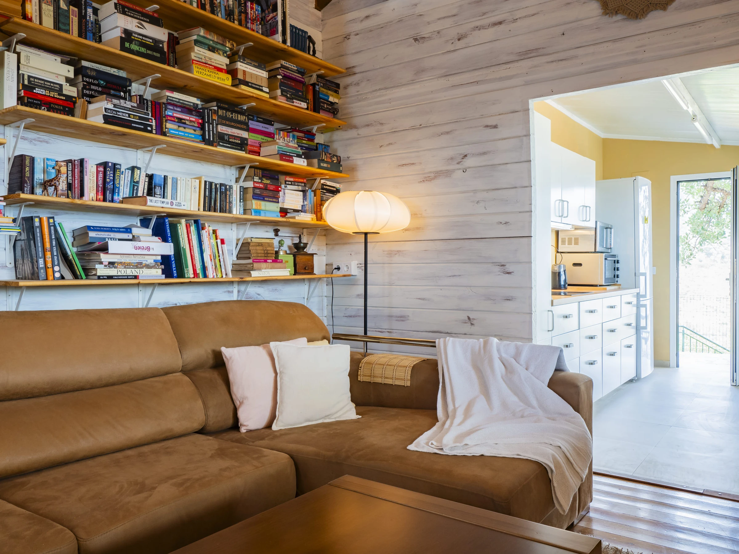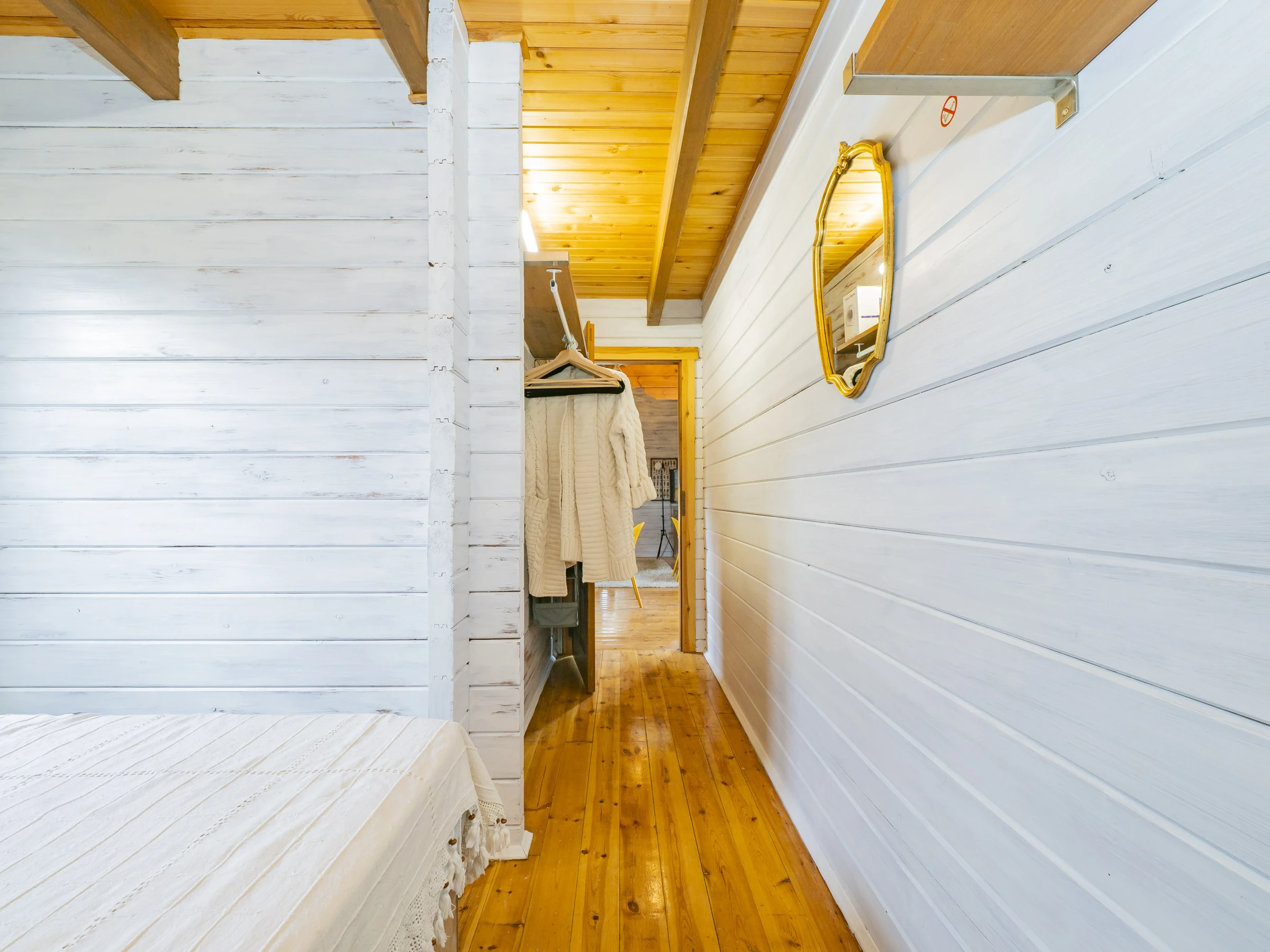 In ihren 80 m² verteilt auf zwei Etagen verfügt das Haus über drei Schlafzimmer für bis zu sechs Personen (obwohl die offizielle Kapazität für fünf Personen liegt), mit einem Doppelbett und einem Einzelbett in der oberen, dachgeschossartigen Etage, ideal für Kinder und Jugendliche, und zwei Schlafzimmern mit Doppelbett in der unteren Etage, neben einem geräumigen Wohn-Esszimmer und einer voll ausgestatteten Küche mit modernen Haushaltsgeräten (Kühlschrank, Mikrowelle, Ofen, Geschirrspüler, Kaffeemaschine, Toaster und mehr). Die feste Holztreppe, die zur oberen Etage führt, ist aufgrund ihrer Neigung nicht für sehr kleine Kinder geeignet.