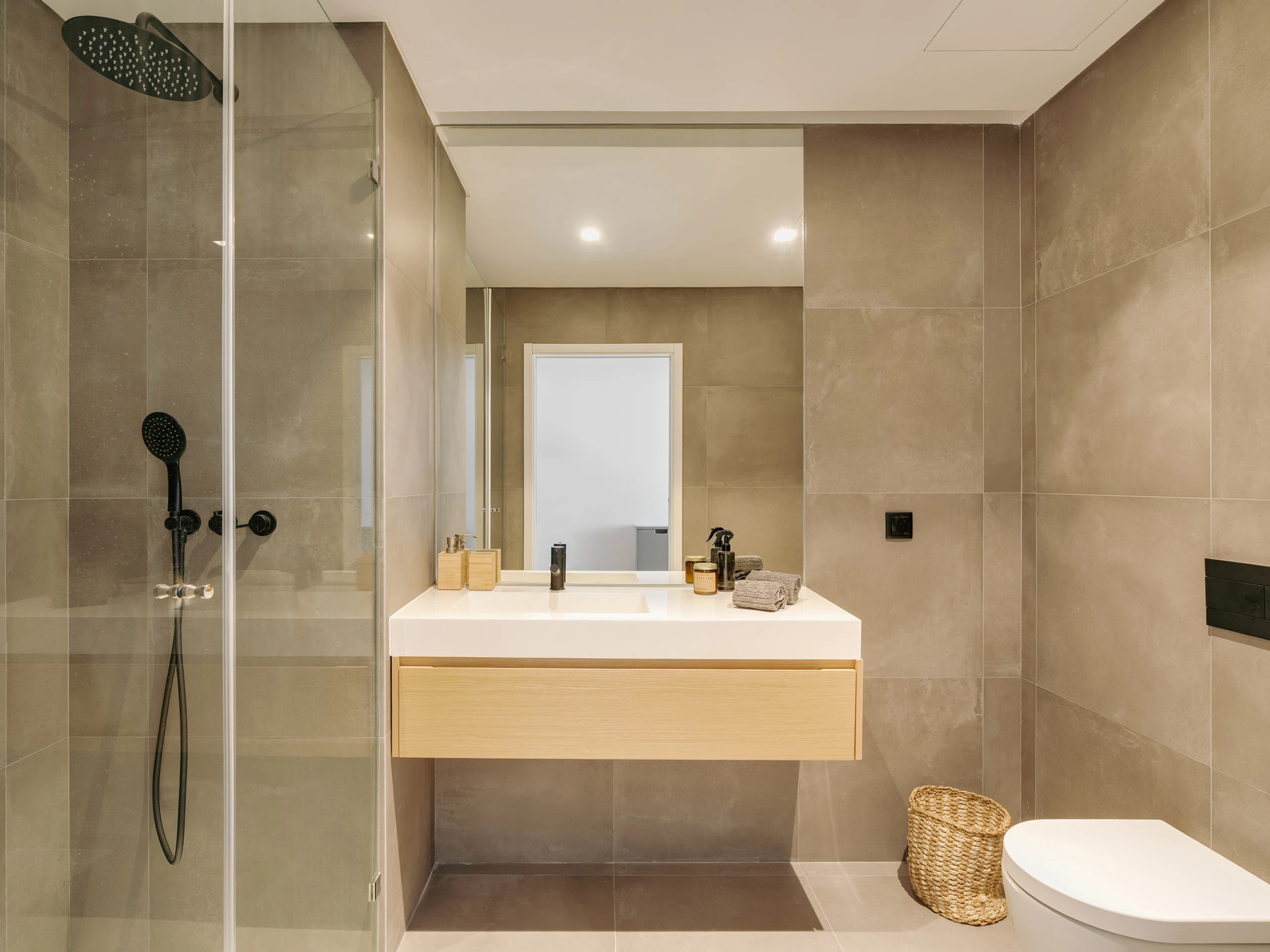 Diese zeitgenössische Zwei-Zimmer-Wohnung wurde sorgfältig gestaltet, um eine ruhige und stilvolle Wohnumgebung zu bieten. Von dem Moment an, in dem Sie eintreten, werden Sie in einen lichtdurchfluteten Raum eingeladen, der moderne Gestaltung mit einer warmen, einladenden Atmosphäre mühelos kombiniert. Die Master-Suite öffnet sich zu einem privaten Balkon mit Meerblick, während großzügige Fenster im Wohnzimmer einen kontinuierlichen, ungehinderten Ausblick über die Bucht bieten.