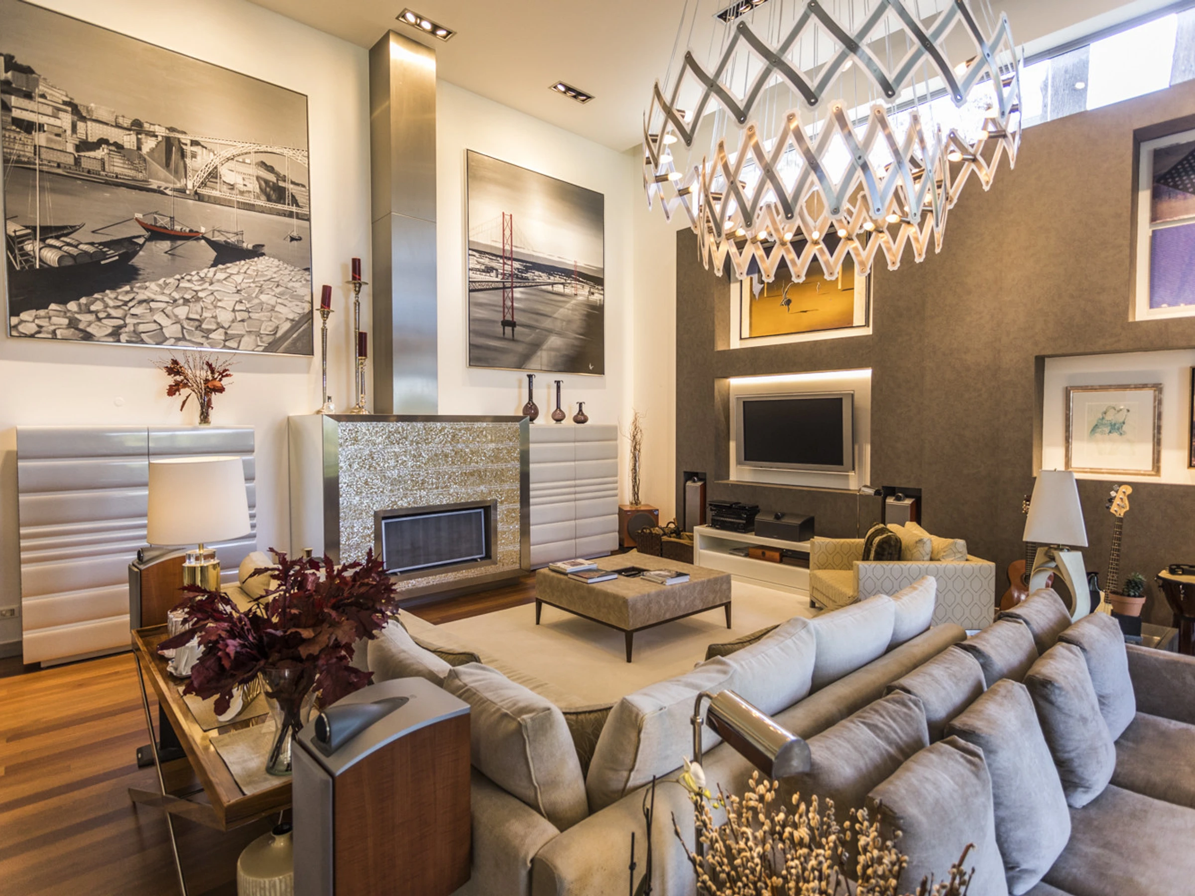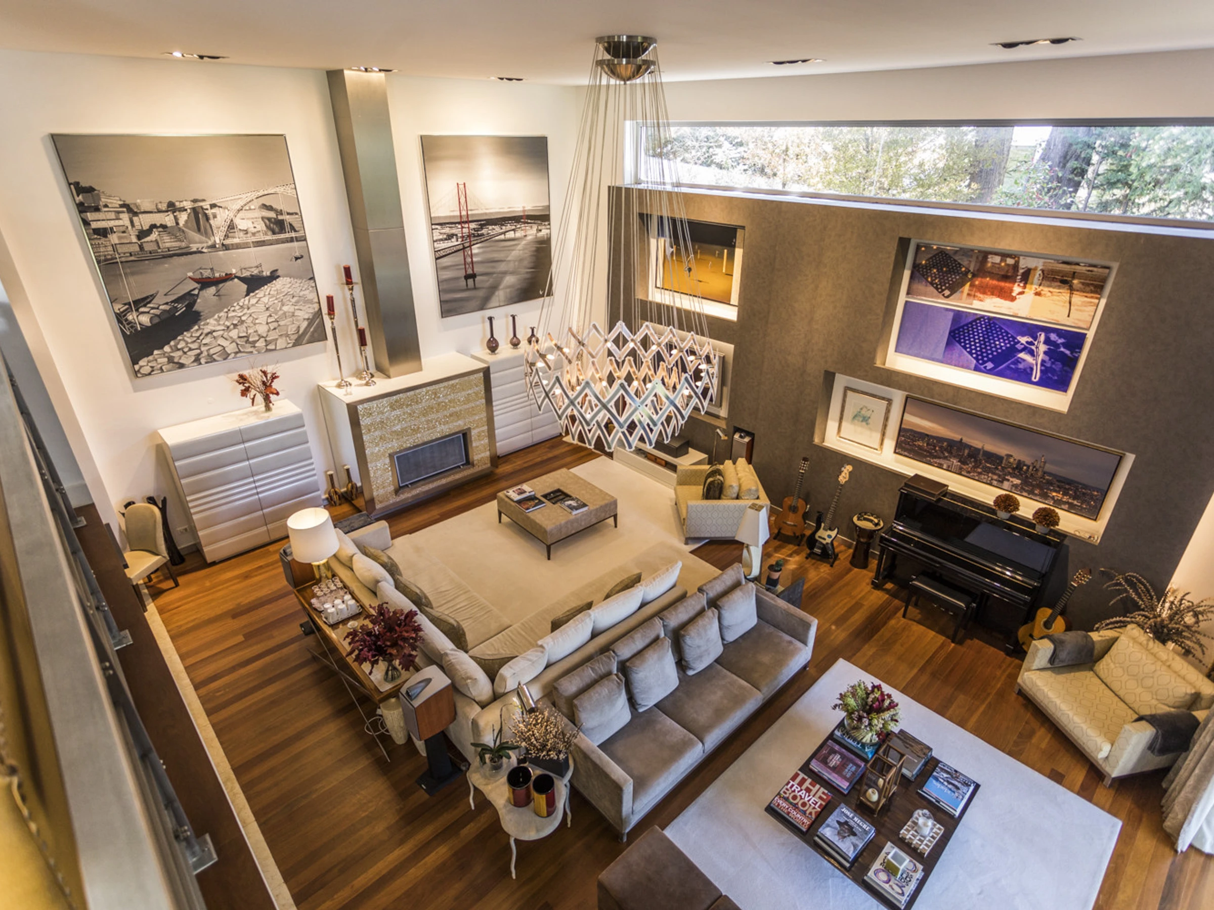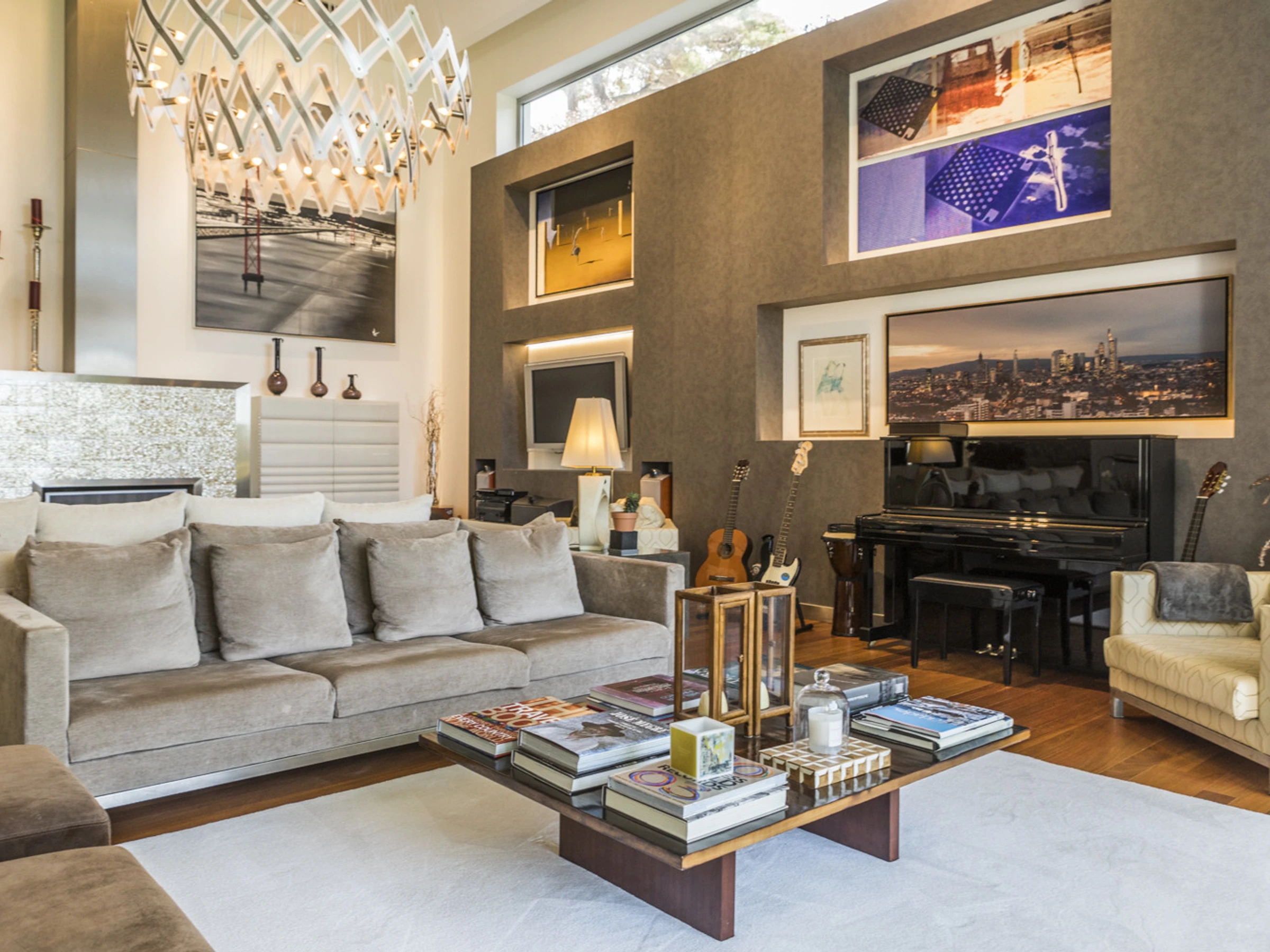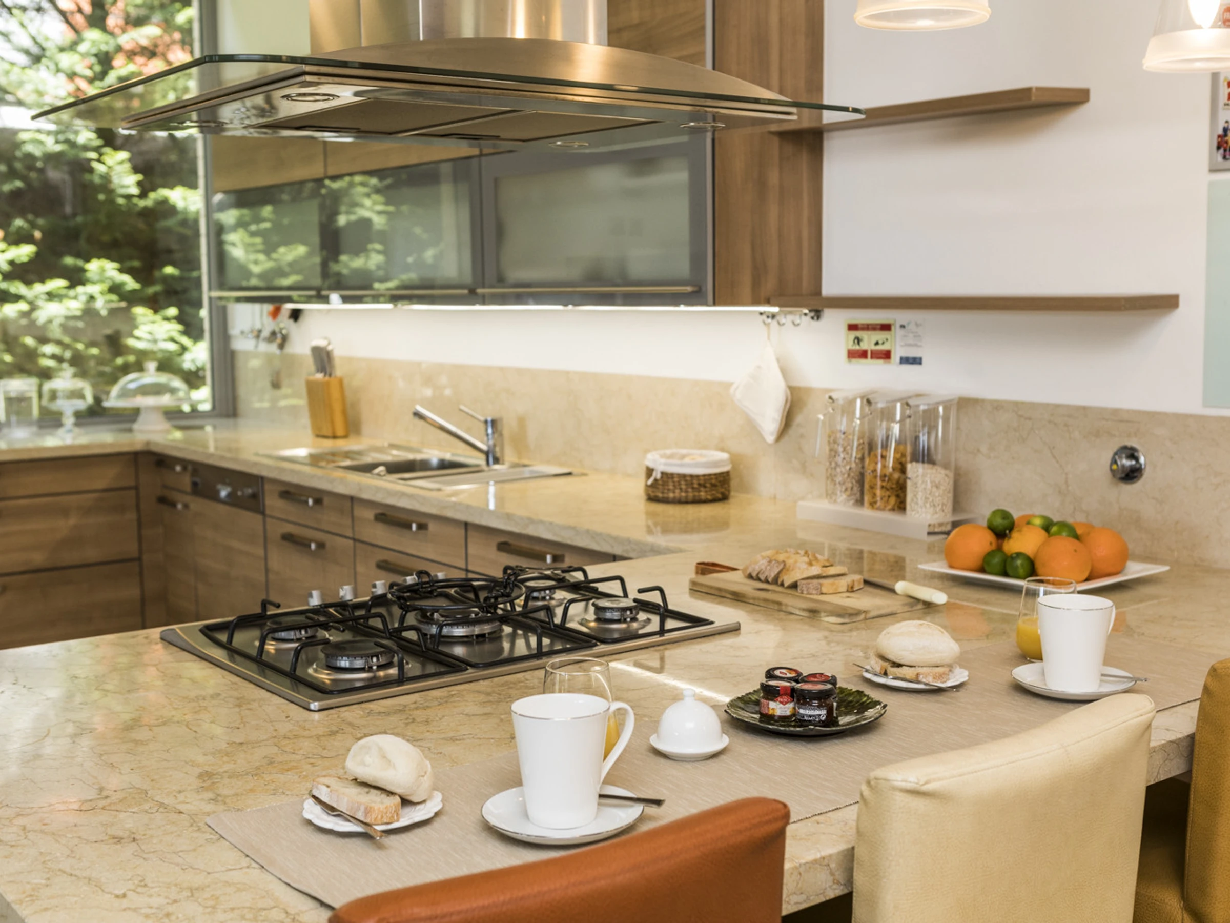 Das Cascais Orangery begrüßt bis zu dreizehn Gäste in vier gut gestalteten Schlafzimmern, darunter ein verspielter Familienraum mit leuchtend roten Etagenbetten. Jeder Raum ist großzügig bemessen, wobei viele auf private Terrassen hinausführen und einige ruhige Schreibtischbereiche bieten, ideal zum Lesen, Schreiben oder Abschalten. Alle Schlafzimmer verfügen über eigene Badezimmer, die jeweils einen eigenen Charakter haben, manche minimalistisch, andere mit einer Prise Persönlichkeit, wie eine limettegrüne freistehende Badewanne. Im Zentrum des Hauses wird der offene Wohnbereich von Bodentief-Glasfronten gerahmt, die den Raum mit natürlichem Licht füllen und den Garten hereinbringen. Ein skulpturaler, metallverkleideter Kamin verankert den Raum, umgeben von einem großen L-förmigen Sofa, das sowohl Komfort als auch Gesprächigkeit bietet. Ein Flügel verleiht eine dezente Note von Charme, bereit für spontane Momente. Der Übergang zwischen Ess- und Loungebereich ist entspannt und mühelos, abgerundet mit polierten Holzböden, üppiger Samtpolsterung in Branntorangen und tiefen Rottönen sowie kuratierter moderner Kunstwerke. Tägliche Haushaltsführung wird von 8.30 Uhr bis 16.30 Uhr angeboten, wobei die Villa mit ruhiger Effizienz gepflegt wird. Während der Wäschebereich dem Personal vorbehalten ist, können persönliche Kleidungsstücke auf Anfrage betreut werden, und ein Bügeleisen mit Bügelbrett steht zur Verfügung. Ob man sich mit Freunden trifft, einen Familienurlaub plant oder am Meer remote arbeitet, die Villa ist darauf ausgelegt, sich ruhig, wunderschön und mühelos anzupassen.