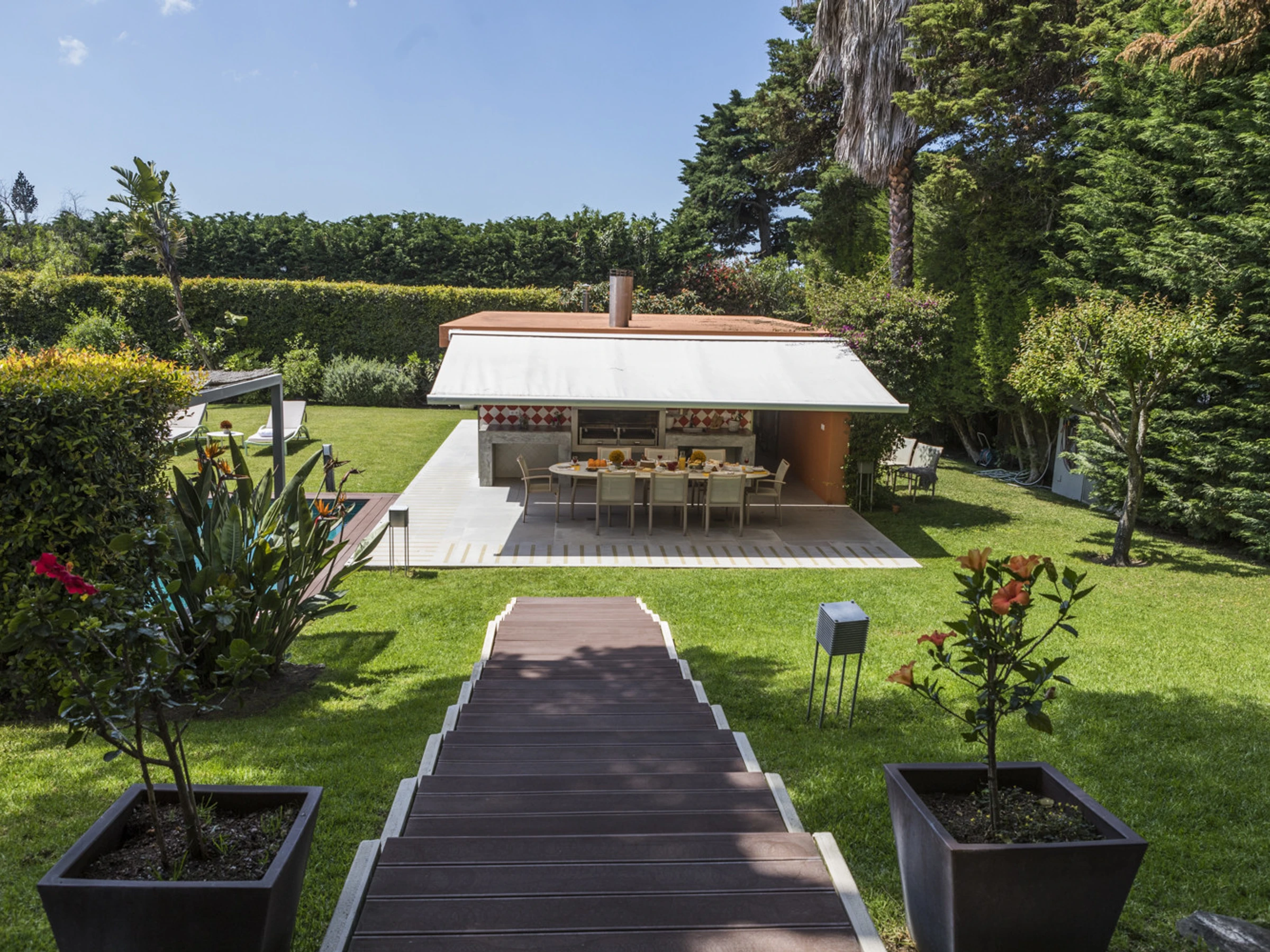 Treten Sie nach draußen und Sie werden einen privaten Garten finden, der mit der gleichen Sorgfalt und Balance wie die Villa selbst gestaltet wurde. Dies ist Outdoor-Leben, das zu langsamen Nachmittagen und langen Abenden einlädt.