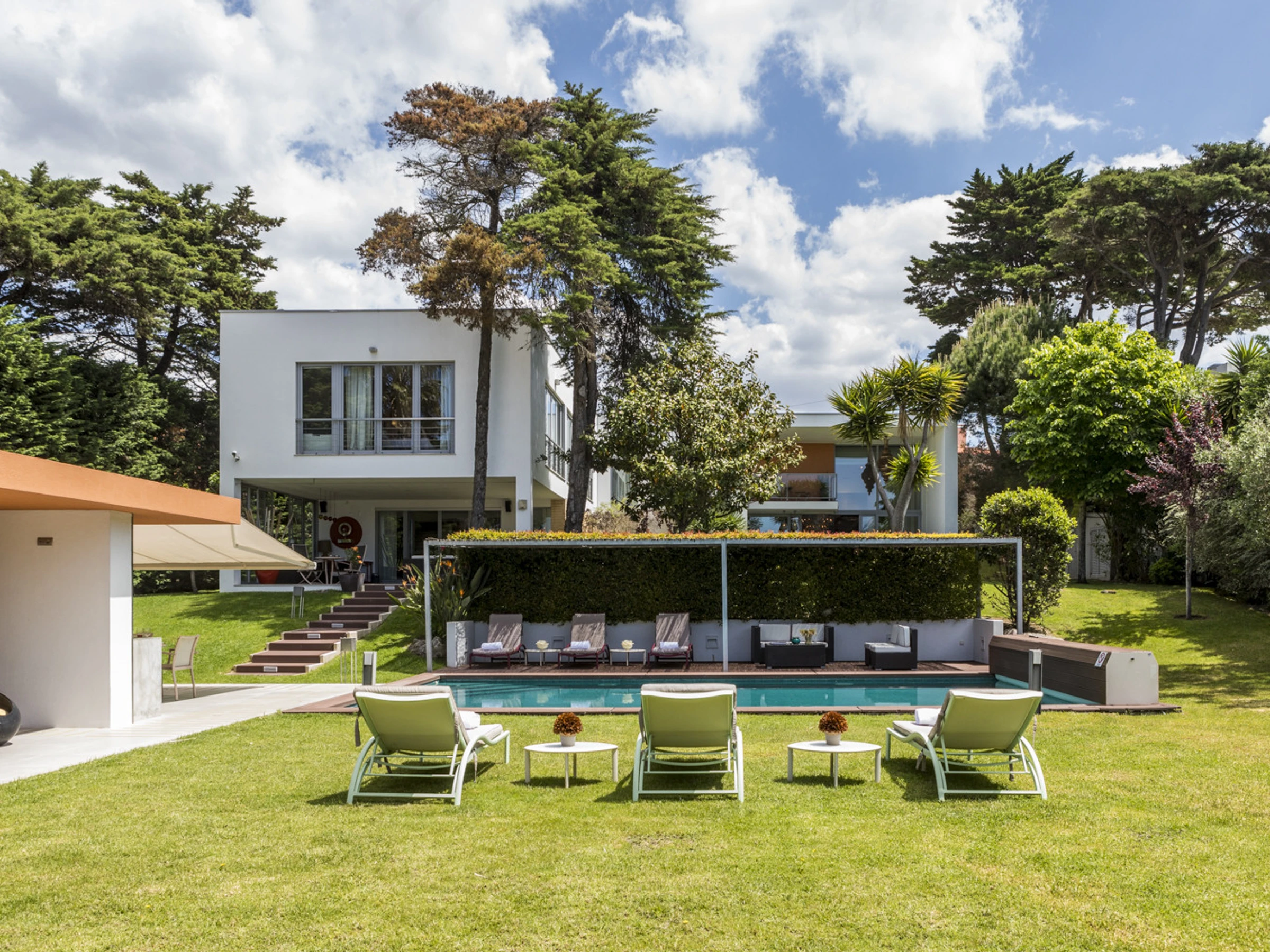 Eine beeindruckende Verschmelzung von Glas, Licht und kühnen Farben, die Cascais Orangerie bietet eine raffinierte Flucht nur wenige Minuten von der Küste von Cascais entfernt. Mit Platz für bis zu elf Gäste, täglicher Haushaltsführung und einem Design, das sich sowohl elegant als auch verspielt anfühlt, ist die Villa bestens geeignet für unvergessliche Urlaube, entspannte Zusammenkünfte und erholsame Auszeiten.