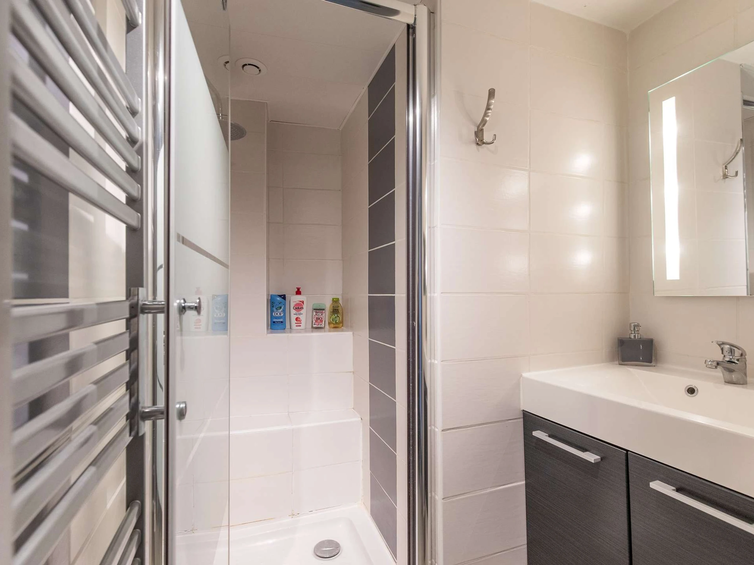 Anschließend gelangen Sie in den Hauptraum der Wohnung. Von dort führt ein Flur zu drei Schlafzimmern. Die ersten beiden Schlafzimmer sind mit Doppelbetten (140 cm) und Stauraum ausgestattet, das dritte mit zwei Etagenbetten und einem Einzelbett. Vom Flur aus erreichen Sie außerdem das Badezimmer mit Dusche und separatem WC.