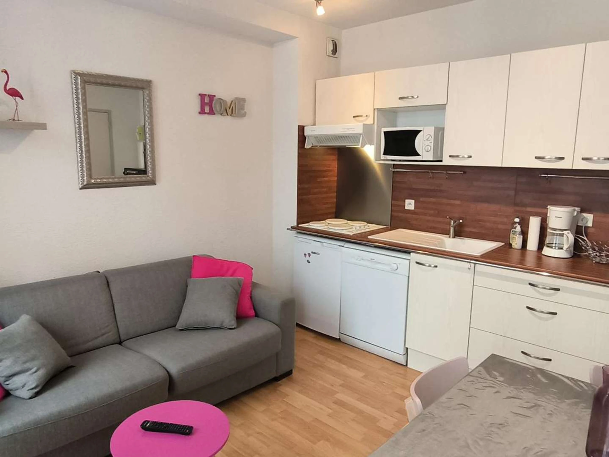Es besteht aus einer Eingangshalle, einem sehr hellen Wohnzimmer/Küchenzeile, einem Flur/einer Kabine mit 2 Etagenbetten (90 cm), einem Schlafzimmer mit 1 Bett (140 cm), einem Duschraum und einer separaten Toilette. Die Wohnung ist komplett mit Geschirr und Haushaltsgeräten ausgestattet.