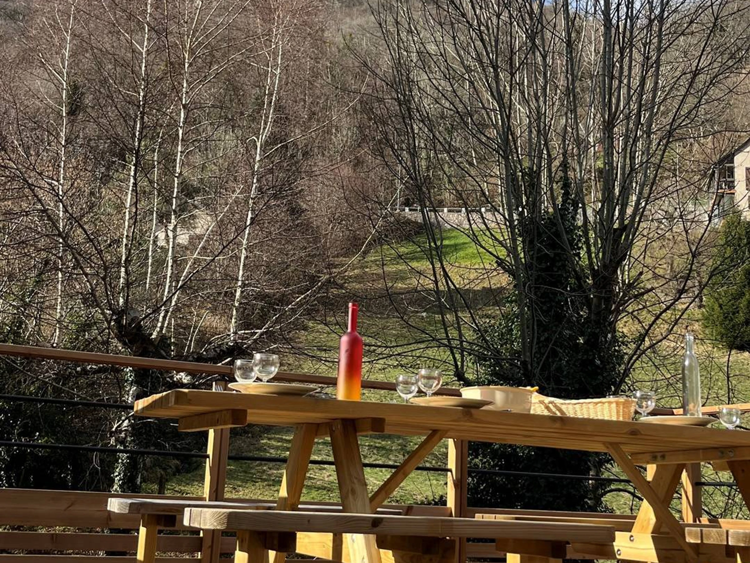 Die neue, nach Süden ausgerichtete Holzterrasse besticht durch ihren freien Blick und die Ruhe – eine wahre Oase der Ruhe für ein sonniges Frühstück oder ein Abendessen im Freien.