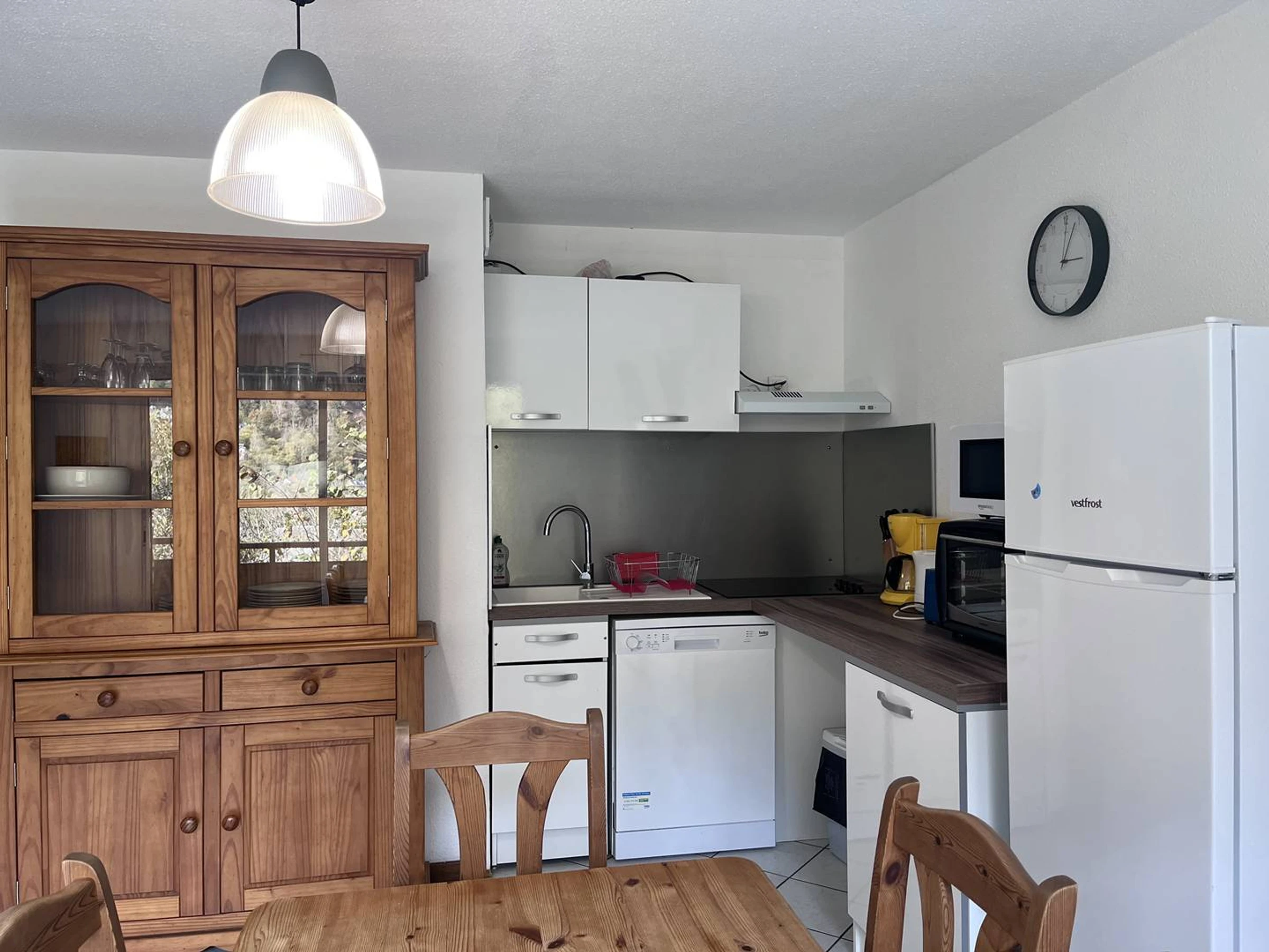 Dieses 41 m² große Chalet verfügt über ein Wohnzimmer und eine voll ausgestattete Küche mit Mini-Grillofen, großem Kühlschrank, Geschirrspüler, Filterkaffeemaschine, Raclette- und Fondue-Set, Toaster und vielem mehr.
