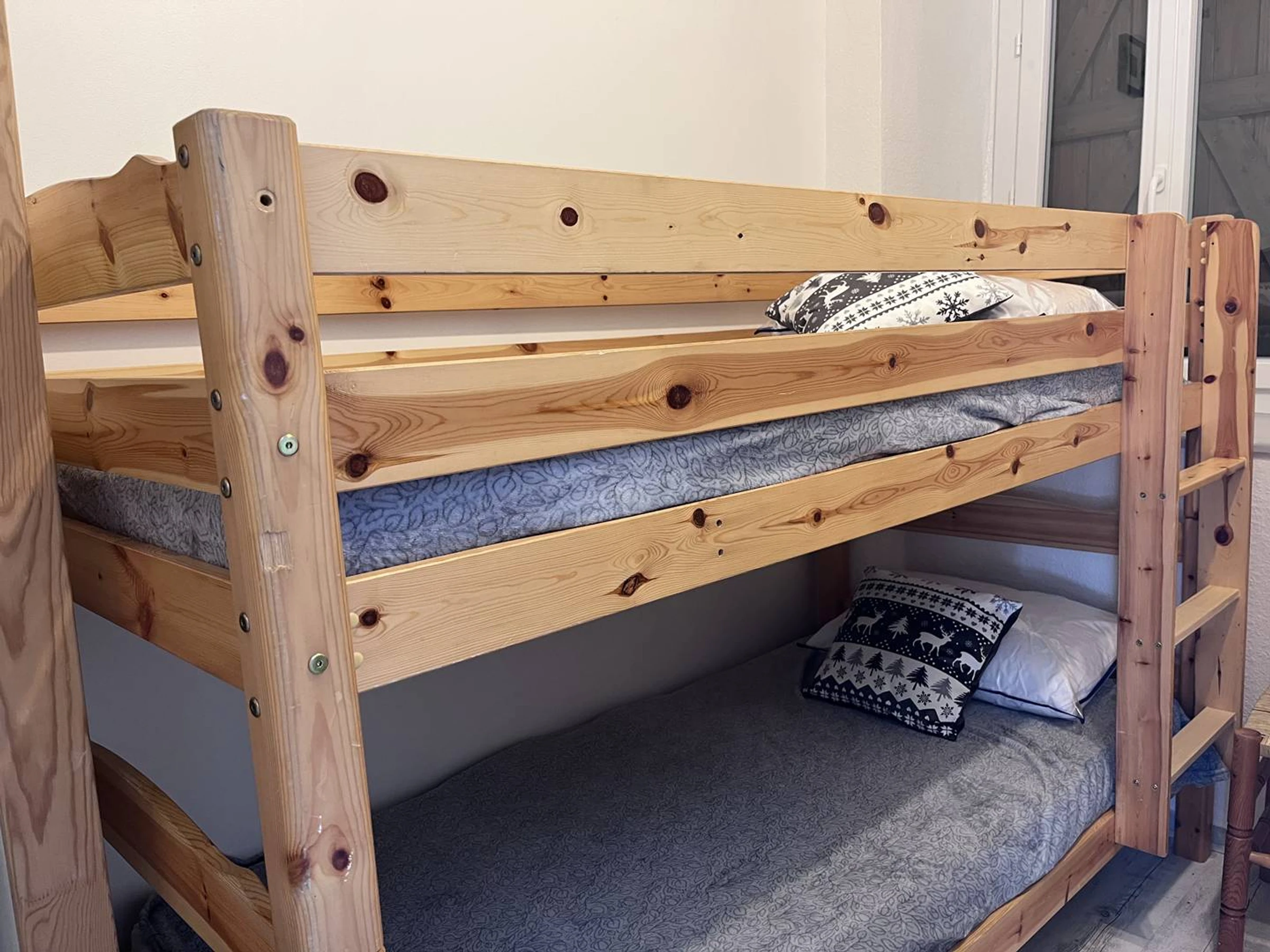 eine geschlossene Schlafnische (ohne Aussicht) mit zwei 90 cm breiten Etagenbetten, ideal für Kinder oder Freunde,
